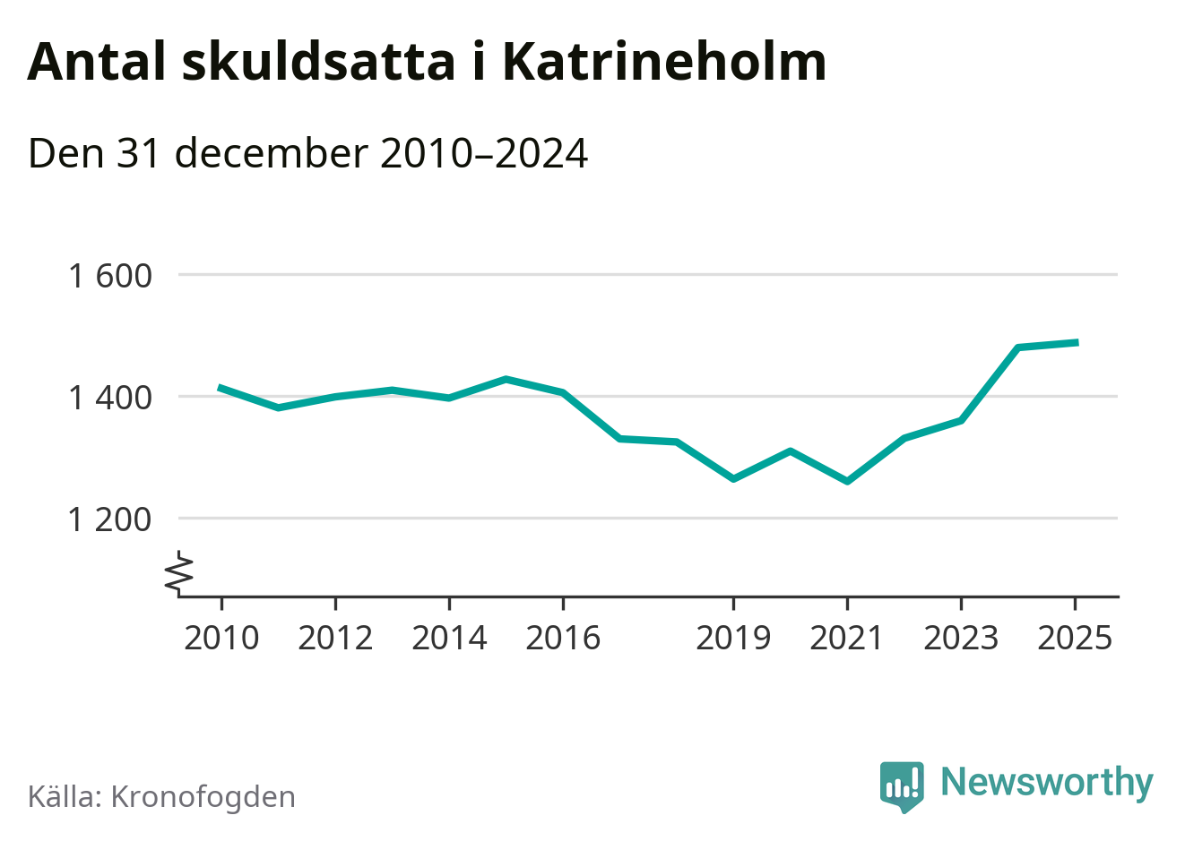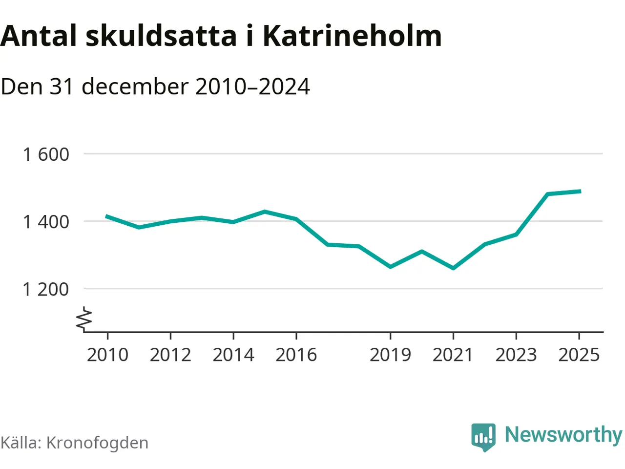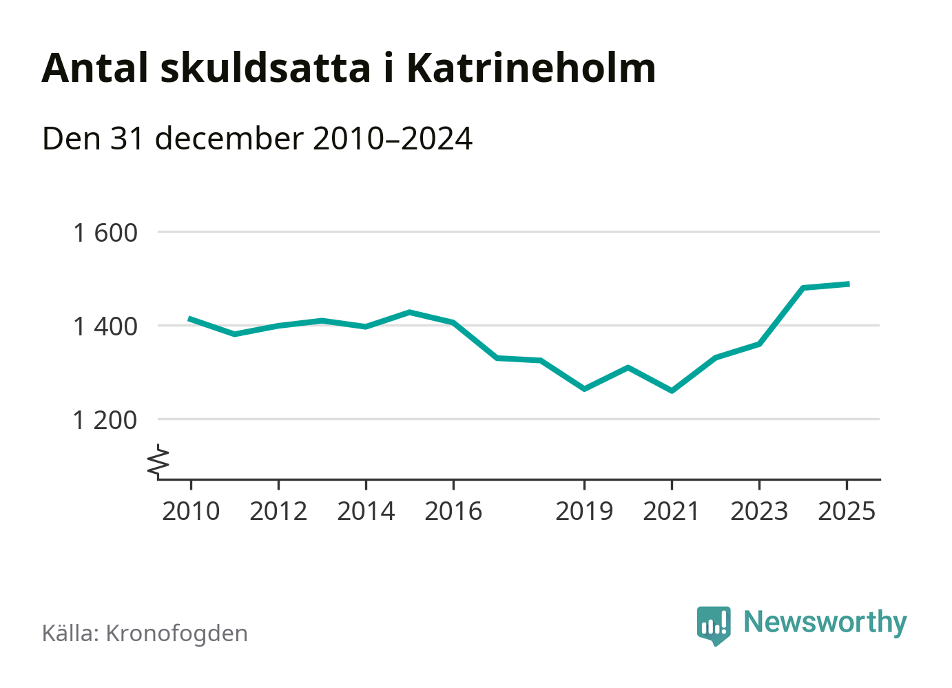 Inte sedan åtminstone 2010 har så många Katrineholmsbor hamnat hos Kronofogden. Vid årskiftet var 1 487 invånare i kommunen skyldiga totalt 479 miljoner kronor.
