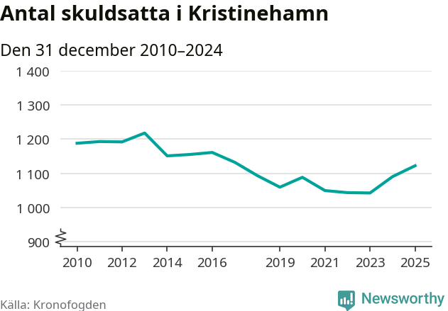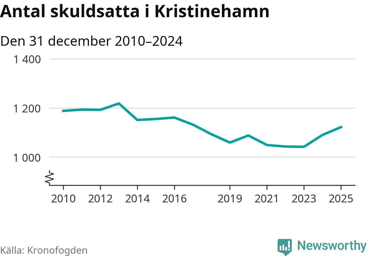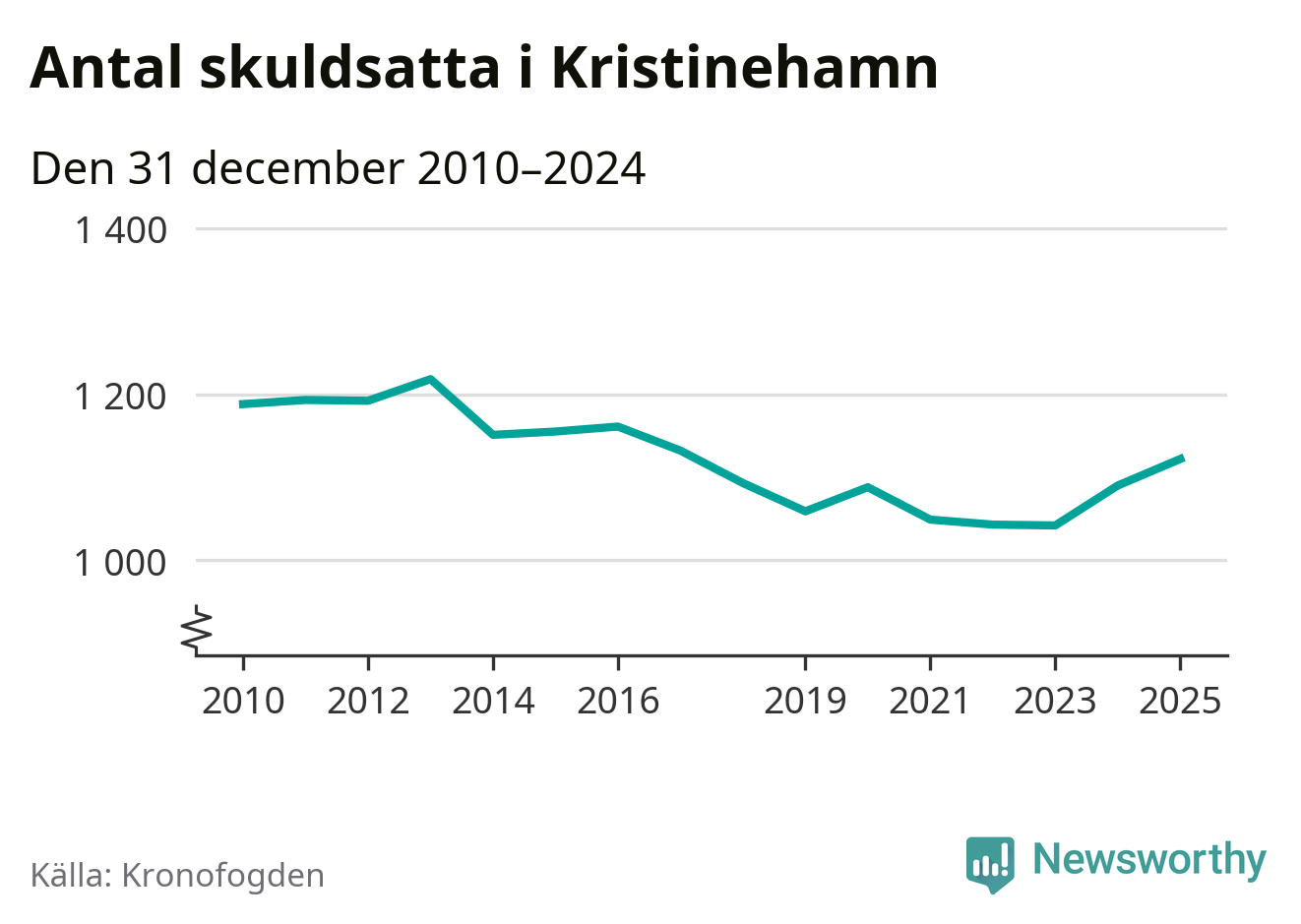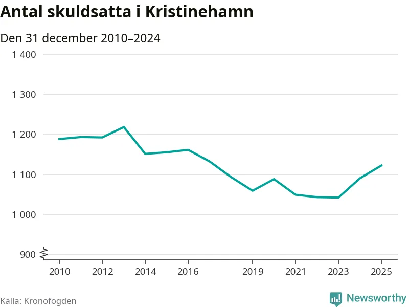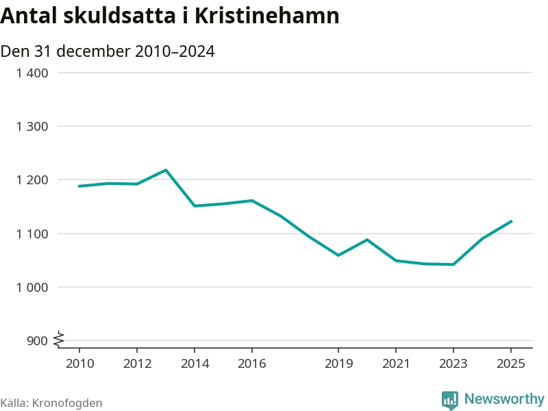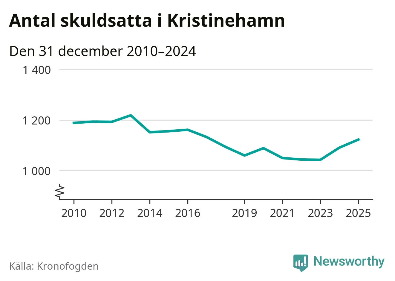 Allt fler Kristinehamnsbor hamnar hos Kronofogden. Vid årskiftet var 1 122 invånare i kommunen skyldiga totalt 288,7 miljoner kronor. Det är en ökning med 32 personer – eller 3 procent – jämfört med året innan. Det är det högsta antalet sedan 2017.