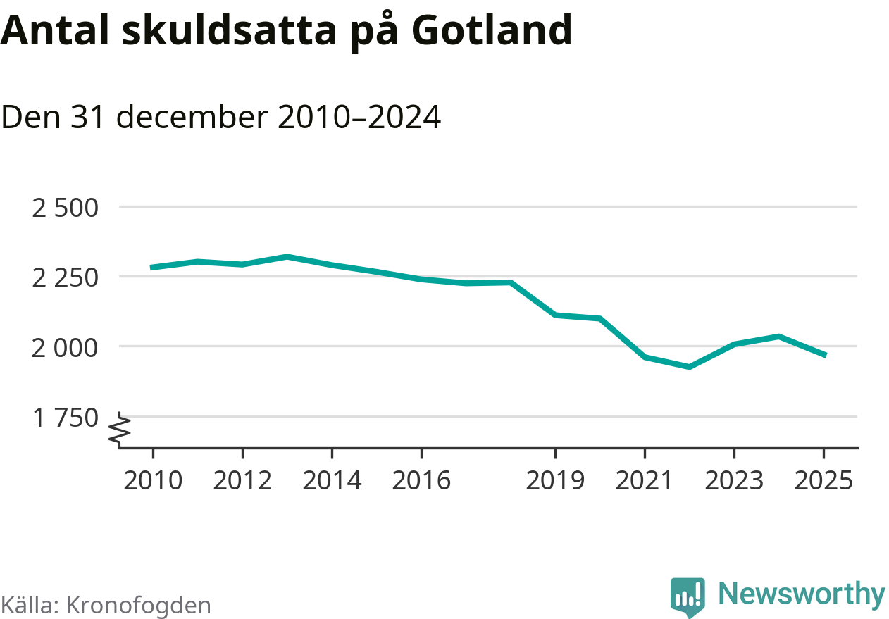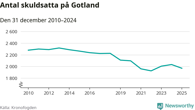 Antalet gotlänningar hos Kronofogden minskade i fjol. Vid årskiftet var 1 970 invånare i kommunen skyldiga totalt 553,9 miljoner kronor. Det är en minskning med 64 personer – eller 3 procent – jämfört med året innan.