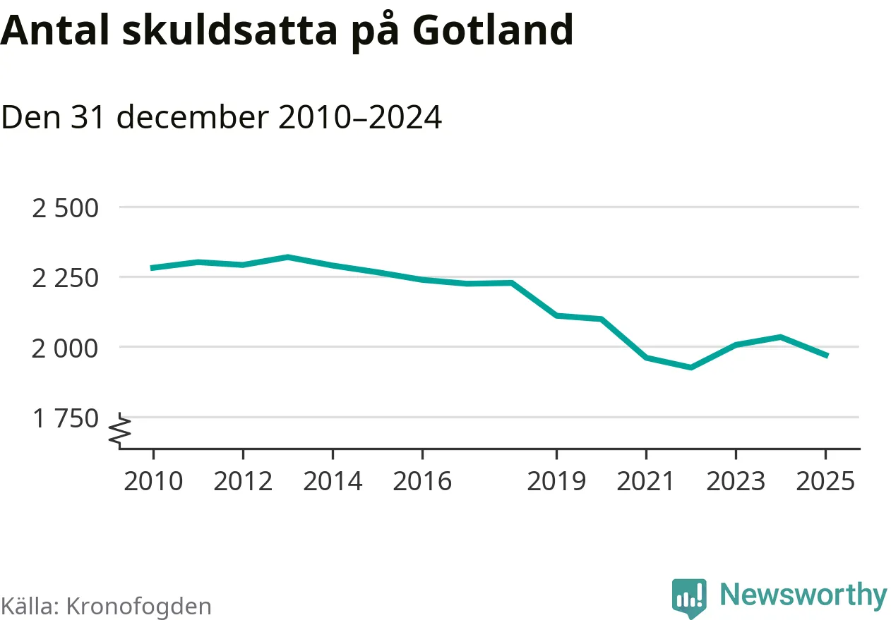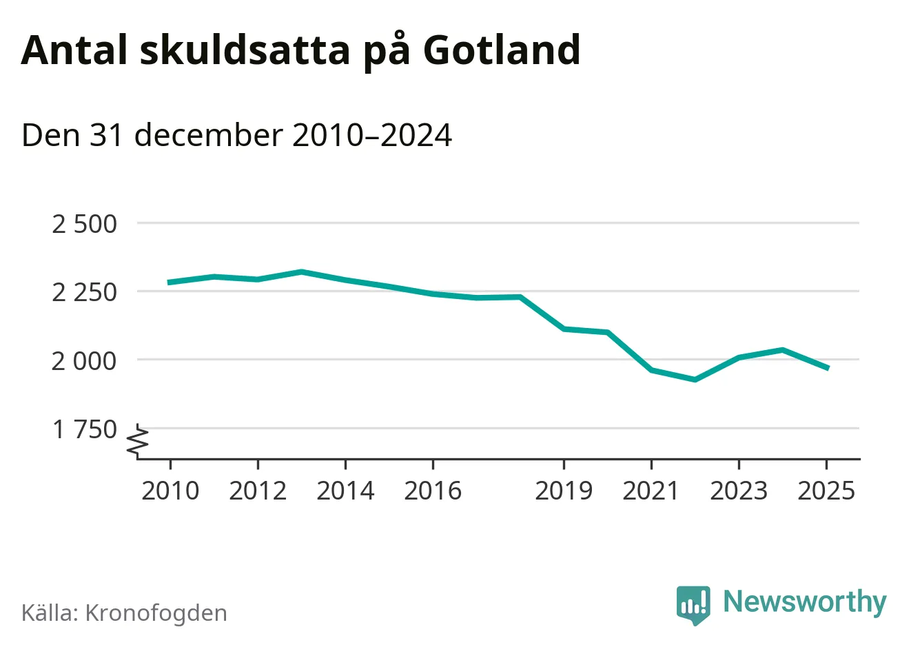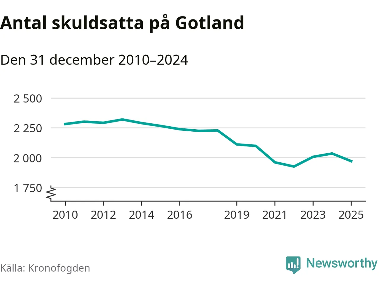 Vid årskiftet var 4 procent av alla gotlänningar över 18 år registrerade hos Kronofogden.