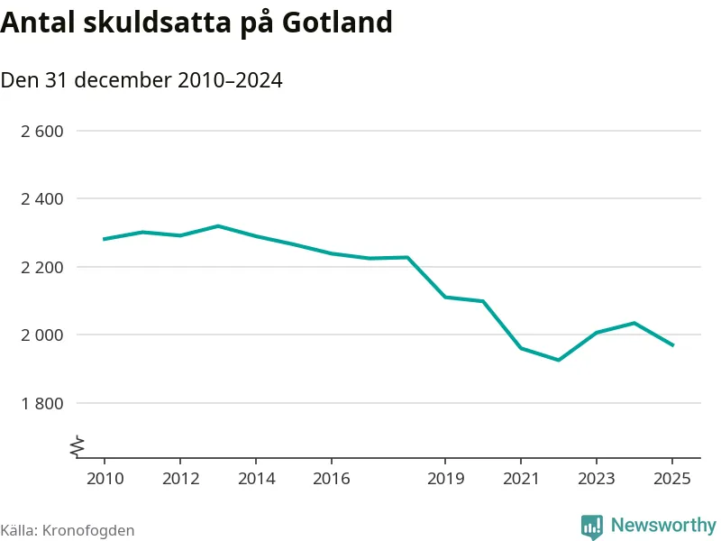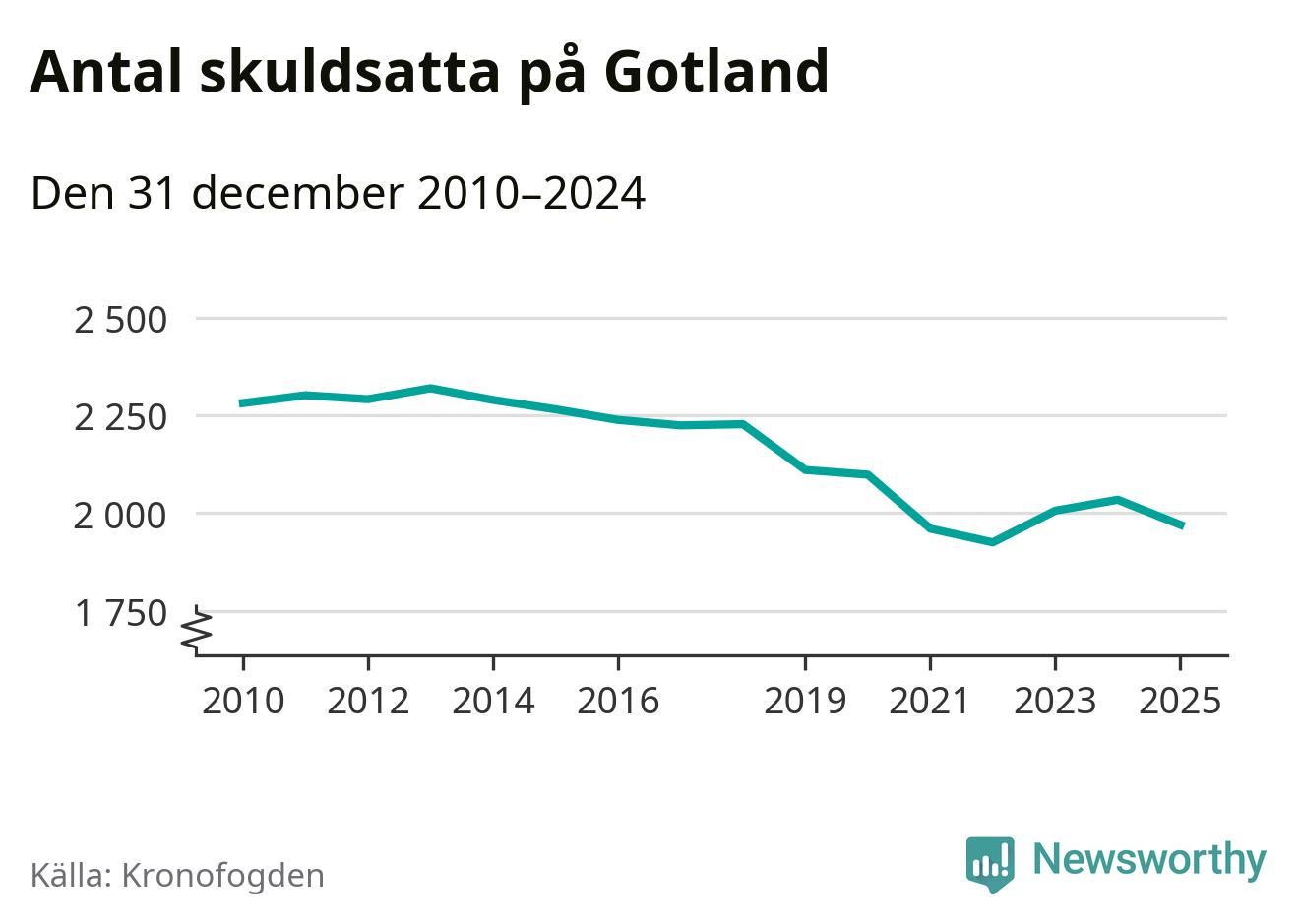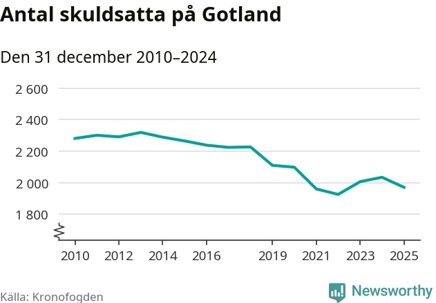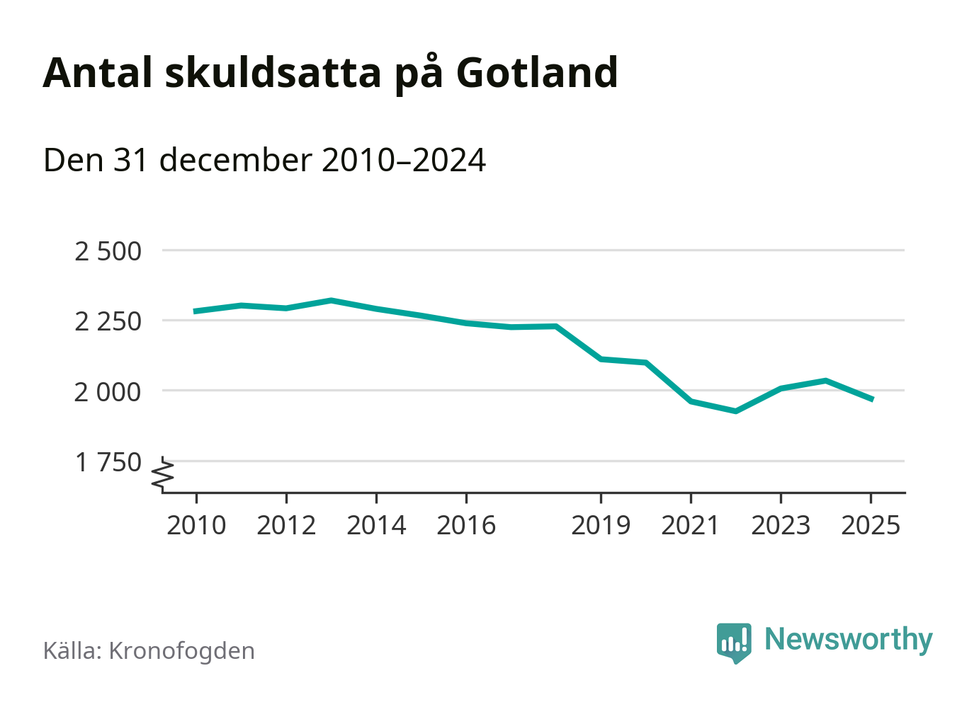 Vid årskiftet var 4 procent av alla gotlänningar över 18 år registrerade hos Kronofogden.