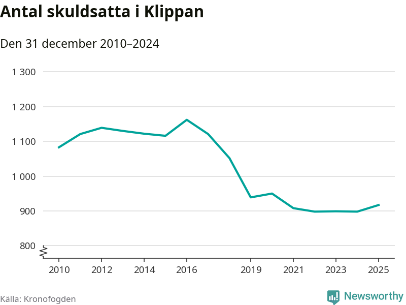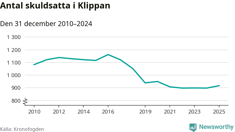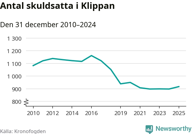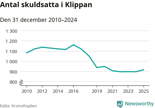 Antalet Klippan­bor hos Kronofogden ökade i fjol. Vid årskiftet var 917 invånare i kommunen skyldiga totalt 257 miljoner kronor. Det är en ökning med 19 personer – eller 2 procent – jämfört med året innan. Det är det högsta antalet sedan 2020.
