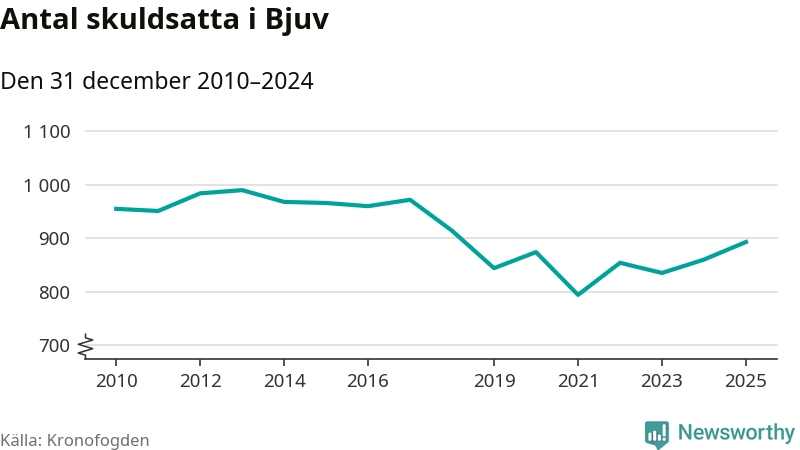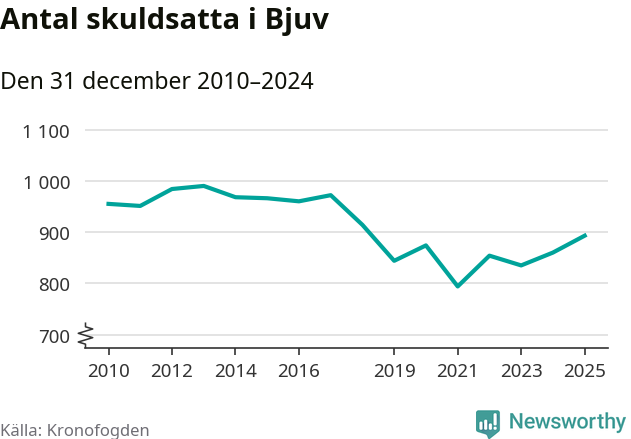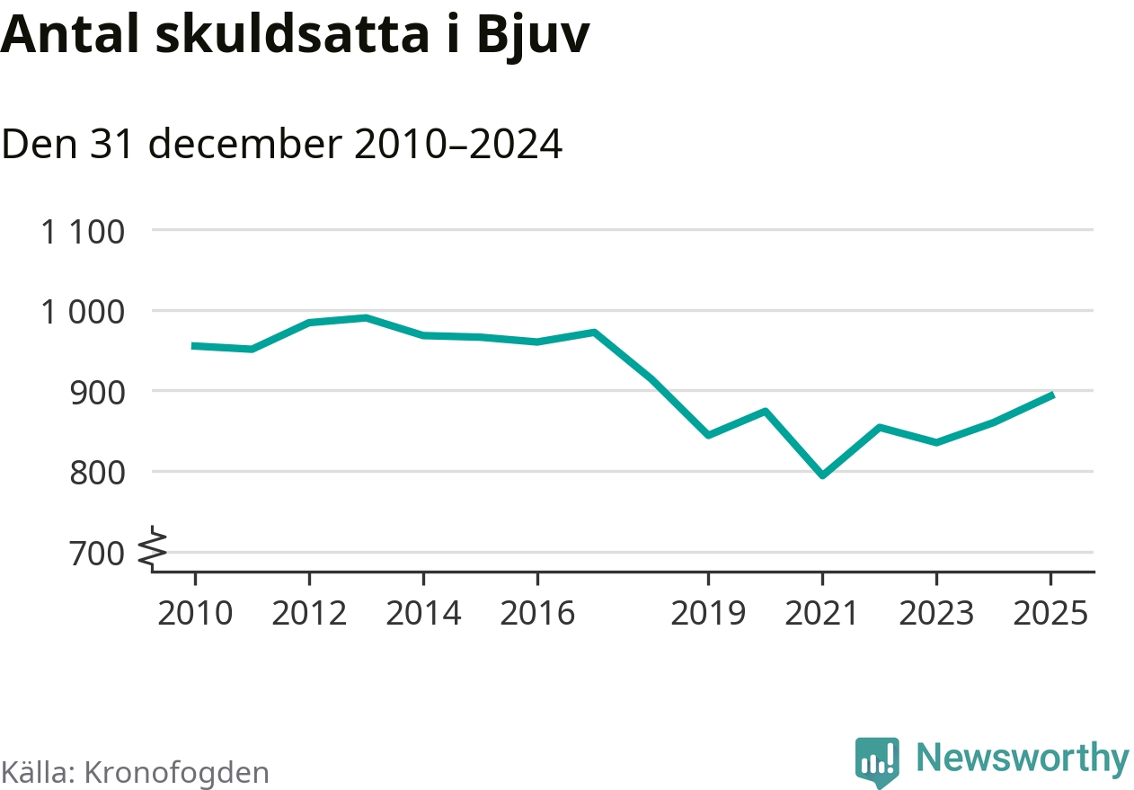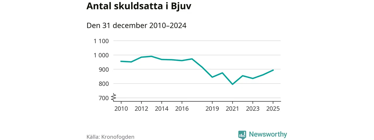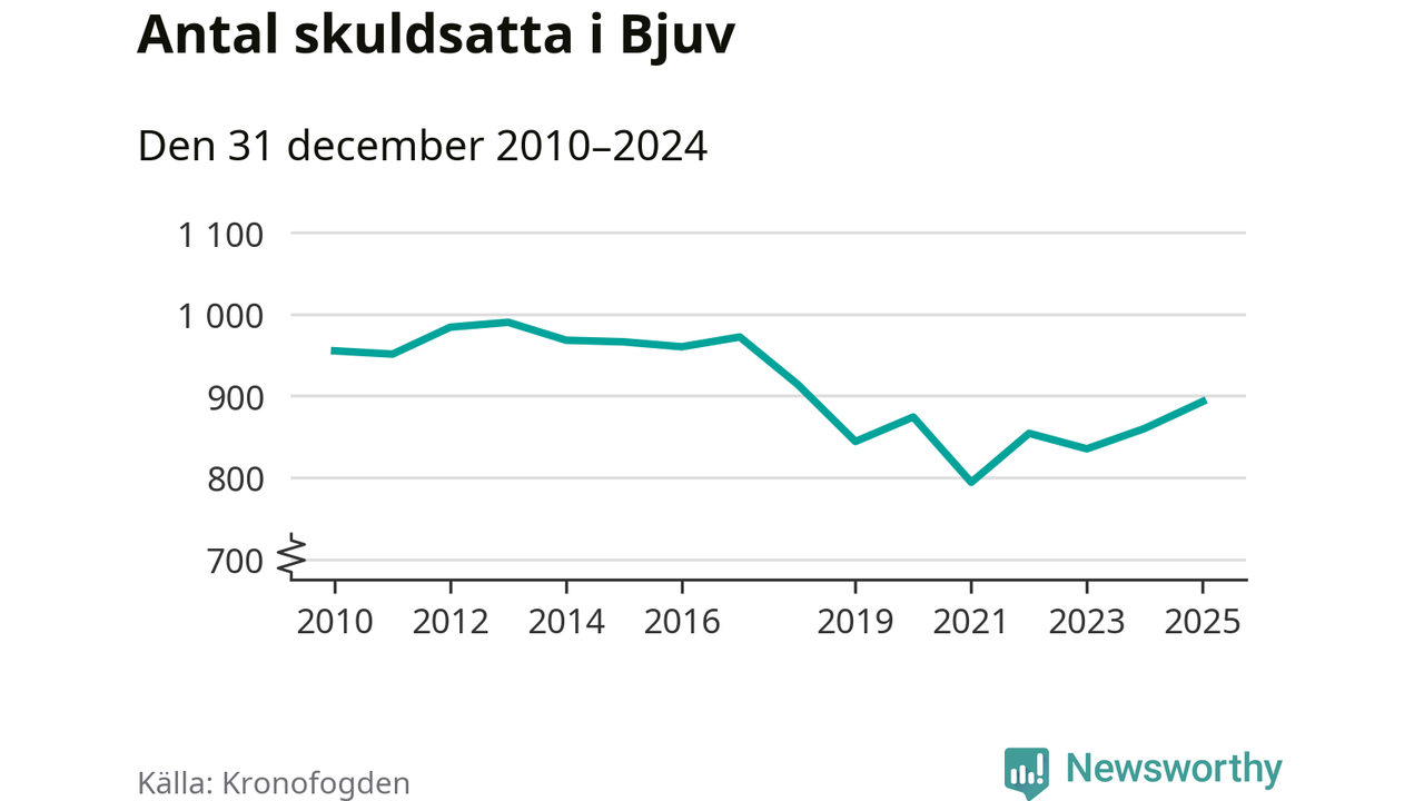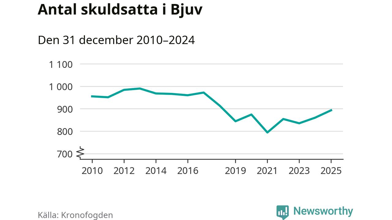 Allt fler Bjuvs­bor hamnar hos Kronofogden. Vid årskiftet var 893 invånare i kommunen skyldiga totalt 253,4 miljoner kronor. Det är en ökning med 33 personer – eller 4 procent – jämfört med året innan. Det är det högsta antalet sedan 2018.