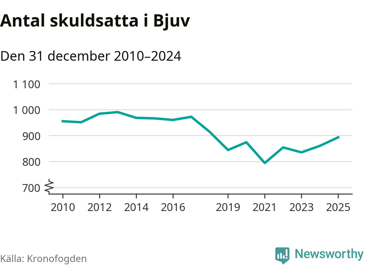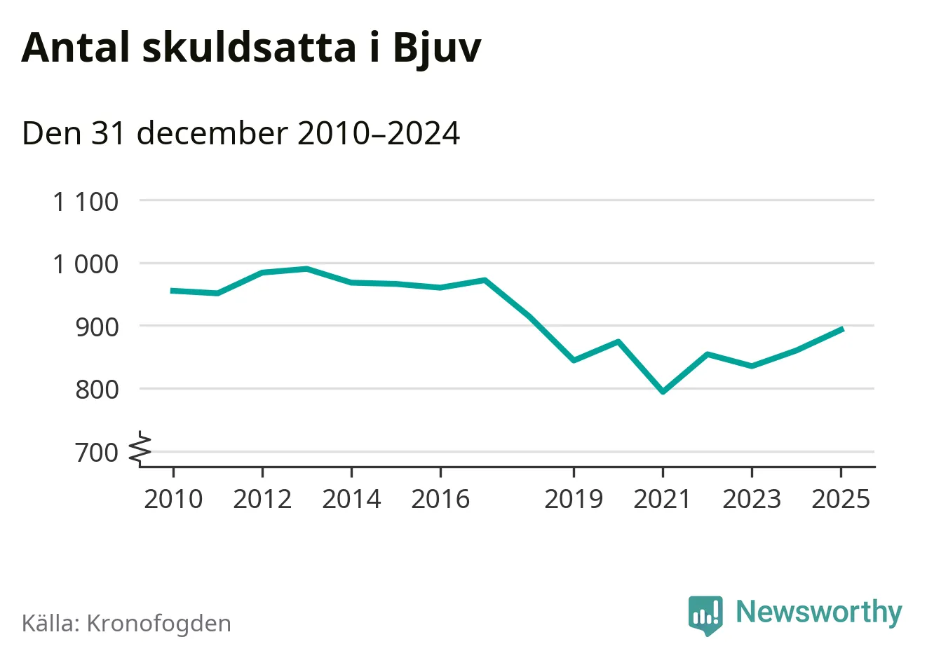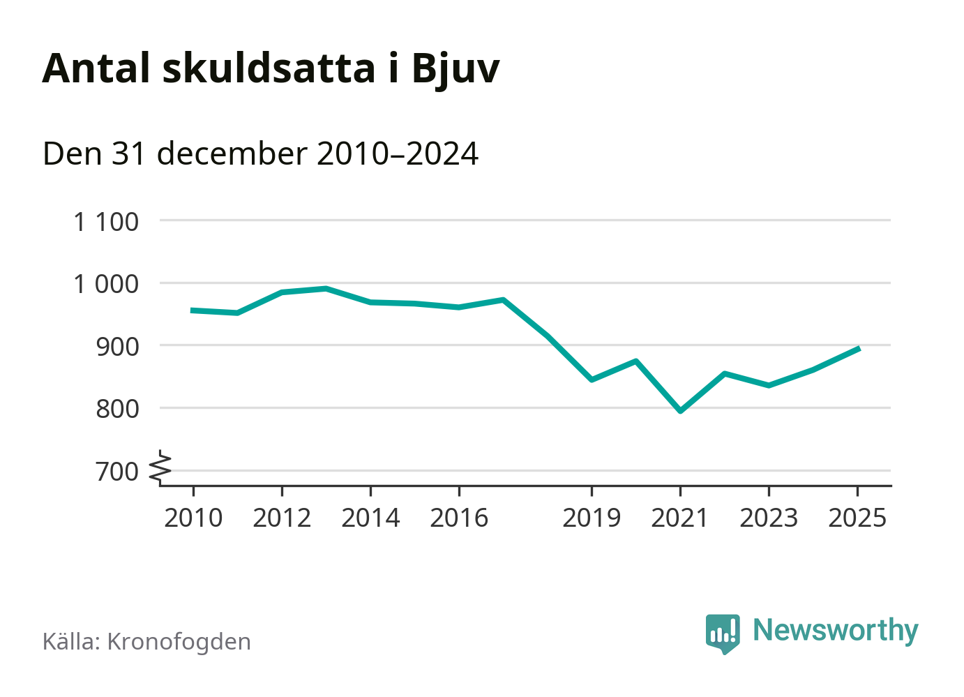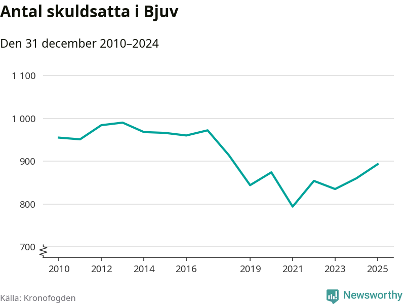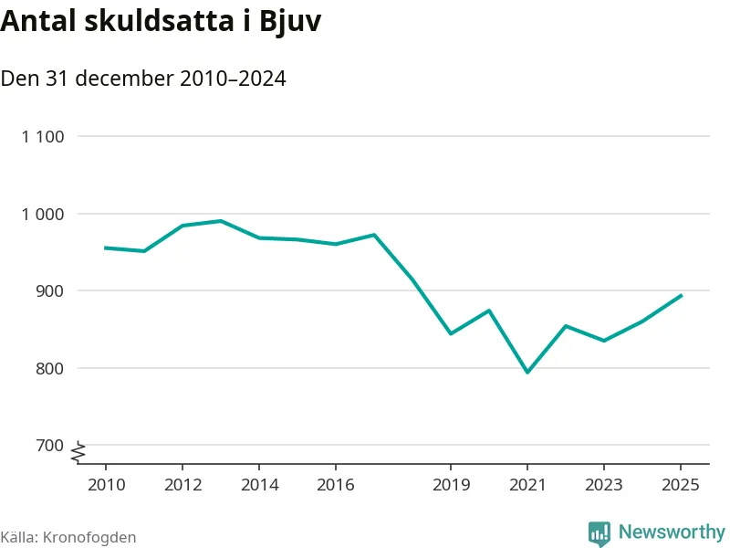 Allt fler Bjuvs­bor hamnar hos Kronofogden. Vid årskiftet var 893 invånare i kommunen skyldiga totalt 253,4 miljoner kronor. Det är en ökning med 33 personer – eller 4 procent – jämfört med året innan. Det är det högsta antalet sedan 2018.