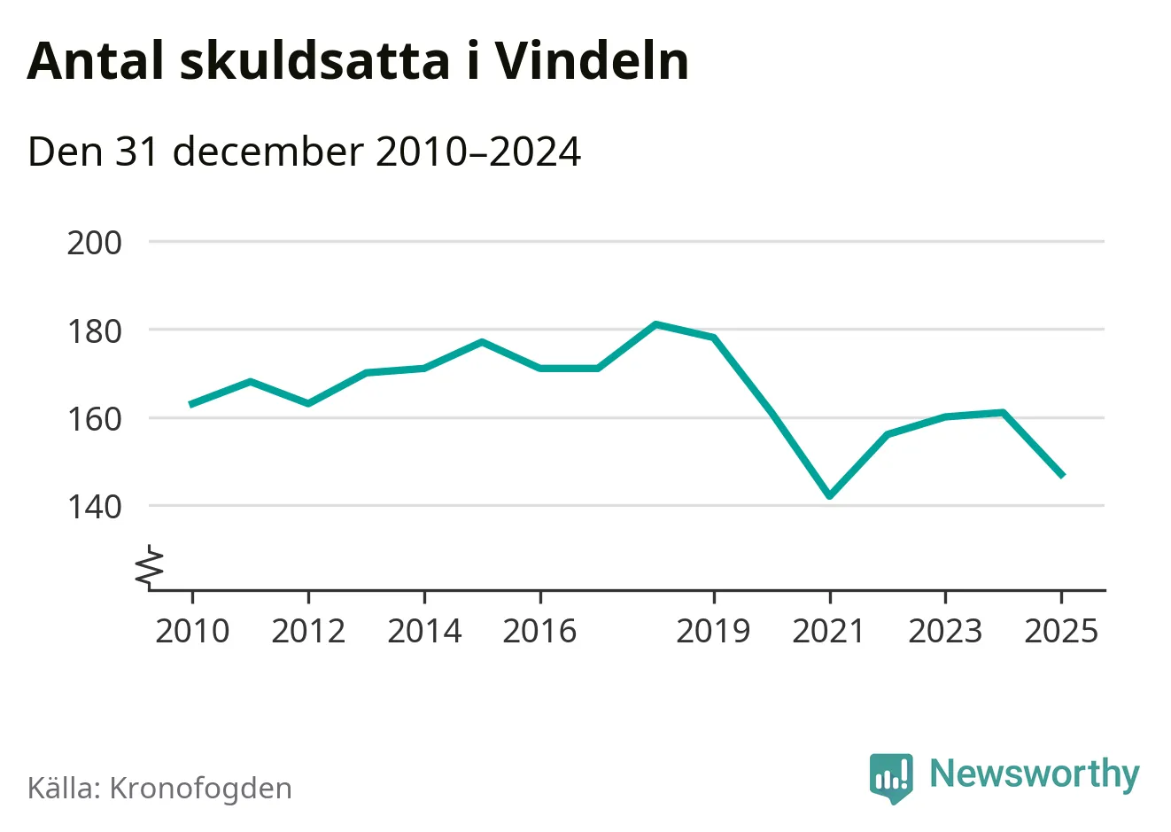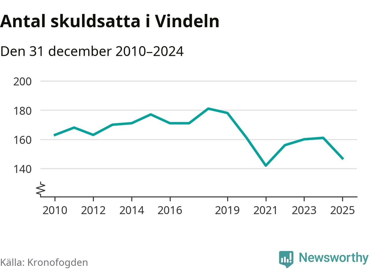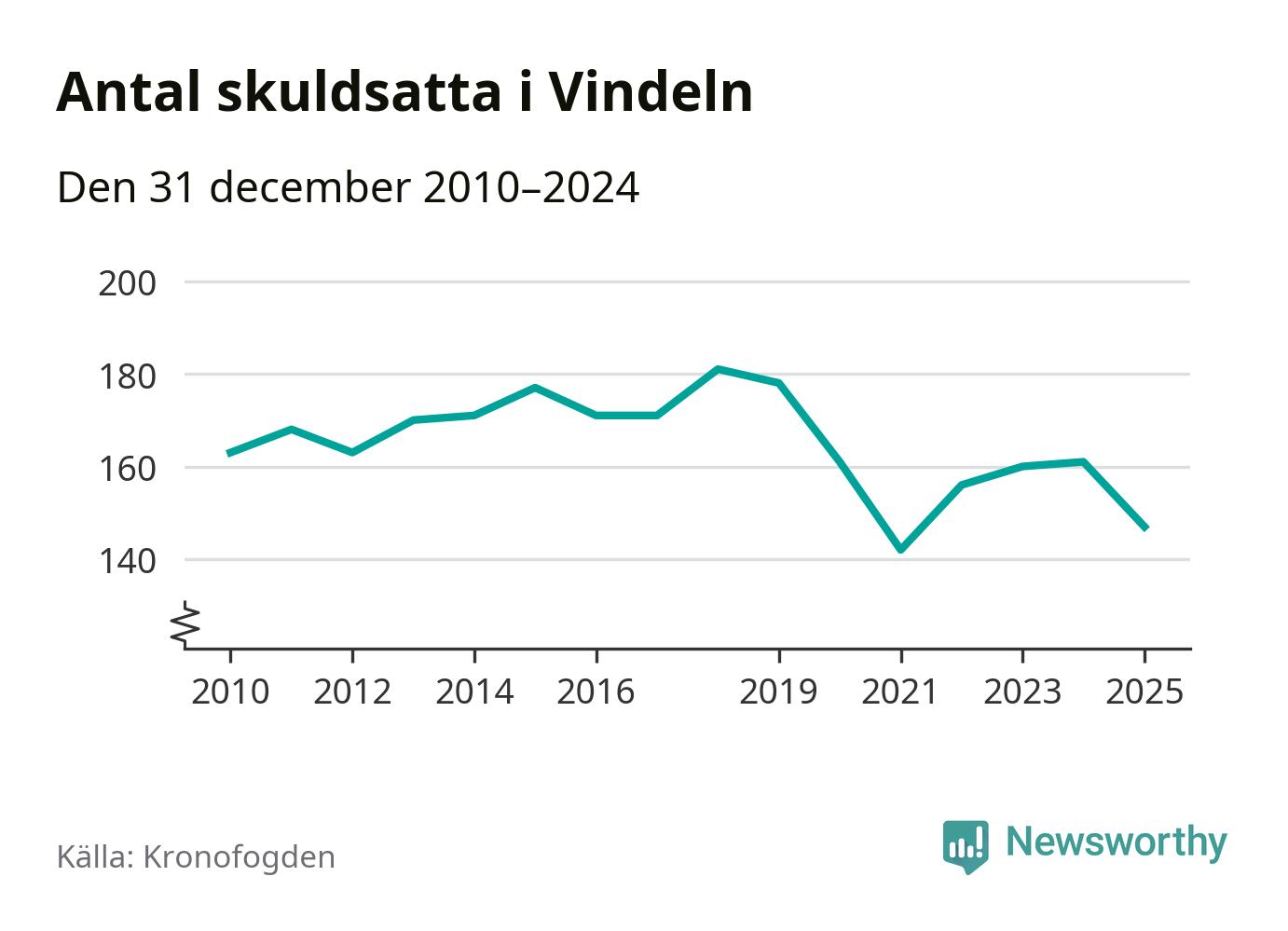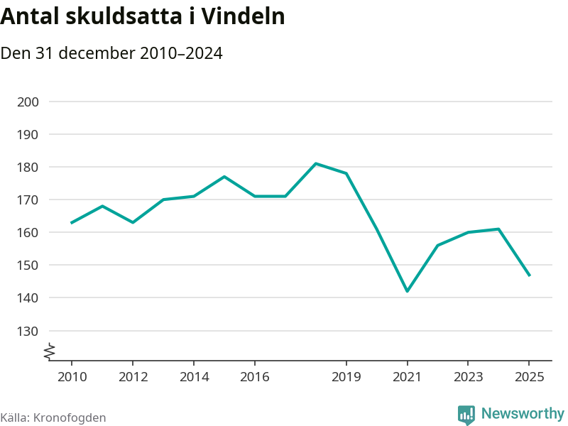 Antalet Vindelnbor hos Kronofogden minskade i fjol. Vid årskiftet var 147 invånare i kommunen skyldiga totalt 48,1 miljoner kronor. Det är en minskning med 14 personer – eller 9 procent – jämfört med året innan.