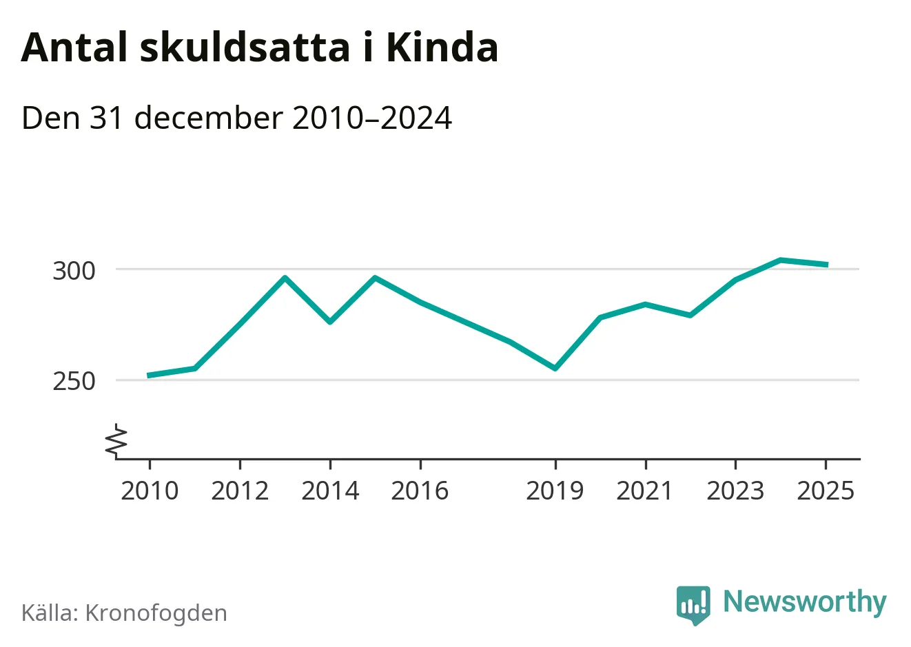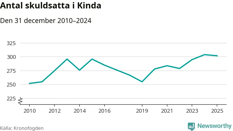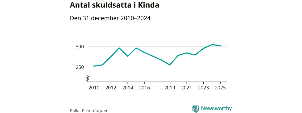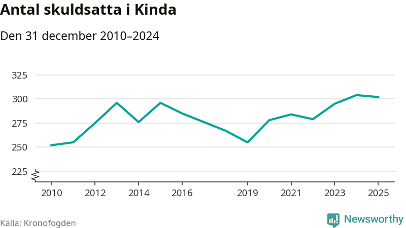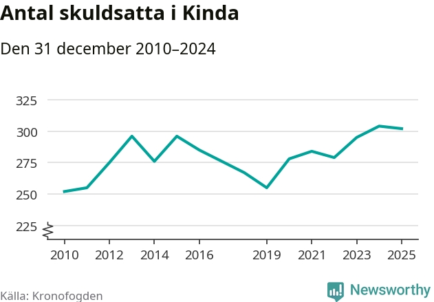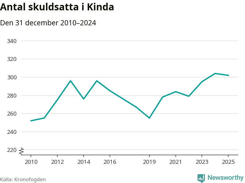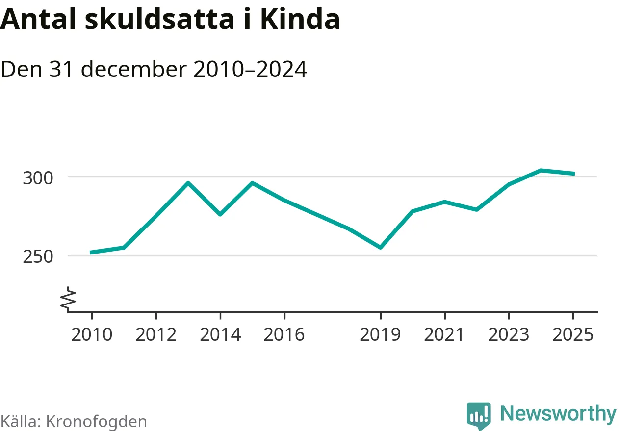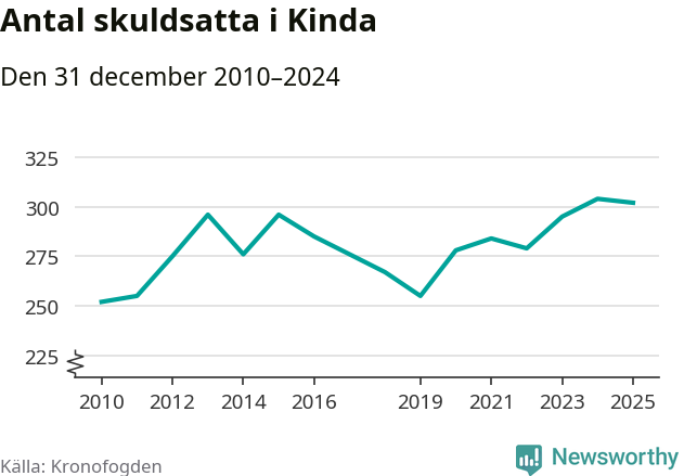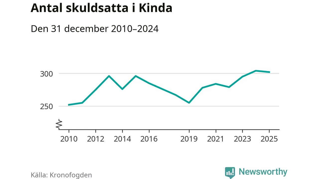 Antalet Kinda­bor hos Kronofogden är relativt oförändrat jämfört med i fjol. Vid årskiftet var 302 invånare i kommunen skyldiga totalt 178,7 miljoner kronor.
