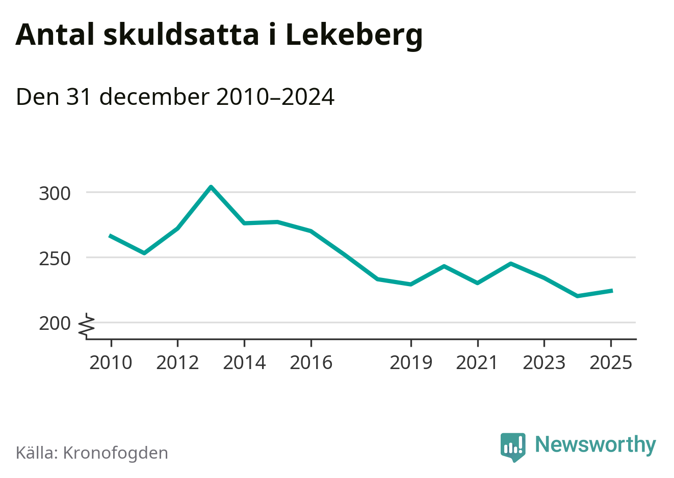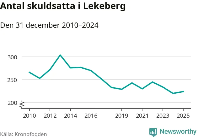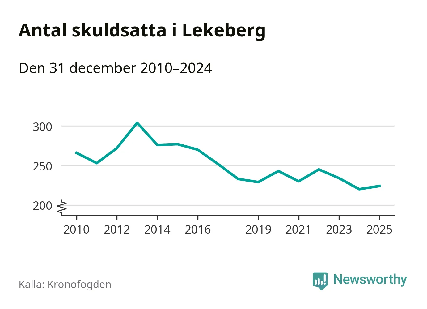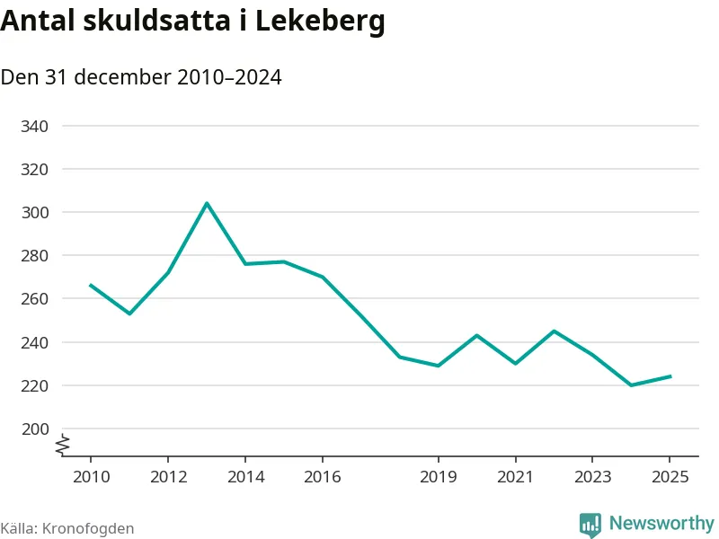 Antalet Lekebergs­bor hos Kronofogden ökade i fjol. Vid årskiftet var 224 invånare i kommunen skyldiga totalt 62,4 miljoner kronor. Det är en ökning med fyra personer jämfört med året innan.