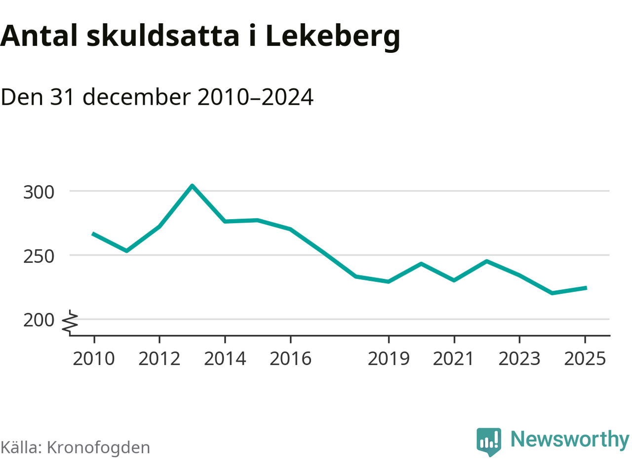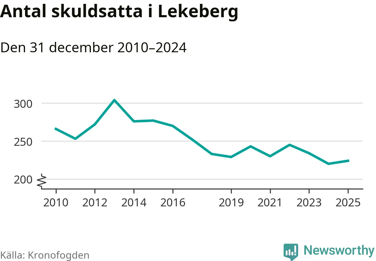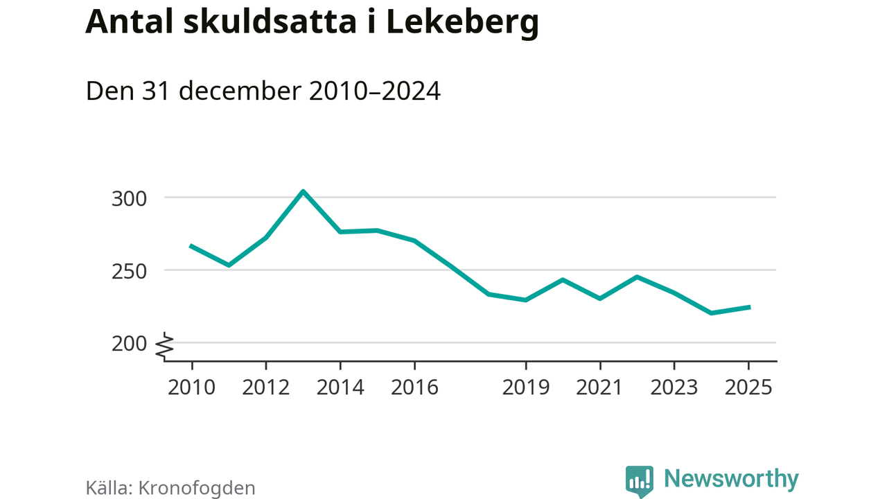 Antalet Lekebergs­bor hos Kronofogden ökade i fjol. Vid årskiftet var 224 invånare i kommunen skyldiga totalt 62,4 miljoner kronor. Det är en ökning med fyra personer jämfört med året innan.