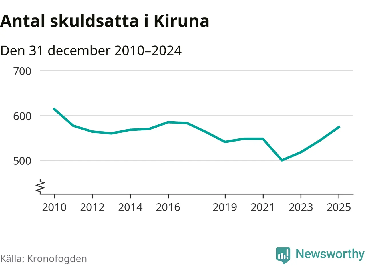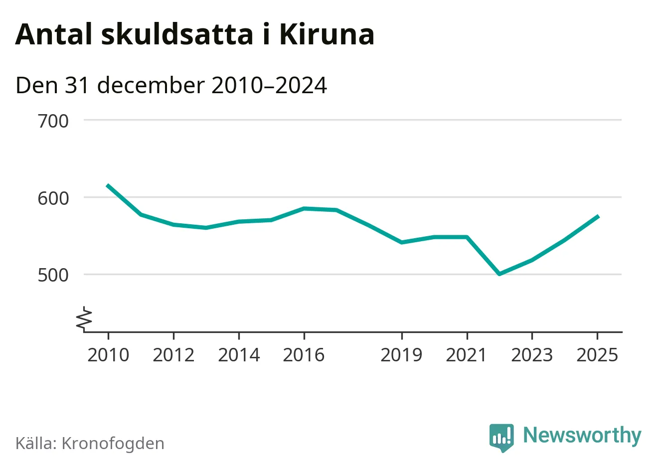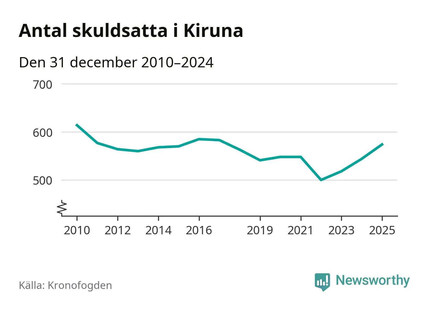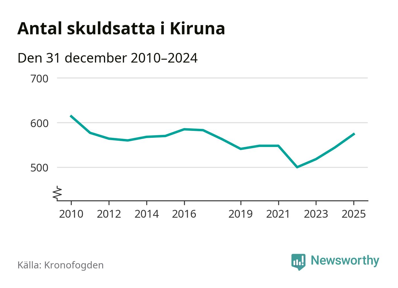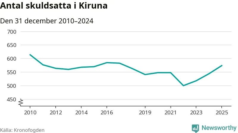 Allt fler Kiruna­bor hamnar hos Kronofogden. Vid årskiftet var 574 invånare i kommunen skyldiga totalt 192,7 miljoner kronor. Det är en ökning med 30 personer – eller 6 procent – jämfört med året innan. Det är det högsta antalet sedan 2017.