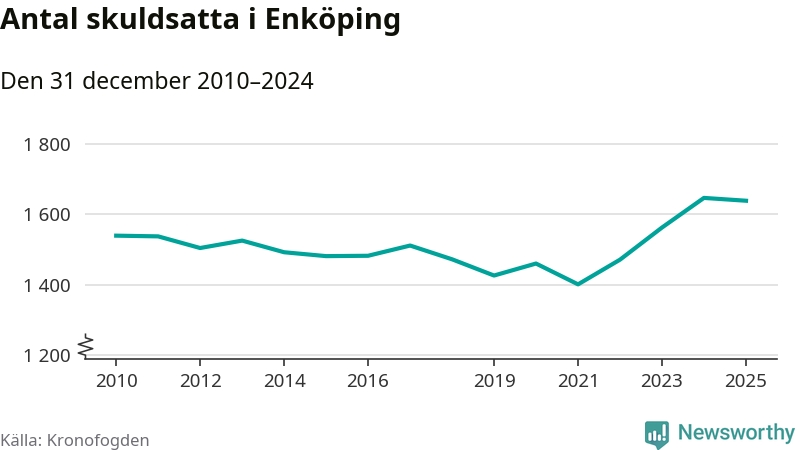 Antalet Enköpingsbor hos Kronofogden är relativt oförändrat jämfört med i fjol. Vid årskiftet var 1 638 invånare i kommunen skyldiga totalt 506,7 miljoner kronor.