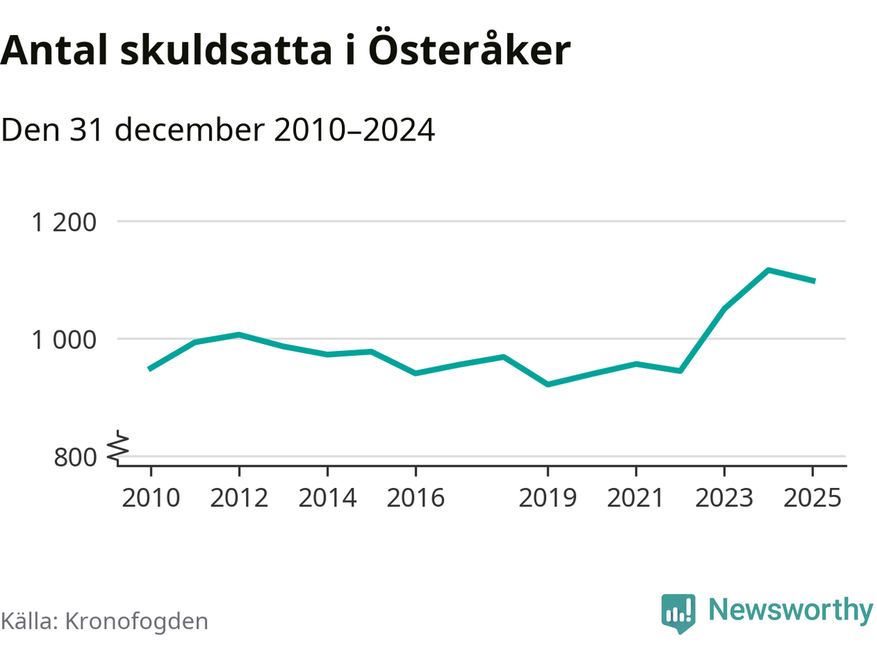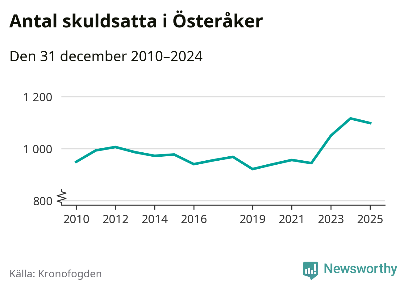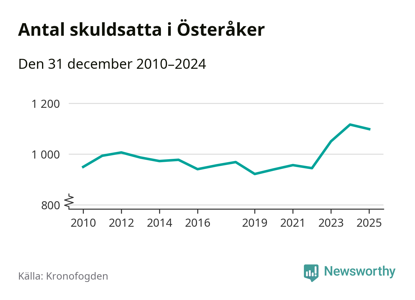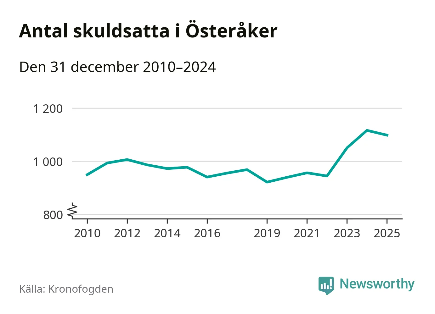 Vid årskiftet var 3 procent av alla Österåkersbor över 18 år registrerade hos Kronofogden. Störst andel skuldsatta i länet finns i Botkyrka (6 procent), medan den lägsta andelen finns i Danderyd (1 procent).