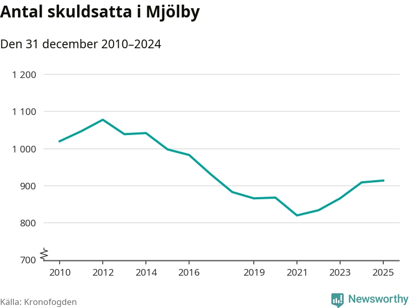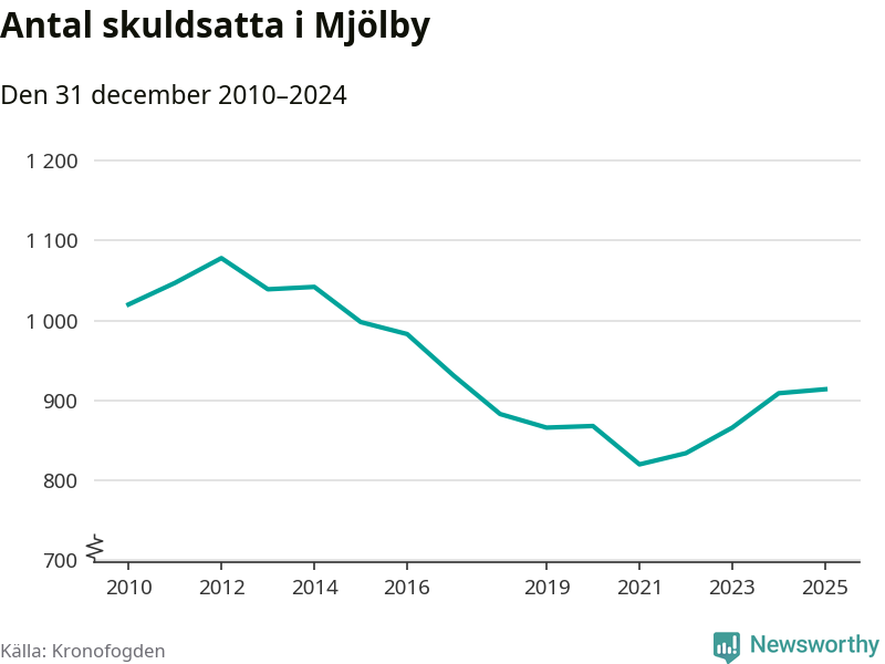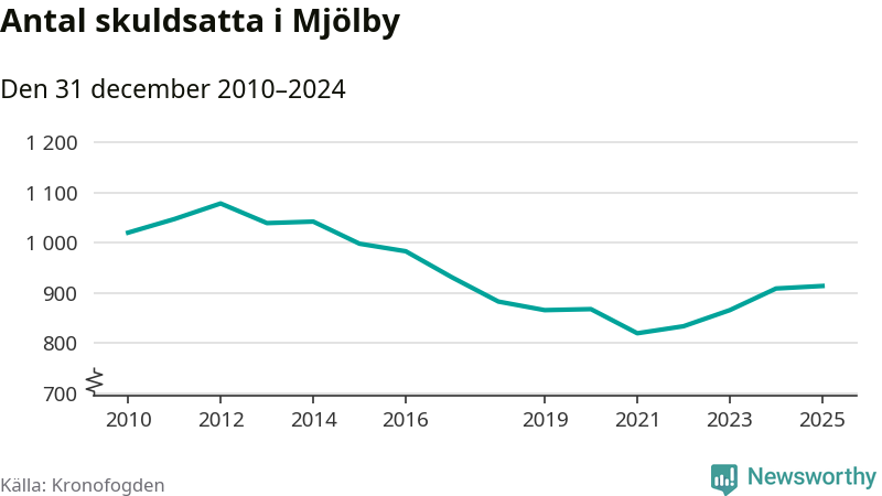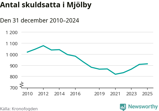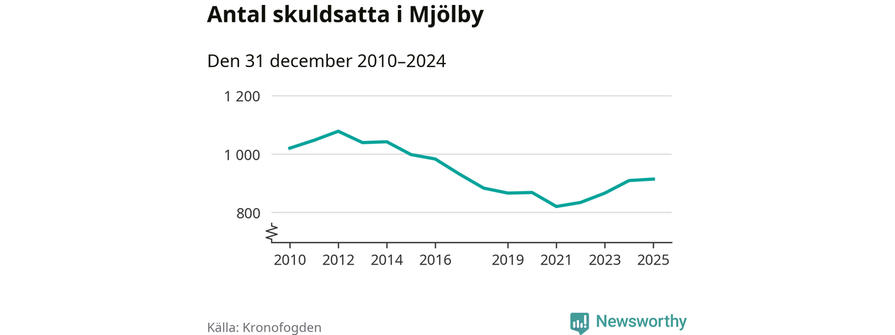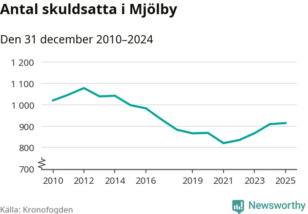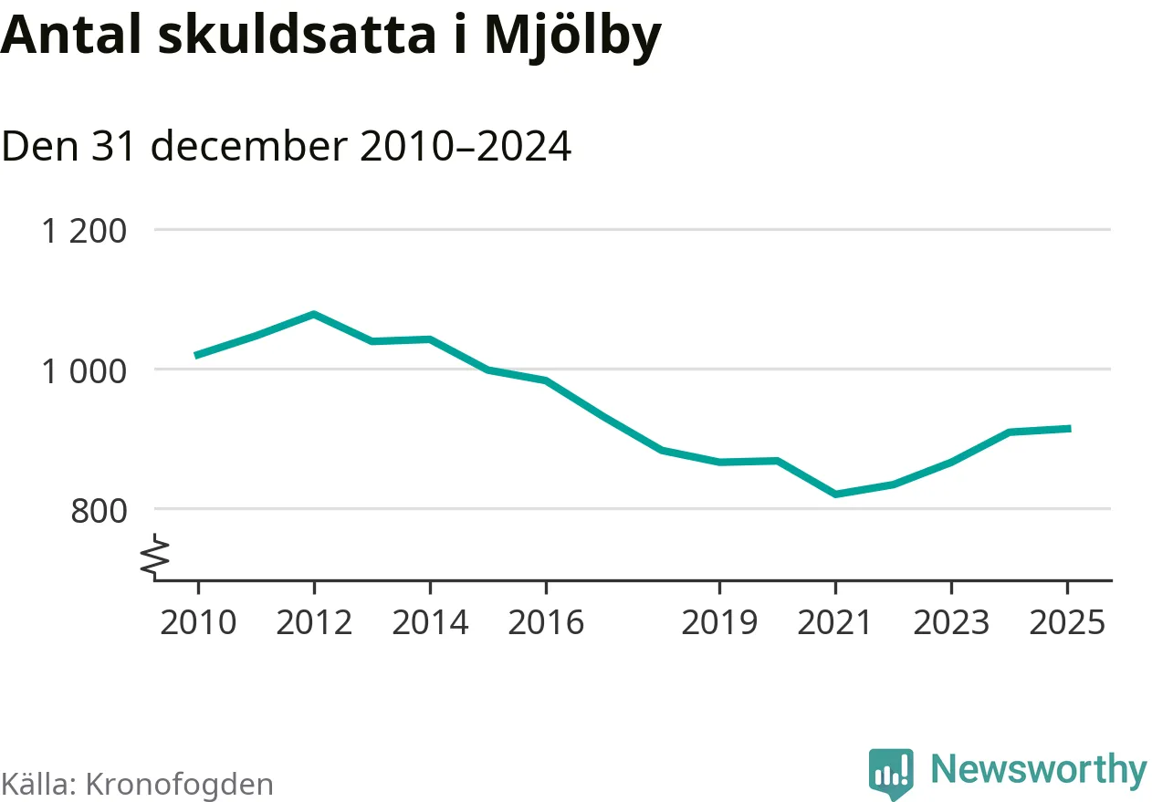 Allt fler Mjölbybor hamnar hos Kronofogden. Vid årskiftet var 914 invånare i kommunen skyldiga totalt 252,8 miljoner kronor.