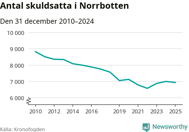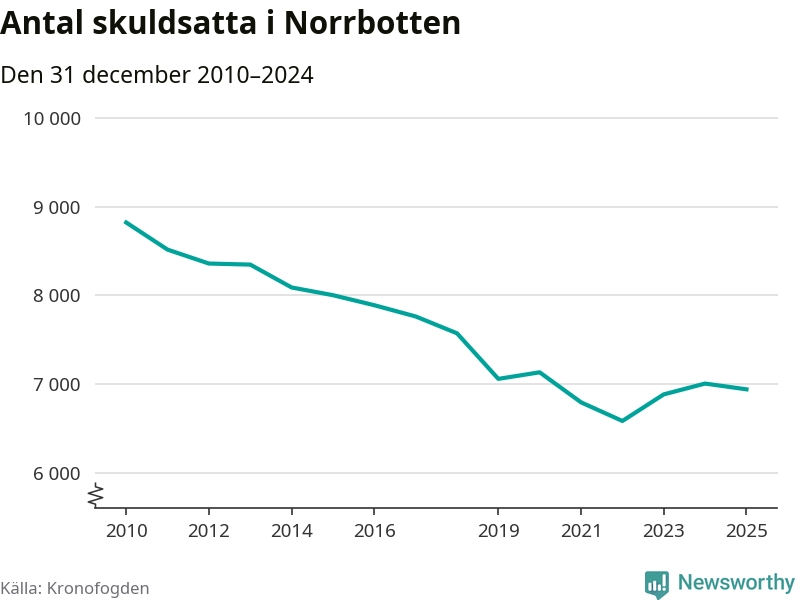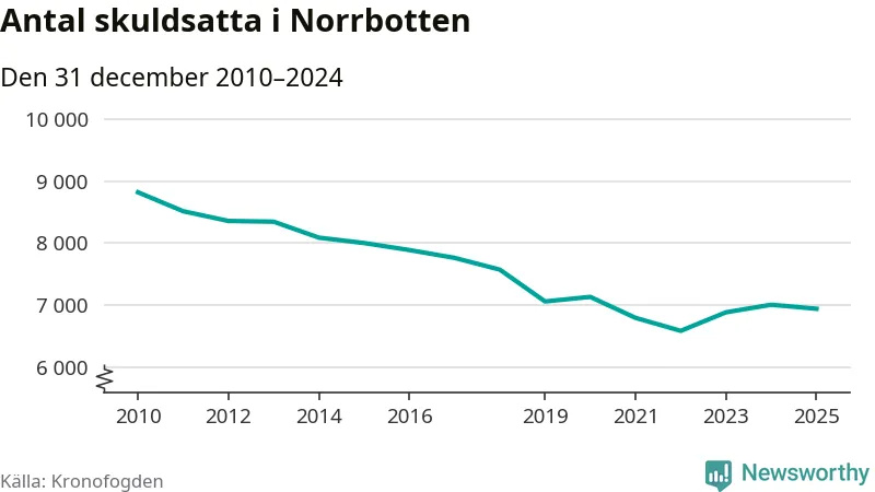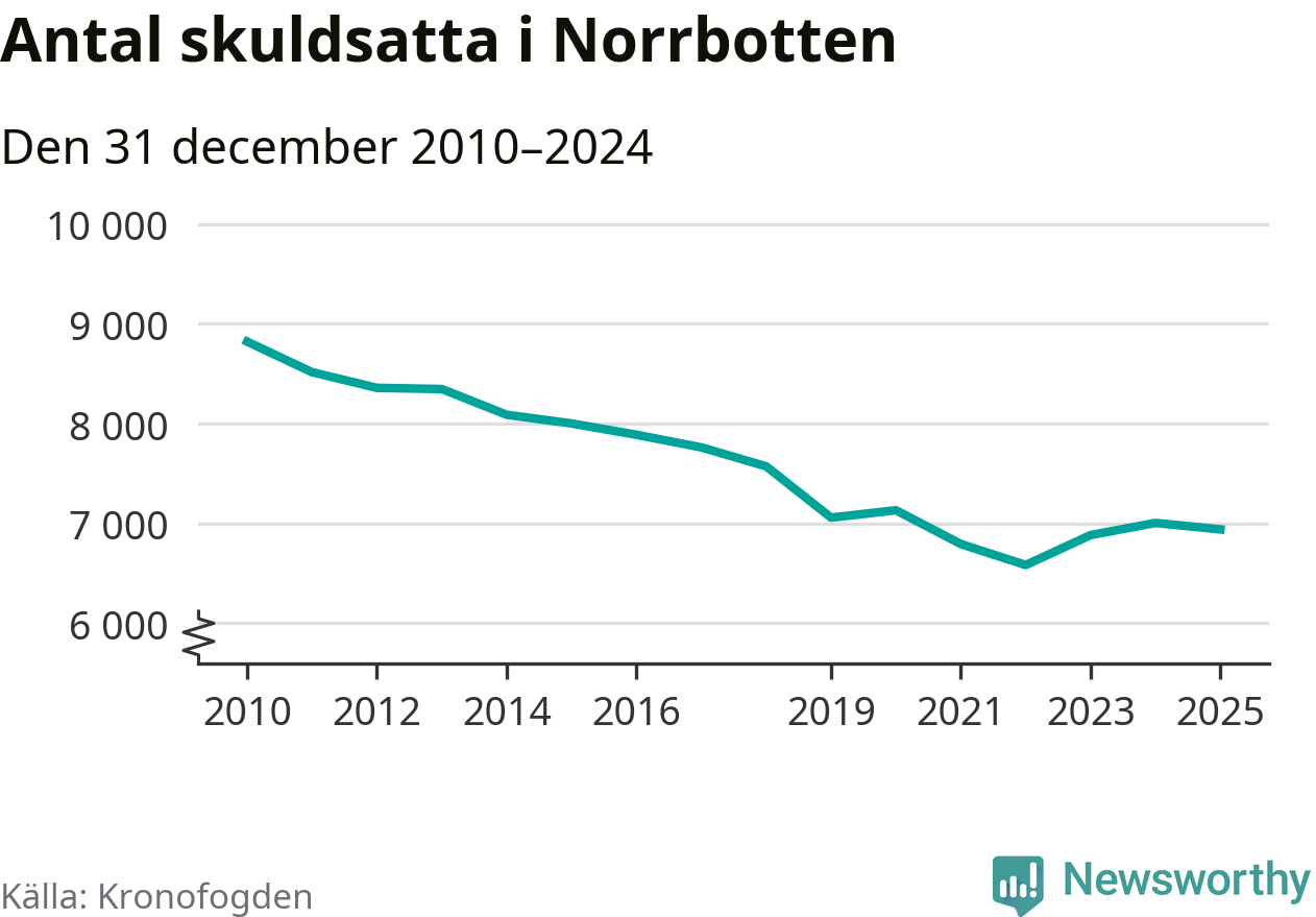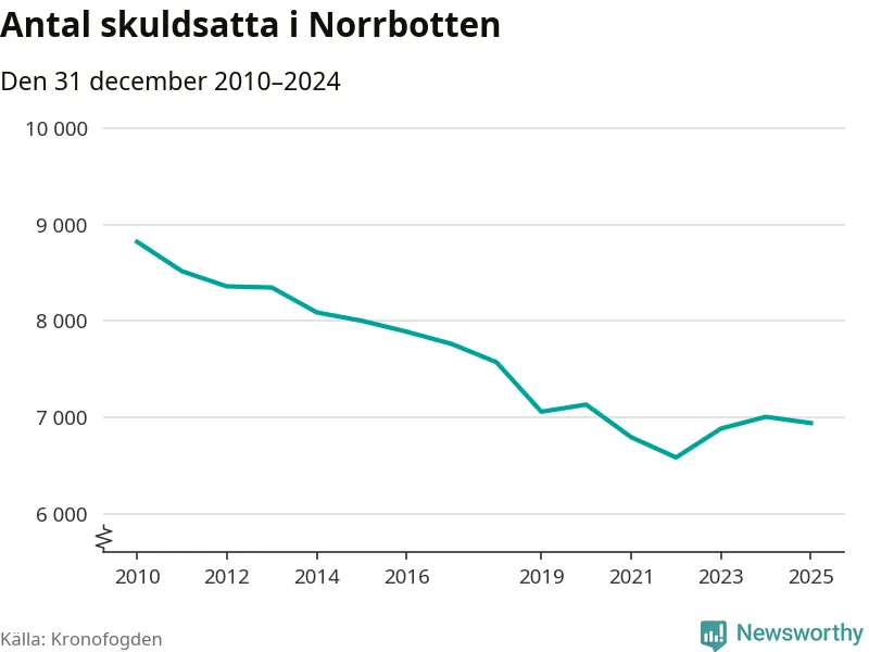 Antalet norrbottningar hos Kronofogden är relativt oförändrat jämfört med i fjol. Vid årskiftet var 6 939 invånare i länet skyldiga totalt 2,4 miljarder kronor.