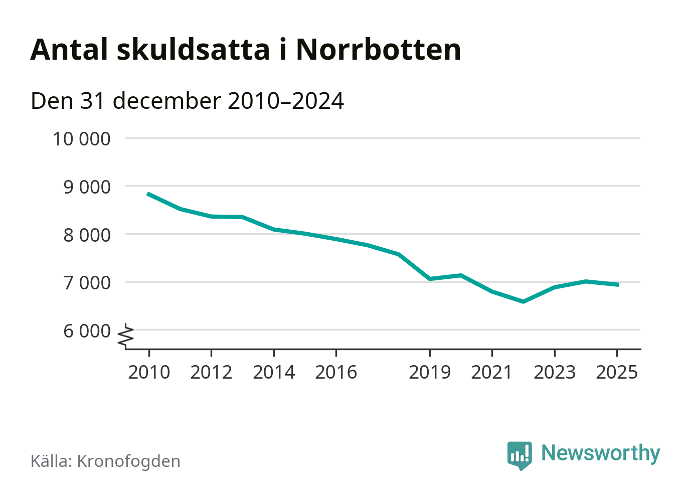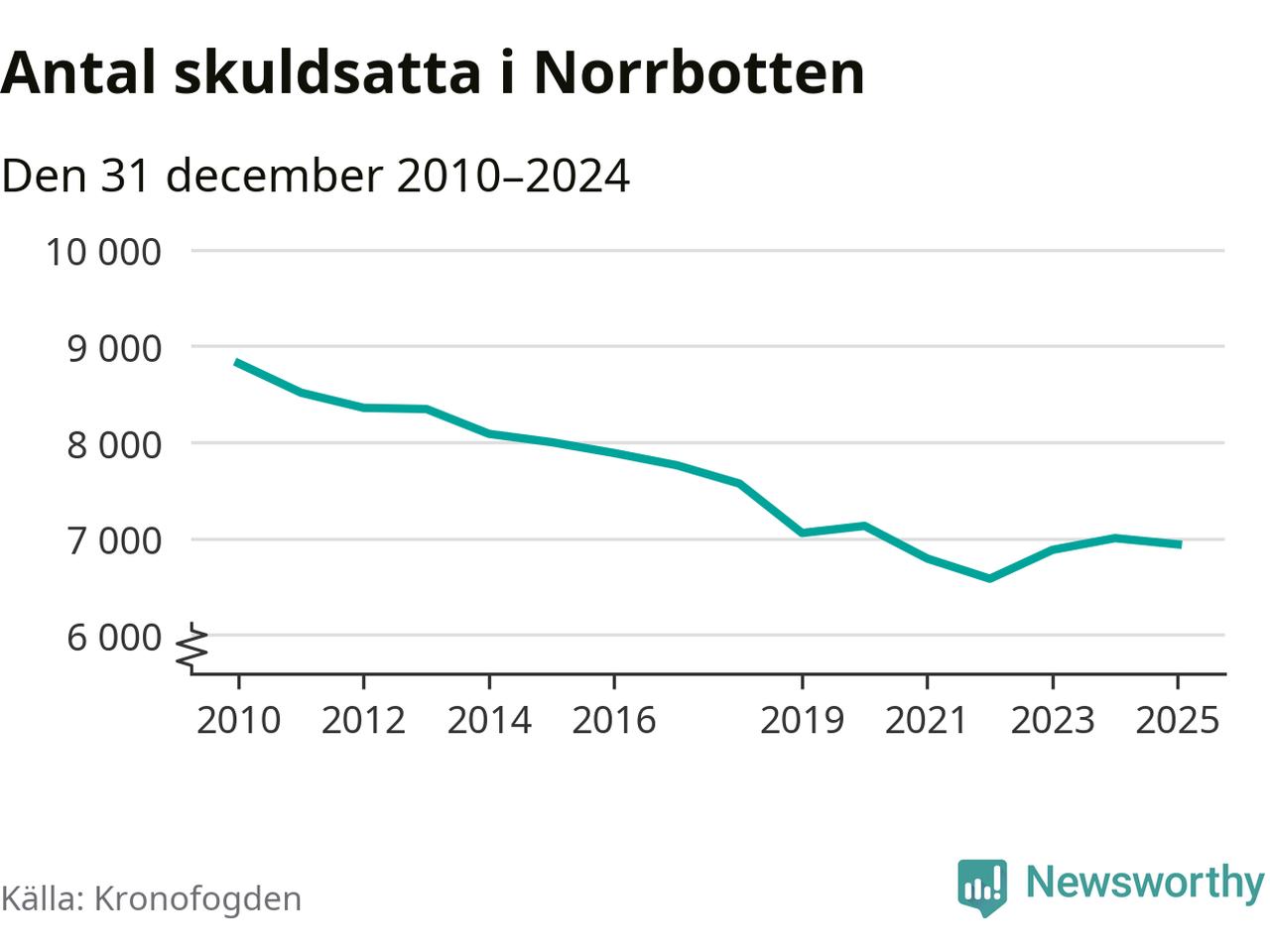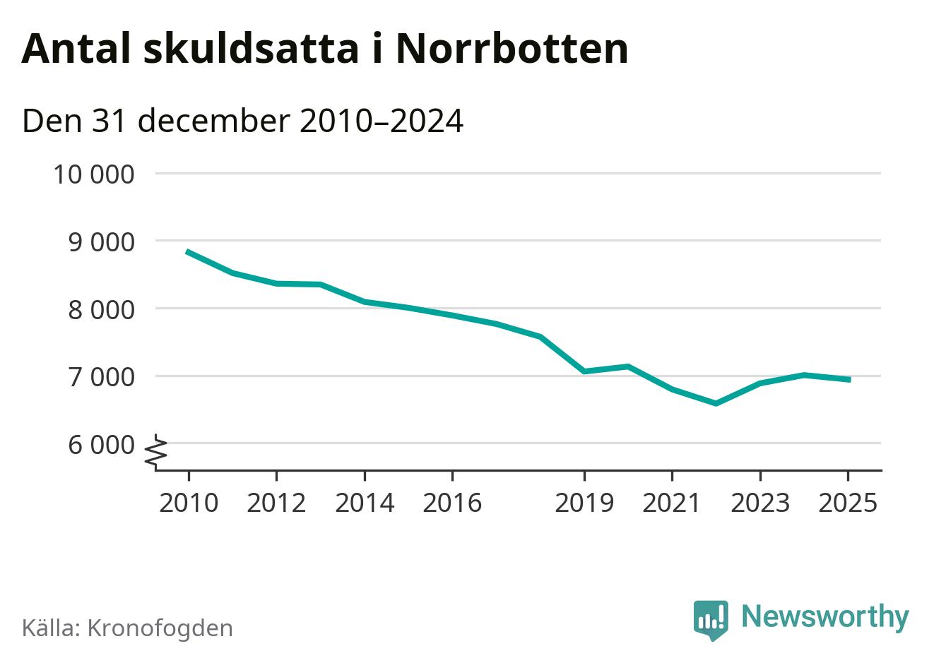 Antalet norrbottningar hos Kronofogden är relativt oförändrat jämfört med i fjol. Vid årskiftet var 6 939 invånare i länet skyldiga totalt 2,4 miljarder kronor.