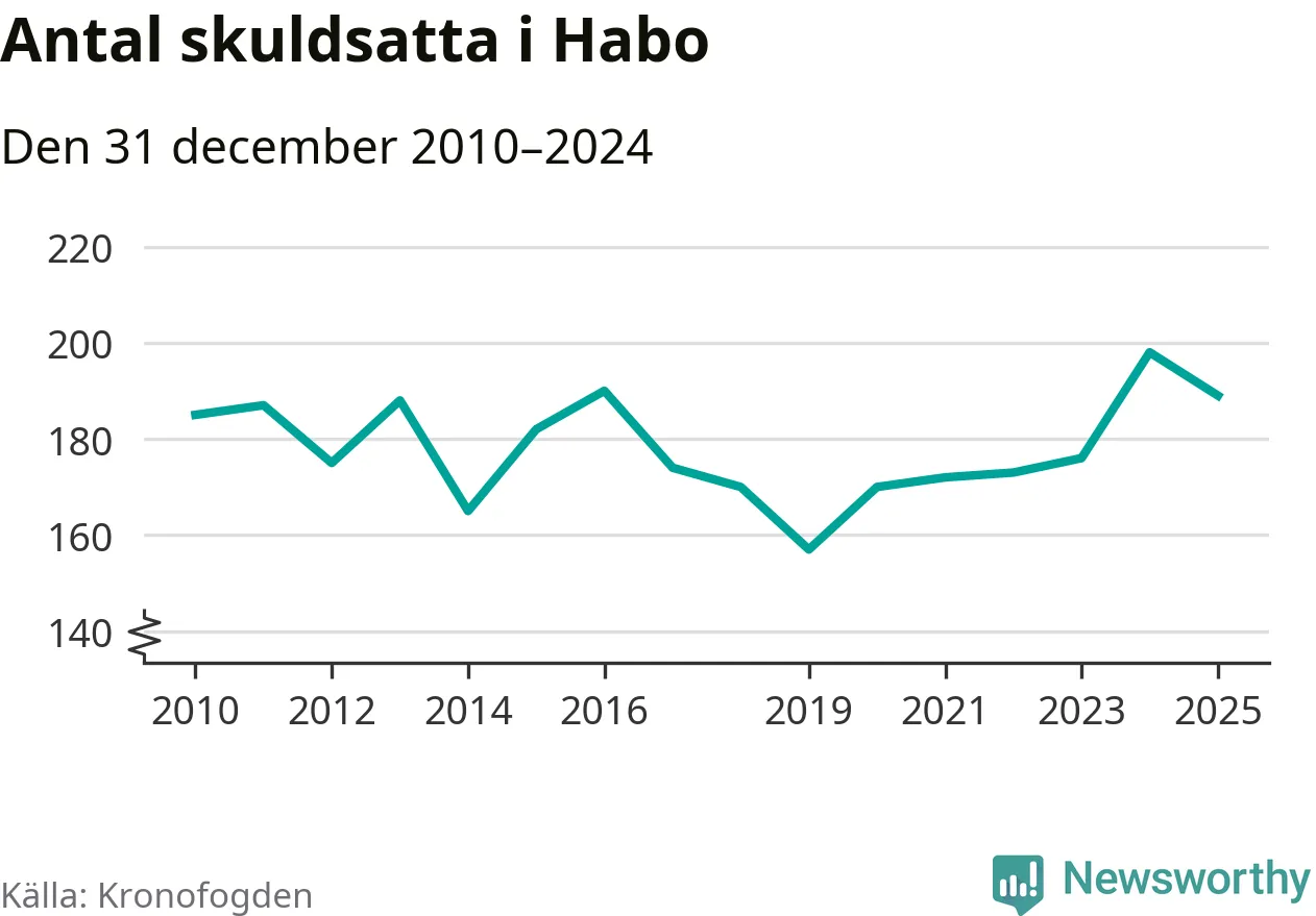 Antalet Habobor hos Kronofogden minskade i fjol. Vid årskiftet var 189 invånare i kommunen skyldiga totalt 47,3 miljoner kronor. Det är en minskning med nio personer jämfört med året innan.