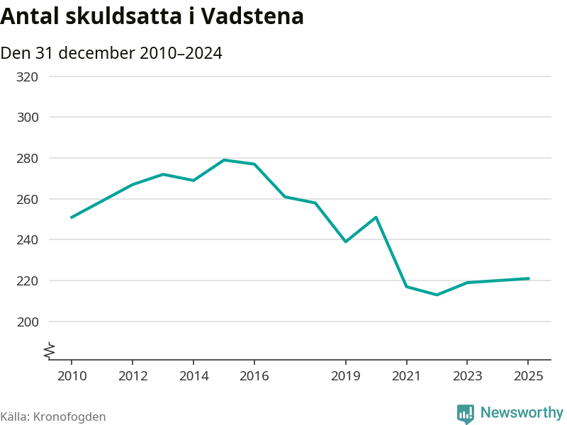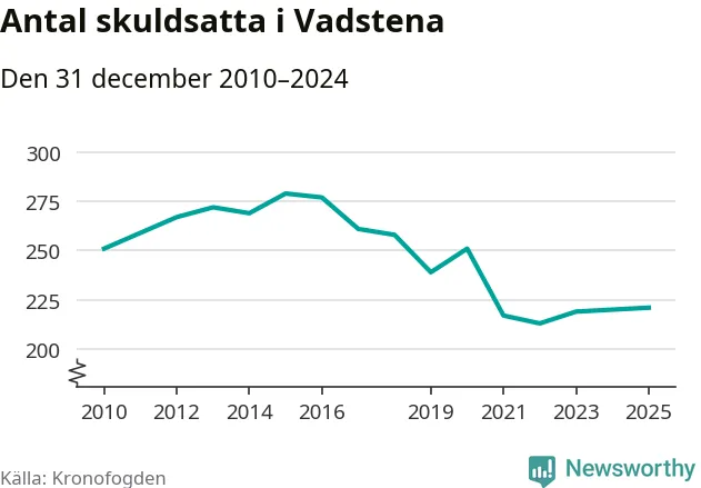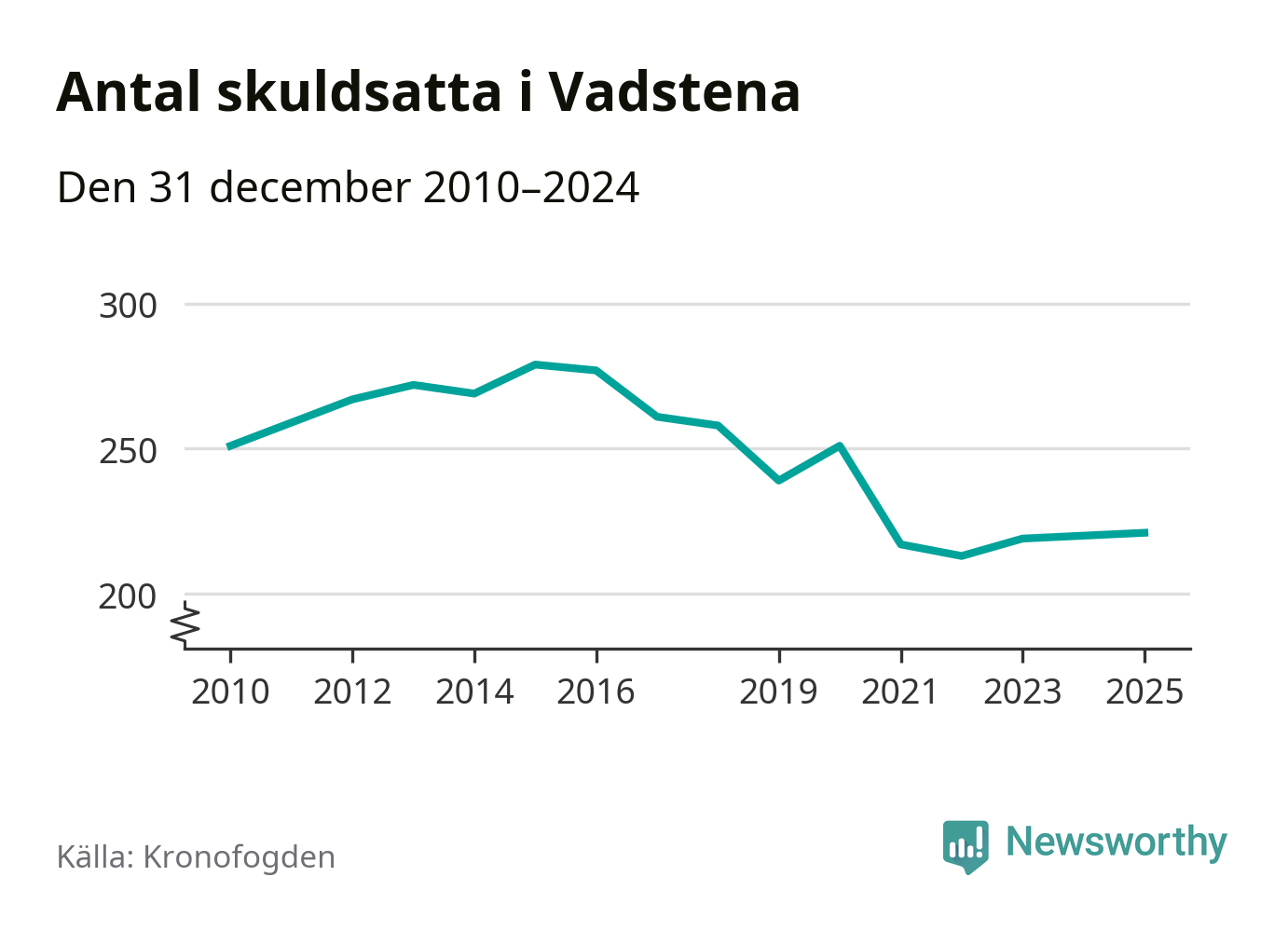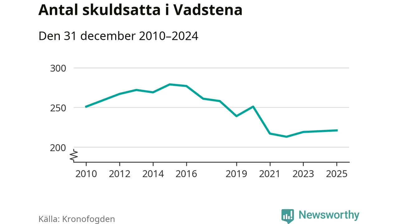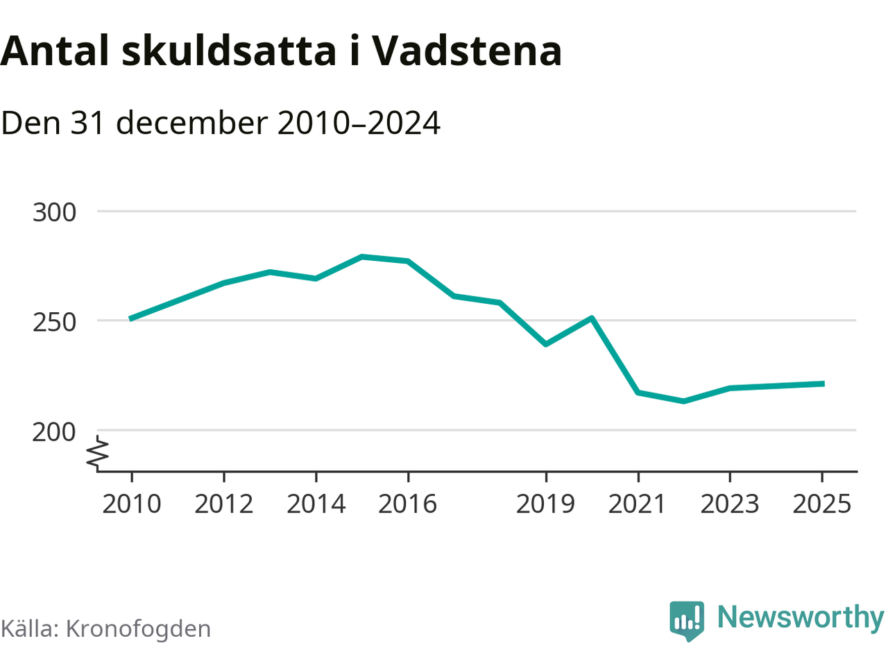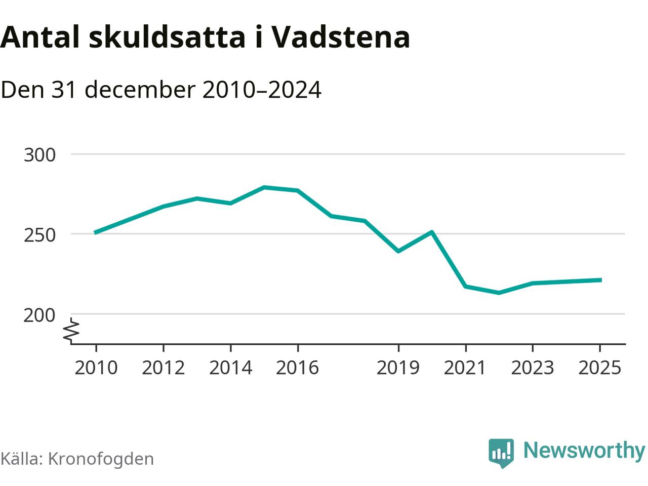 Allt fler Vadstenabor hamnar hos Kronofogden. Vid årskiftet var 221 invånare i kommunen skyldiga totalt 271,9 miljoner kronor.