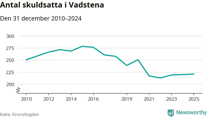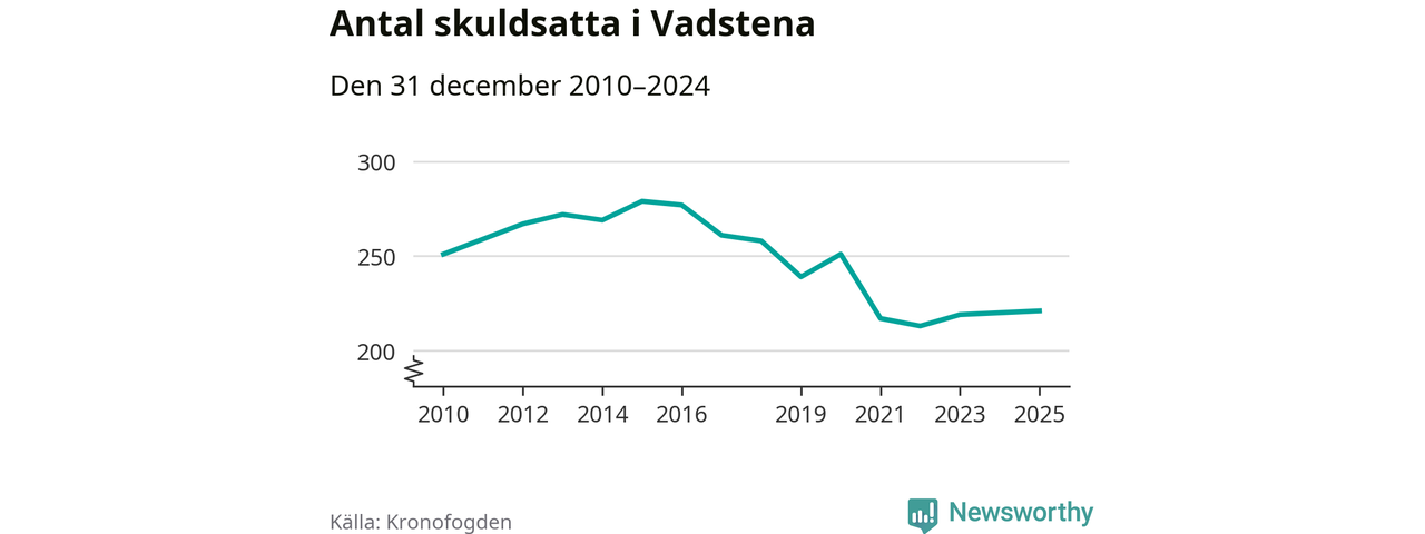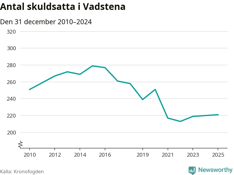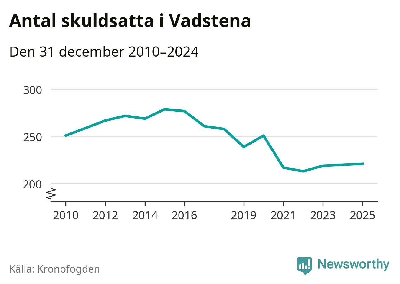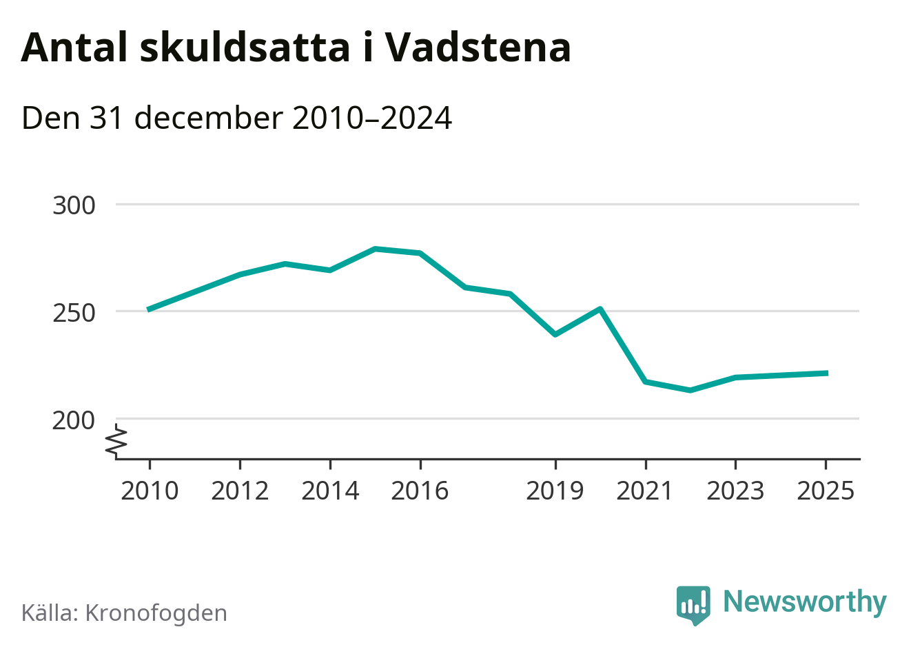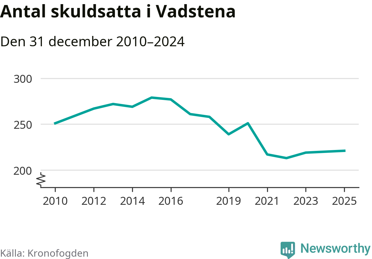 Allt fler Vadstenabor hamnar hos Kronofogden. Vid årskiftet var 221 invånare i kommunen skyldiga totalt 271,9 miljoner kronor.