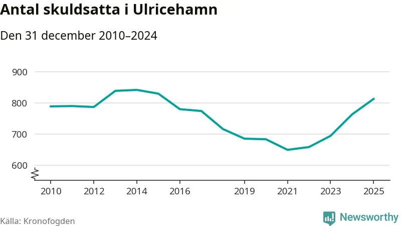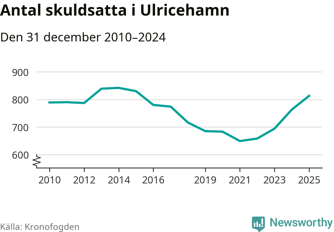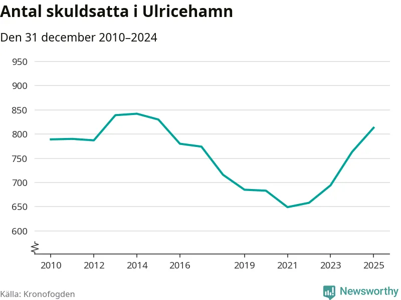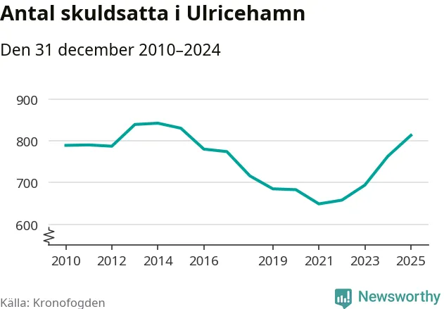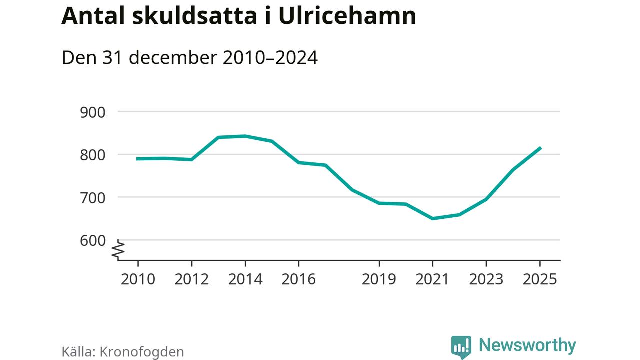 Allt fler Ulricehamnsbor hamnar hos Kronofogden. Vid årskiftet var 813 invånare i kommunen skyldiga totalt 246,7 miljoner kronor. Det är en ökning med 50 personer – eller 7 procent – jämfört med året innan. Det är det högsta antalet sedan 2015.