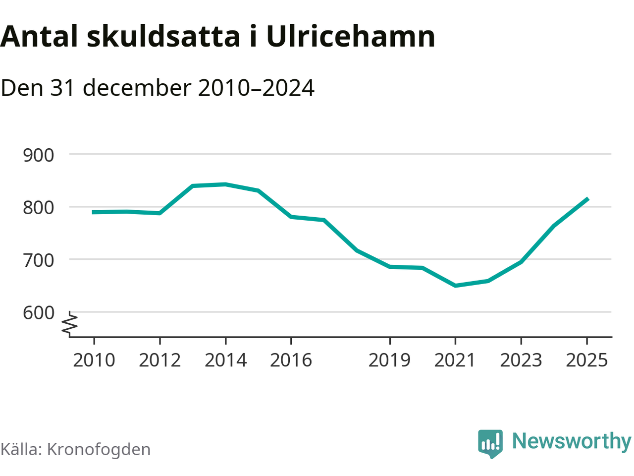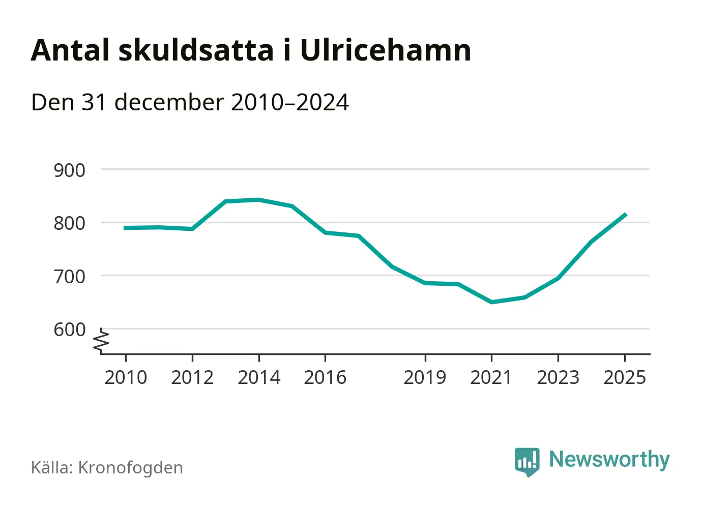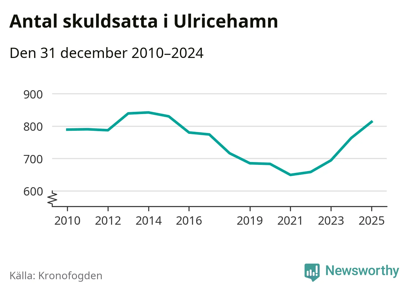 Allt fler Ulricehamnsbor hamnar hos Kronofogden. Vid årskiftet var 813 invånare i kommunen skyldiga totalt 246,7 miljoner kronor. Det är en ökning med 50 personer – eller 7 procent – jämfört med året innan. Det är det högsta antalet sedan 2015.