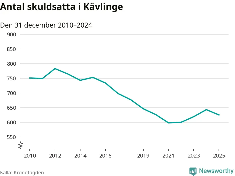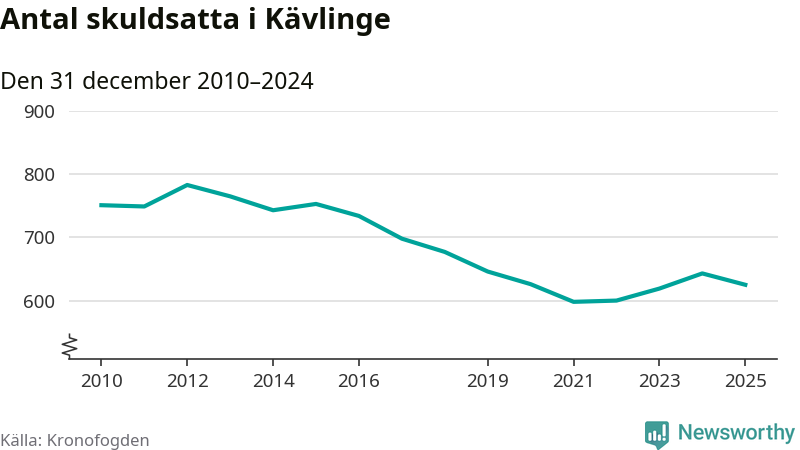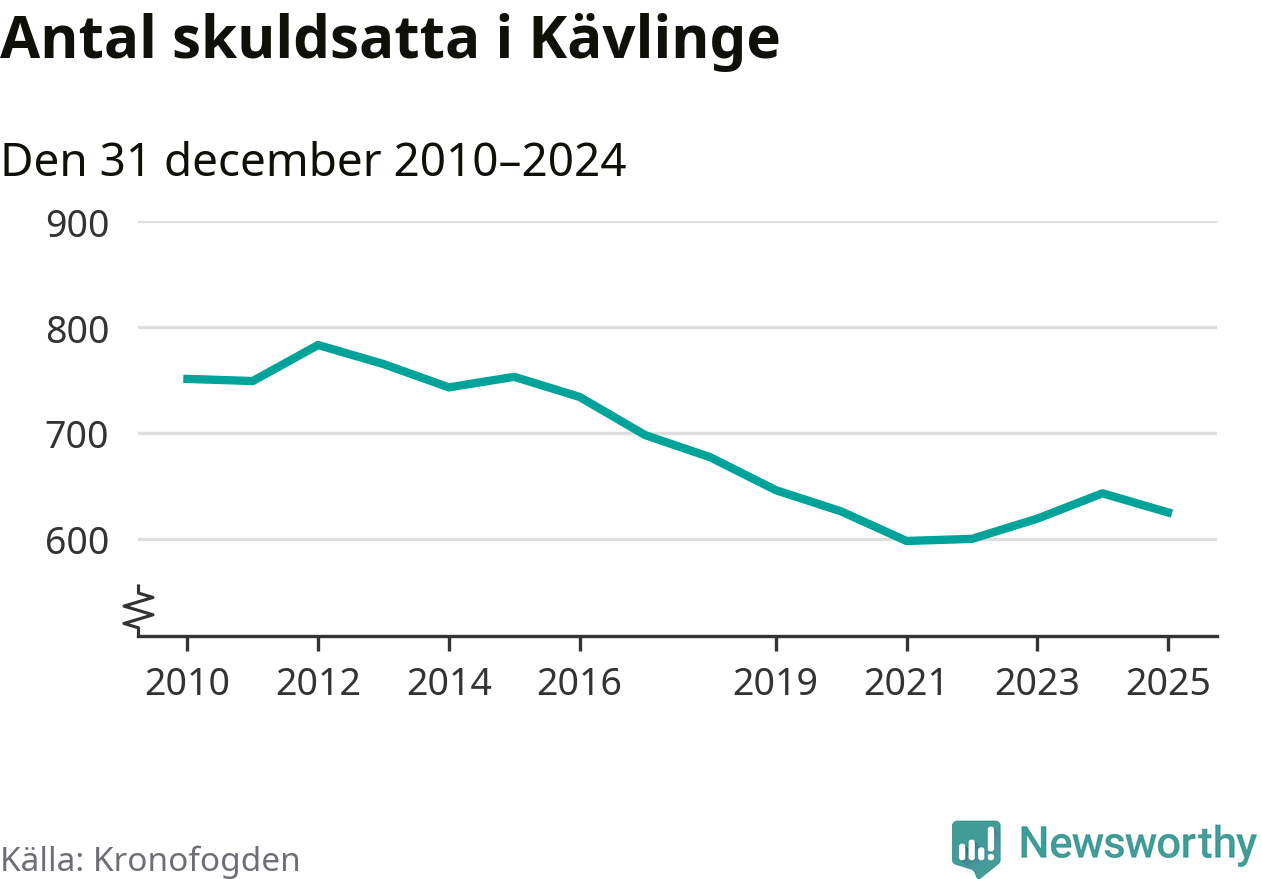 Antalet Kävlingebor hos Kronofogden minskade i fjol. Vid årskiftet var 625 invånare i kommunen skyldiga totalt 219,6 miljoner kronor. Det är en minskning med 18 personer – eller 3 procent – jämfört med året innan.