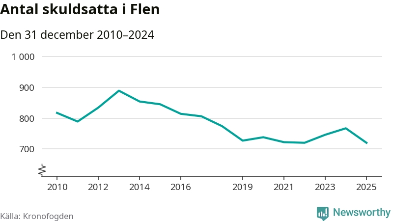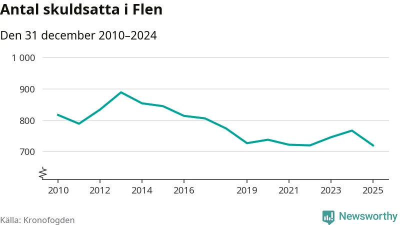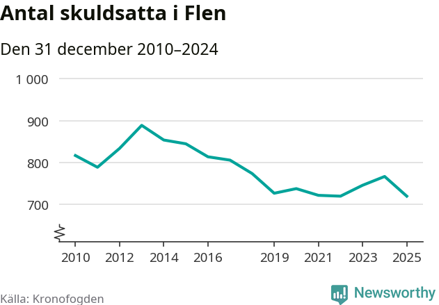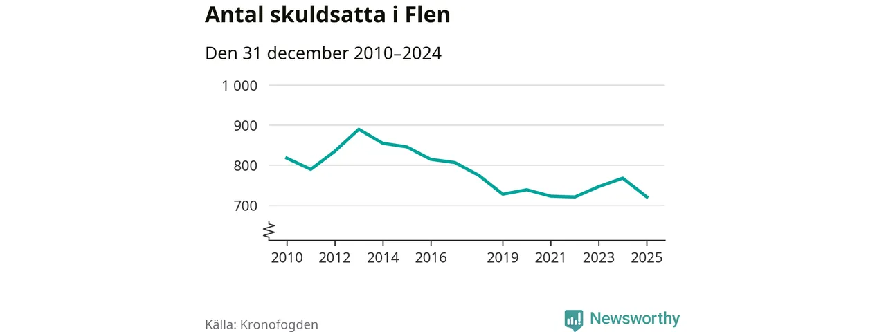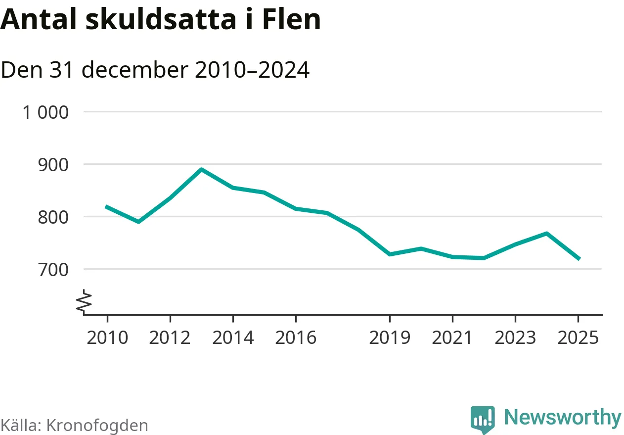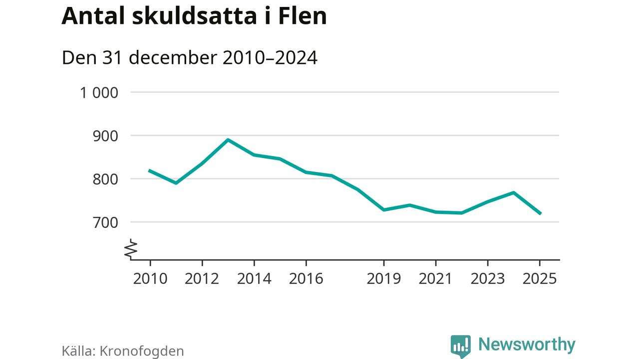 Antalet Flen­bor hos Kronofogden minskade i fjol. Vid årskiftet var 720 invånare i kommunen skyldiga totalt 198,4 miljoner kronor. Det är en minskning med 47 personer – eller 6 procent – jämfört med året innan.