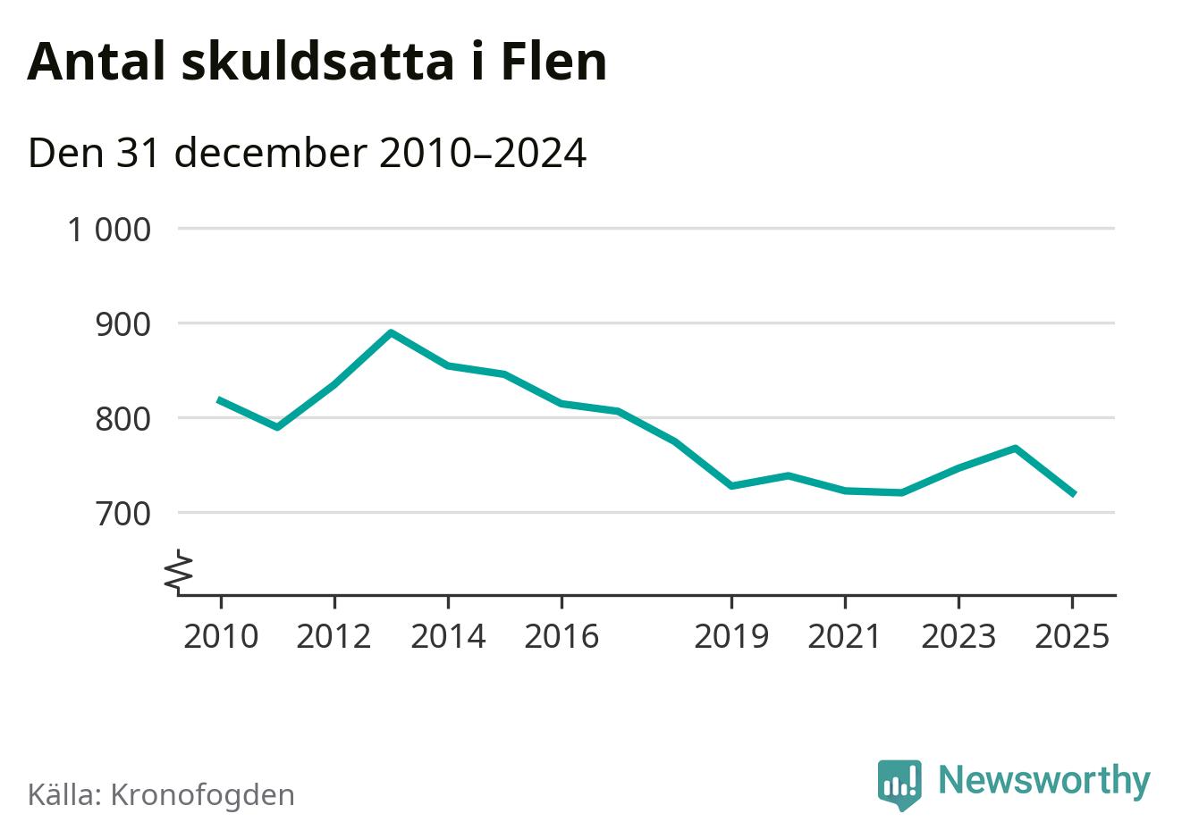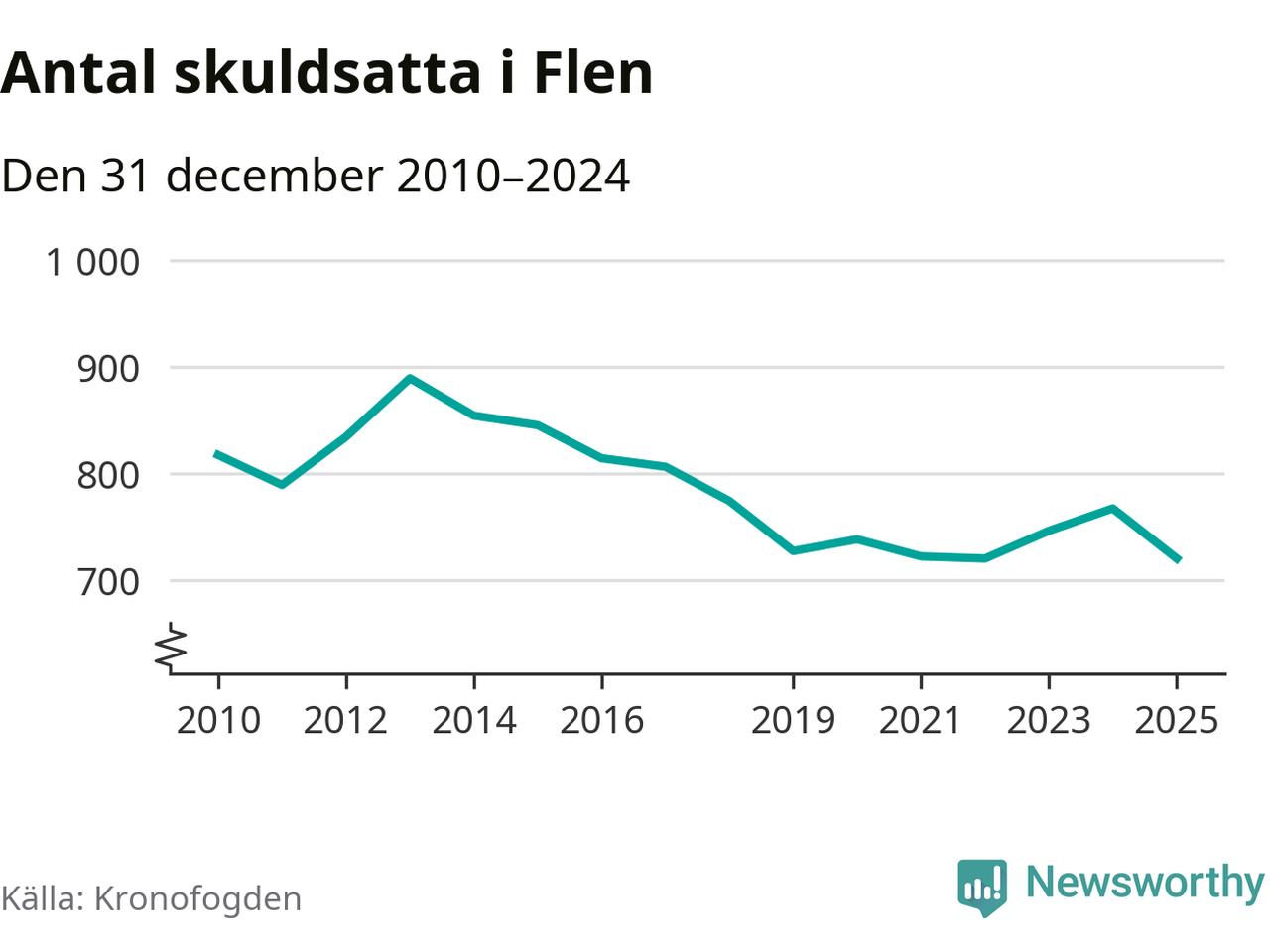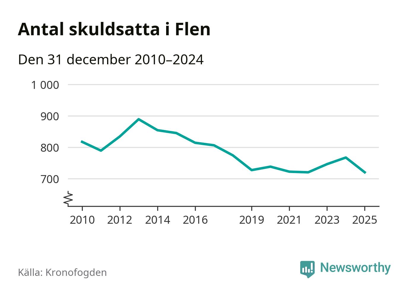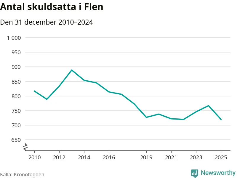 Antalet Flen­bor hos Kronofogden minskade i fjol. Vid årskiftet var 720 invånare i kommunen skyldiga totalt 198,4 miljoner kronor. Det är en minskning med 47 personer – eller 6 procent – jämfört med året innan.