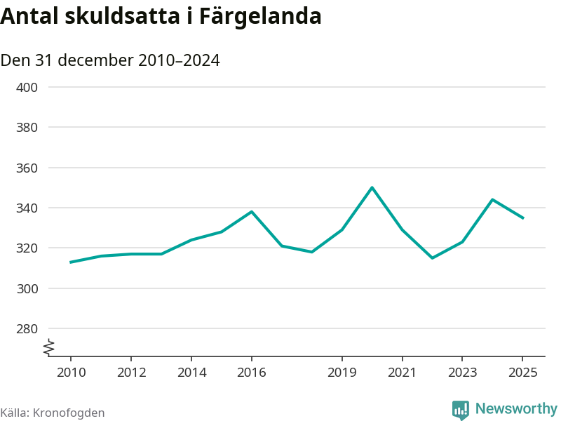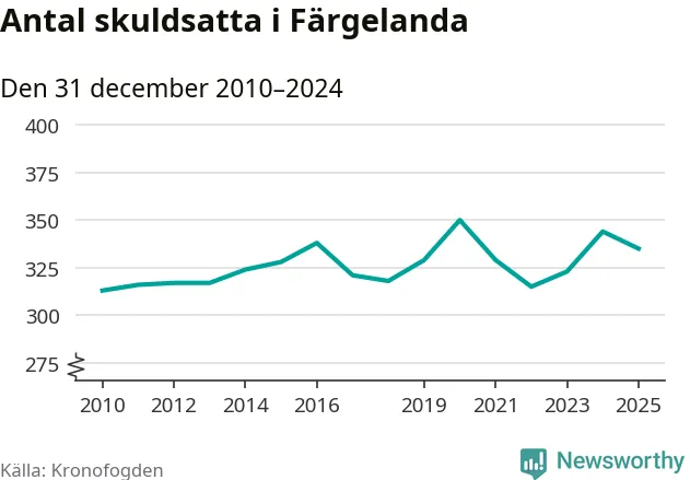 Antalet Färgelandabor hos Kronofogden minskade i fjol. Vid årskiftet var 335 invånare i kommunen skyldiga totalt 103 miljoner kronor. Det är en minskning med nio personer jämfört med året innan.