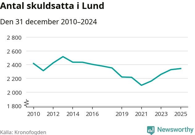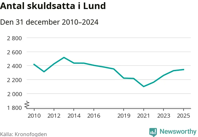 Allt fler Lundabor hamnar hos Kronofogden. Vid årskiftet var 2 344 invånare i kommunen skyldiga totalt 681,9 miljoner kronor.