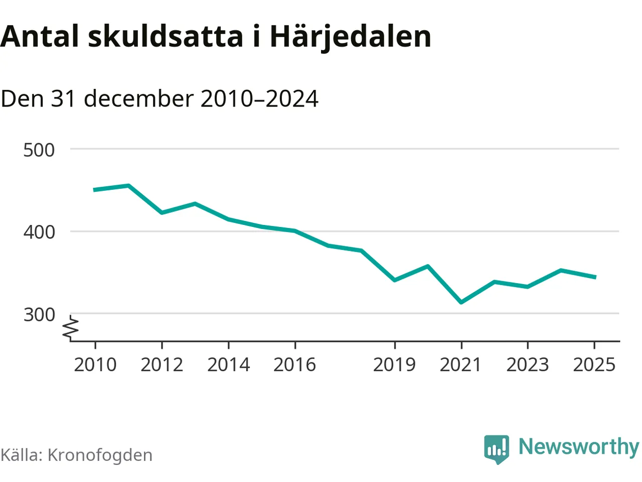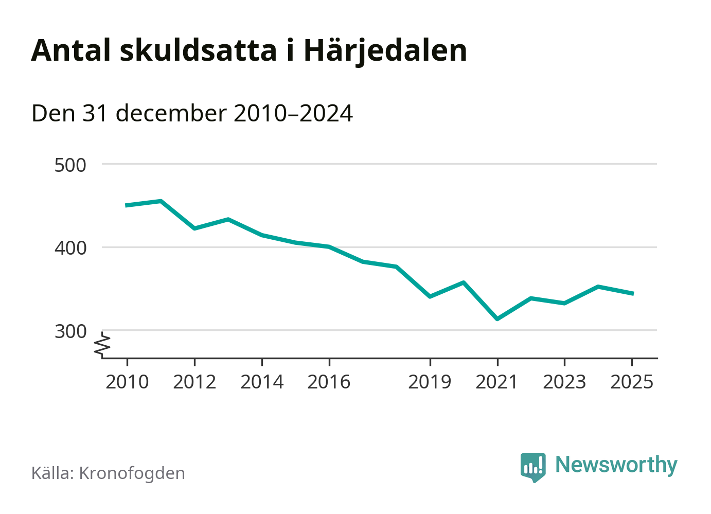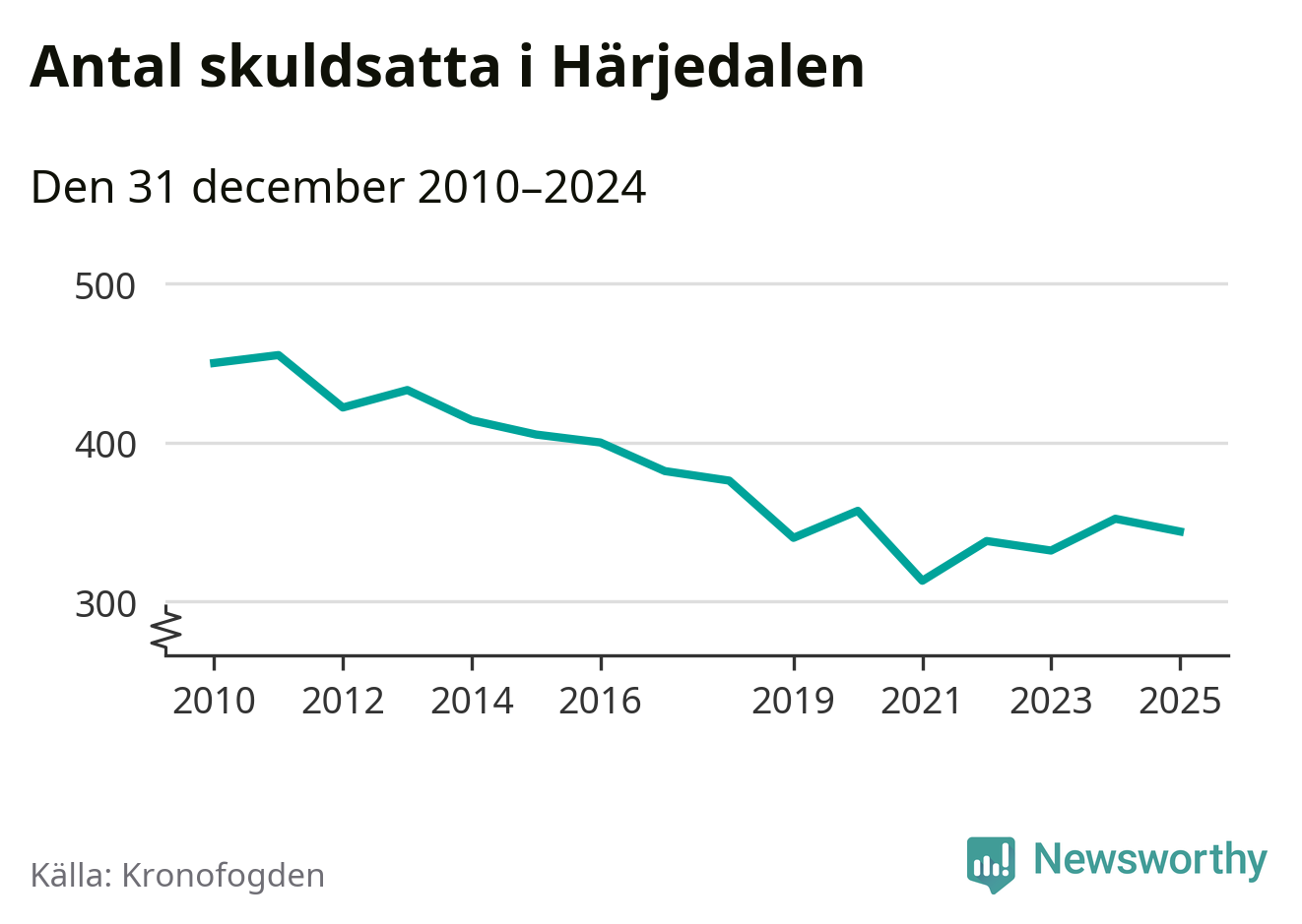 Antalet härjedalingar hos Kronofogden minskade i fjol. Vid årskiftet var 344 invånare i kommunen skyldiga totalt 73 miljoner kronor. Det är en minskning med åtta personer jämfört med året innan.