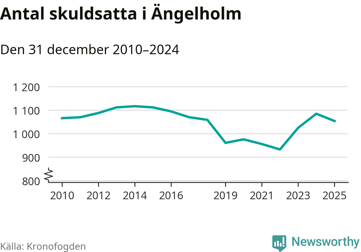 Antalet Ängelholmsbor hos Kronofogden minskade i fjol. Vid årskiftet var 1 054 invånare i kommunen skyldiga totalt 336,8 miljoner kronor. Det är en minskning med 31 personer – eller 3 procent – jämfört med året innan.