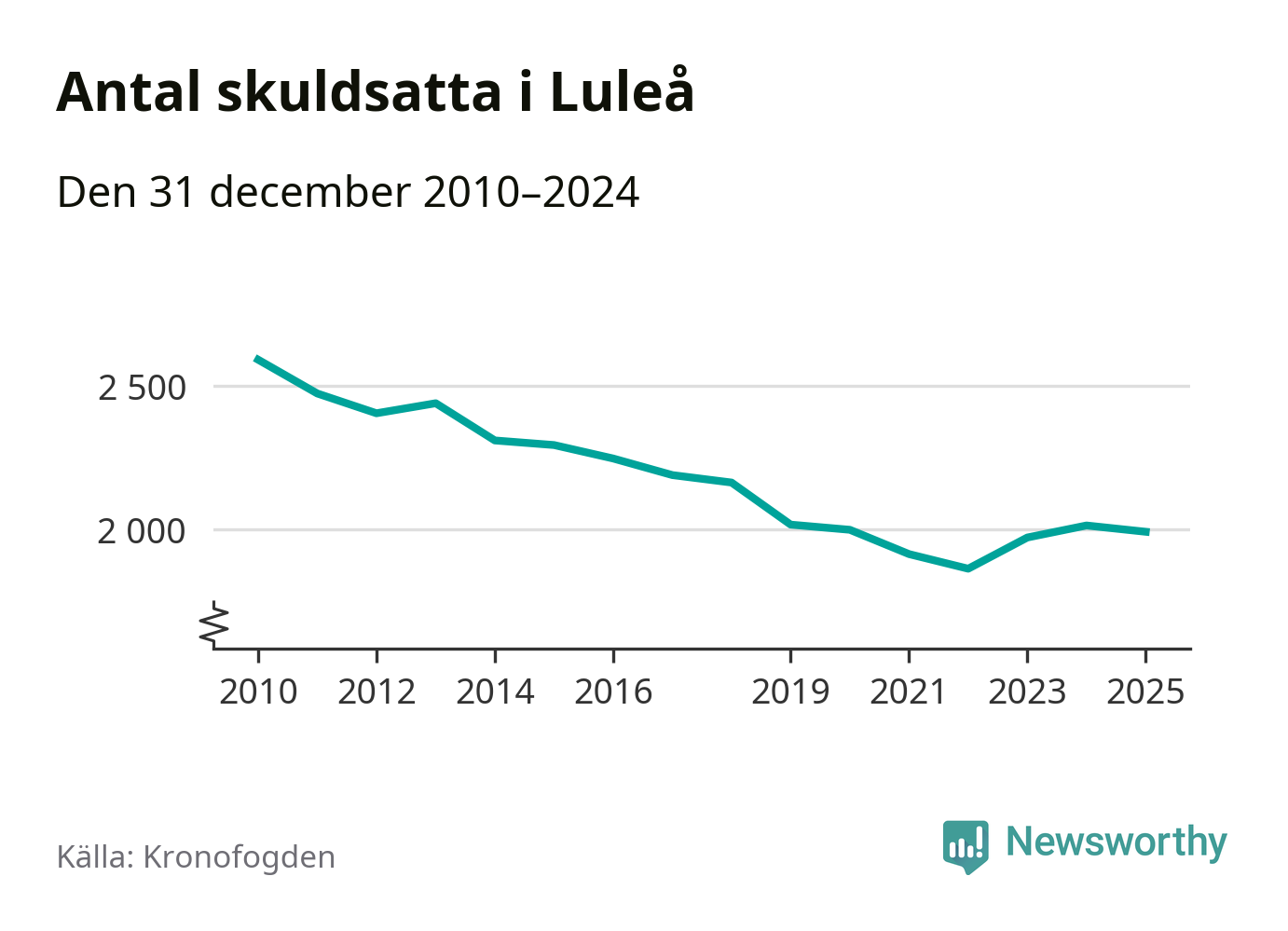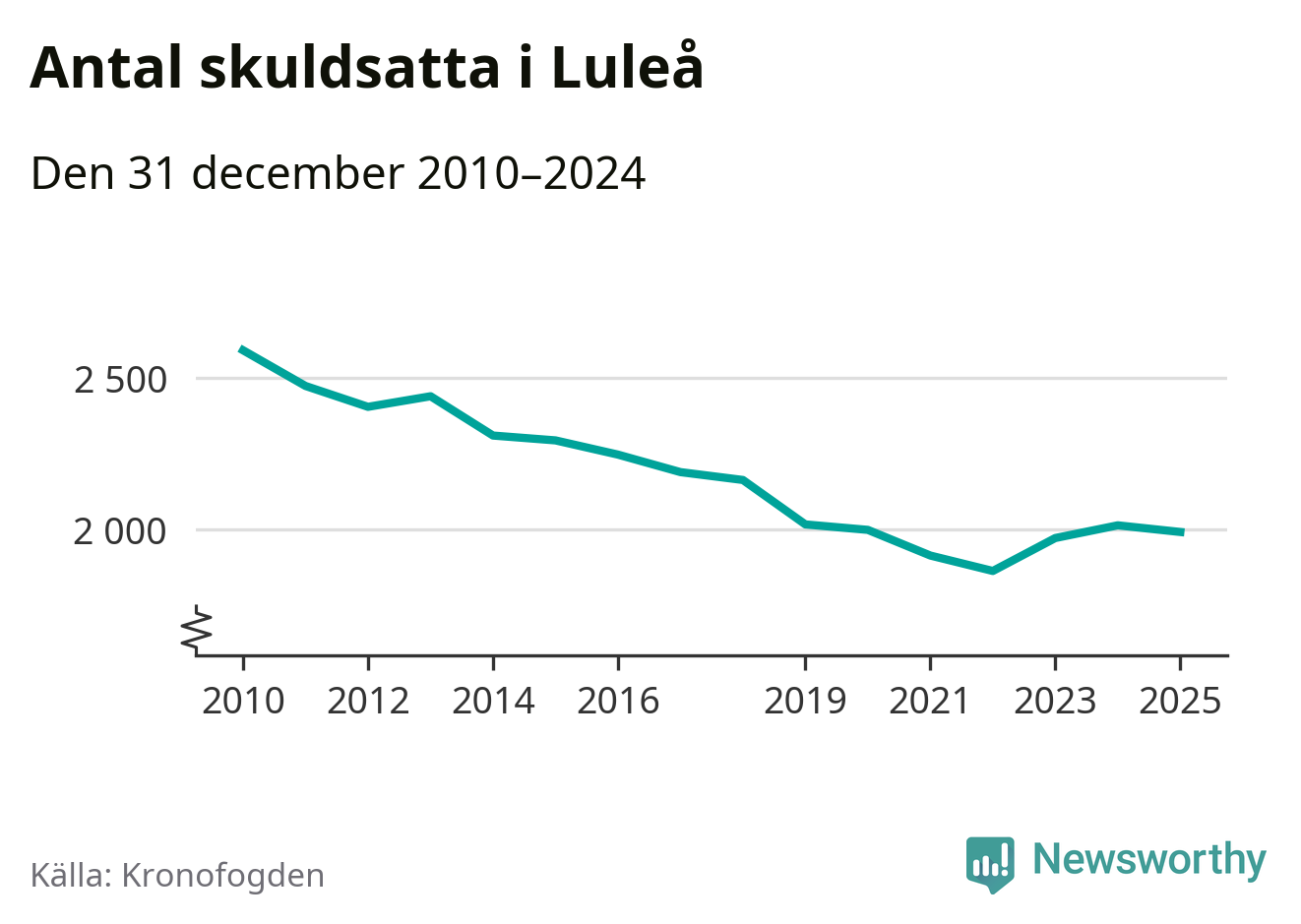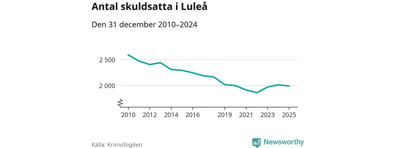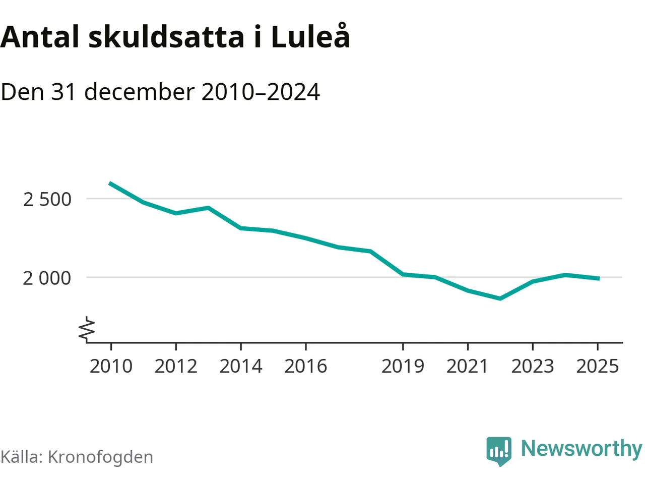 Antalet Luleåbor hos Kronofogden minskade i fjol. Vid årskiftet var 1 990 invånare i kommunen skyldiga totalt 777,5 miljoner kronor. Det är en minskning med 22 personer – eller 1 procent – jämfört med året innan.