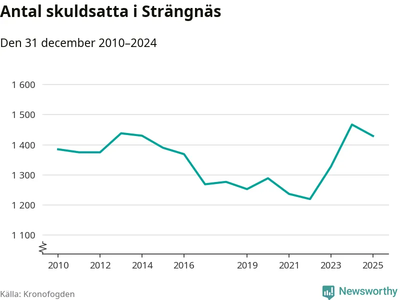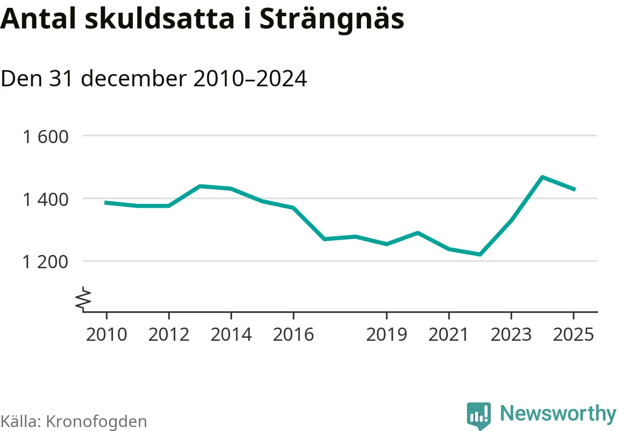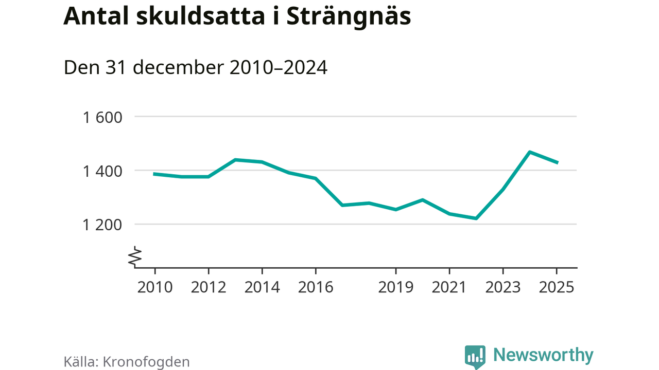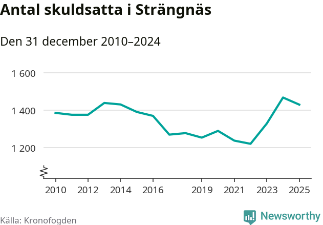 Antalet Strängnäs­bor hos Kronofogden minskade i fjol. Vid årskiftet var 1 429 invånare i kommunen skyldiga totalt 489 miljoner kronor. Det är en minskning med 38 personer – eller 3 procent – jämfört med året innan.