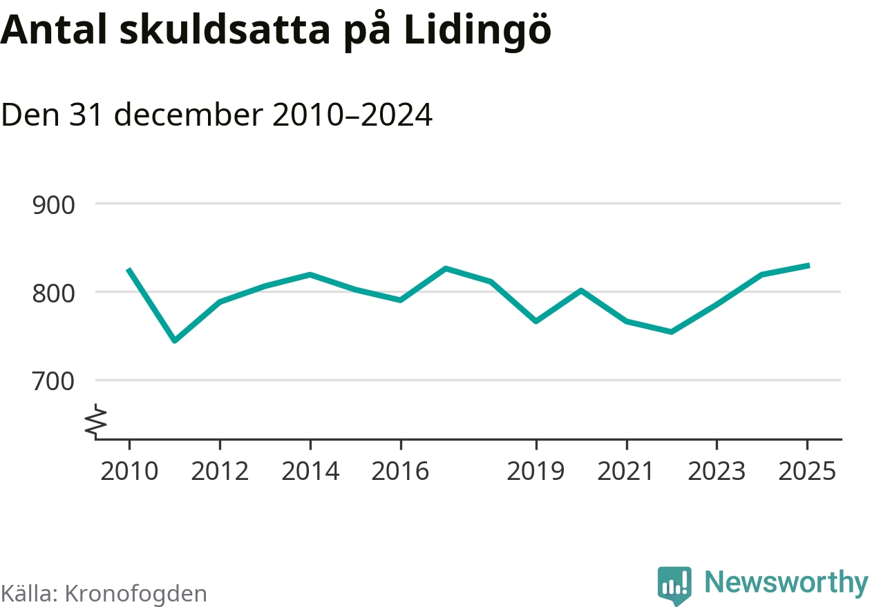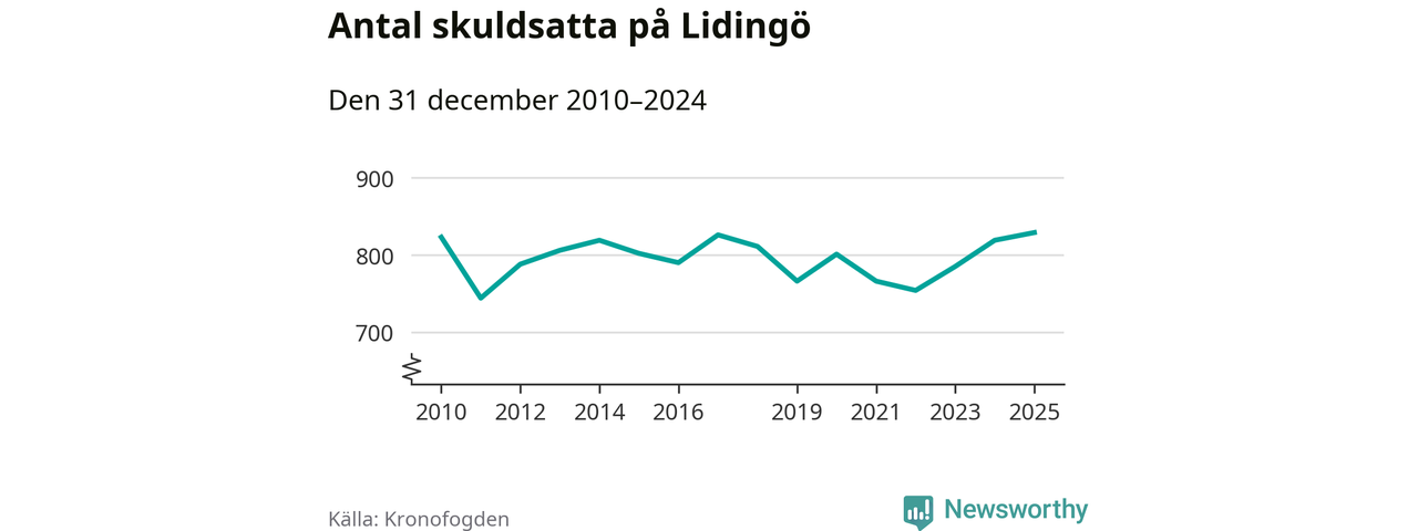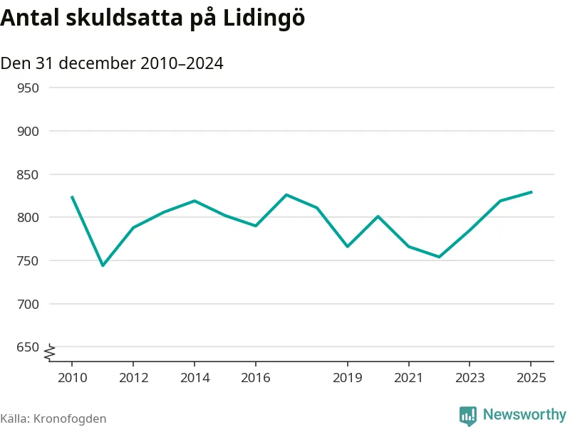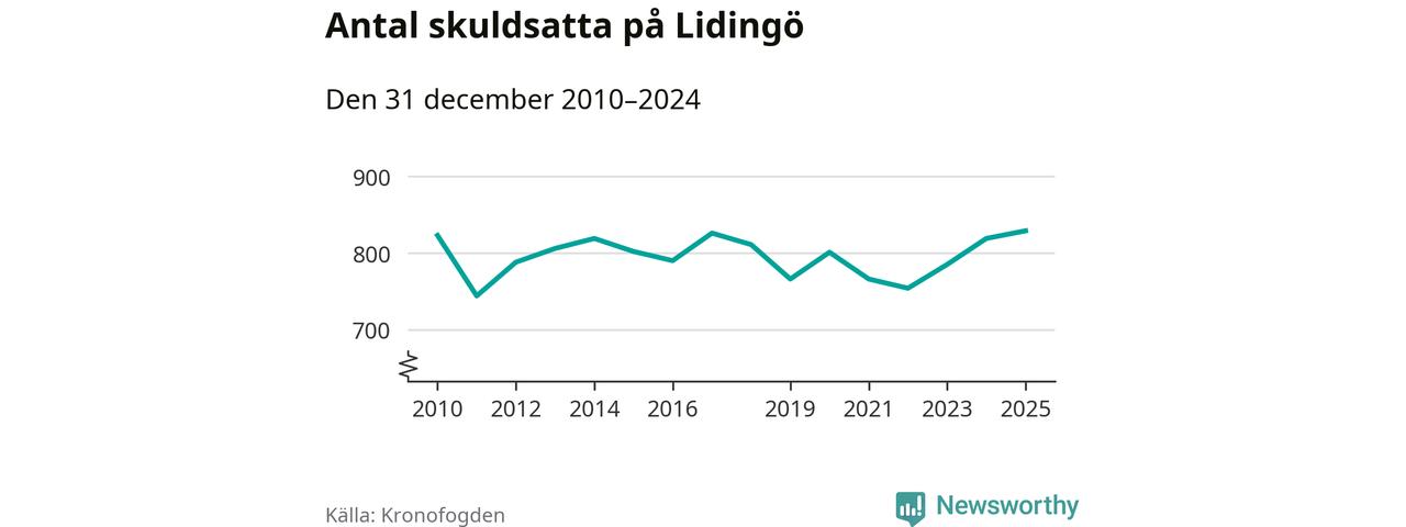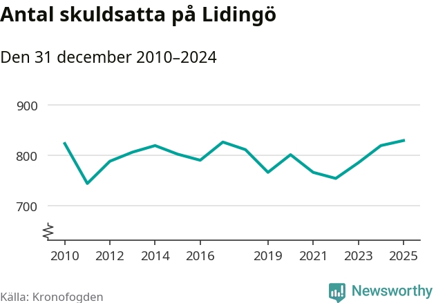 Inte sedan åtminstone 2010 har så många Lidingöbor hamnat hos Kronofogden. Vid årskiftet var 829 invånare i kommunen skyldiga totalt 845,4 miljoner kronor. Det är en ökning med tio personer jämfört med året innan.
