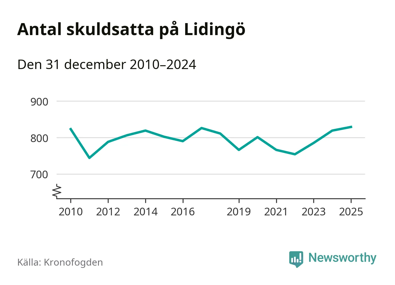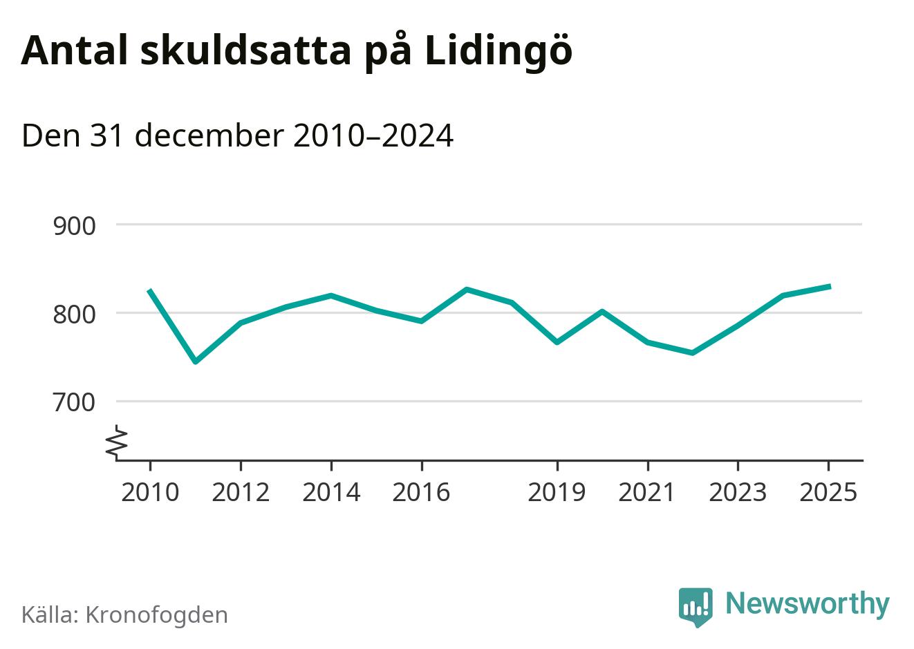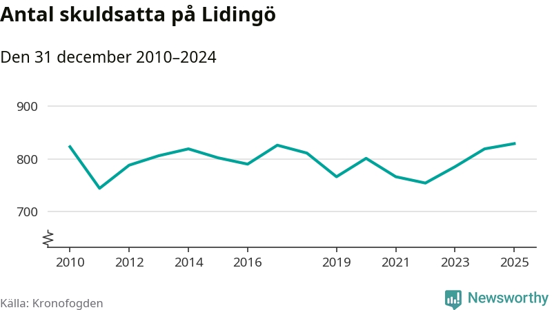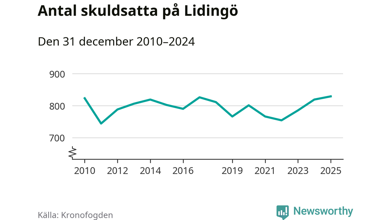 Inte sedan åtminstone 2010 har så många Lidingöbor hamnat hos Kronofogden. Vid årskiftet var 829 invånare i kommunen skyldiga totalt 845,4 miljoner kronor. Det är en ökning med tio personer jämfört med året innan.