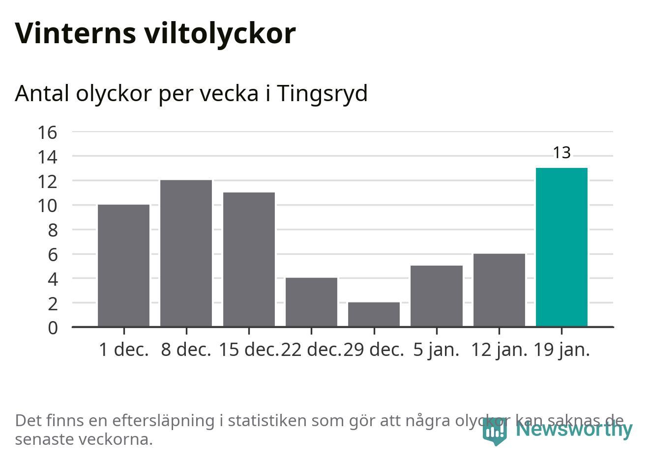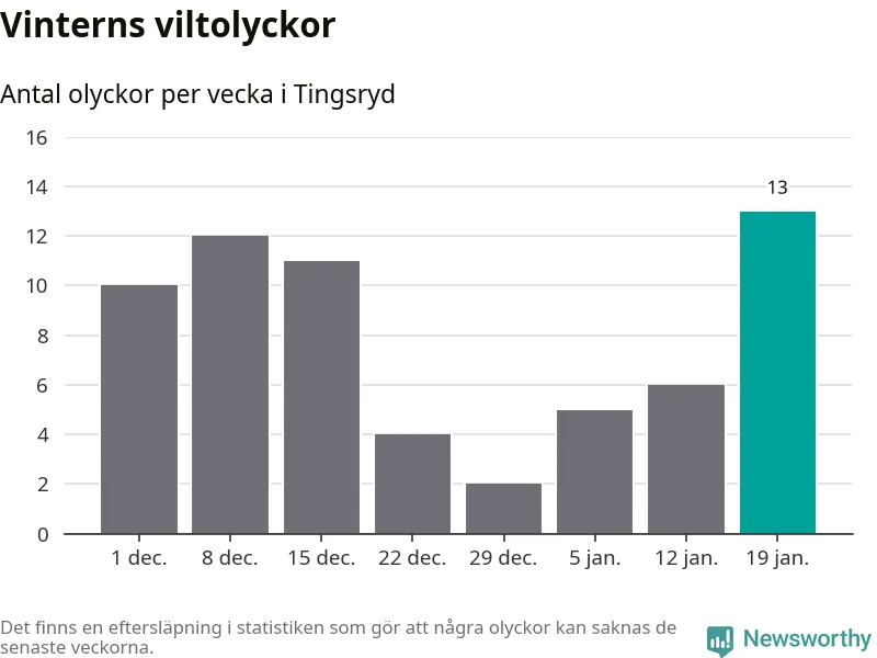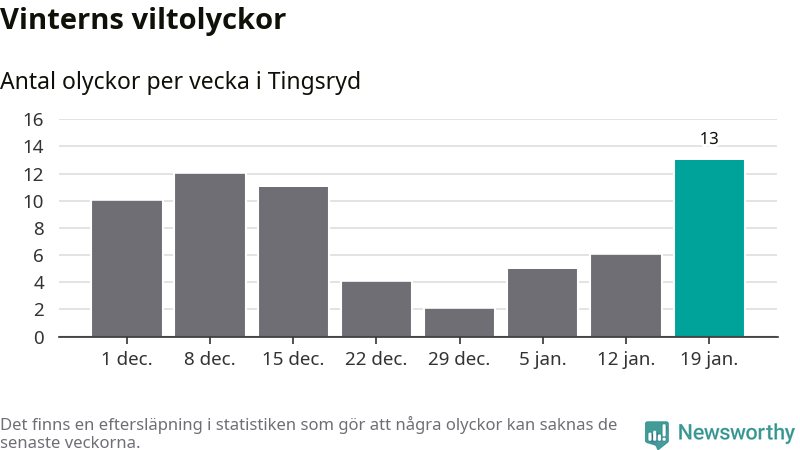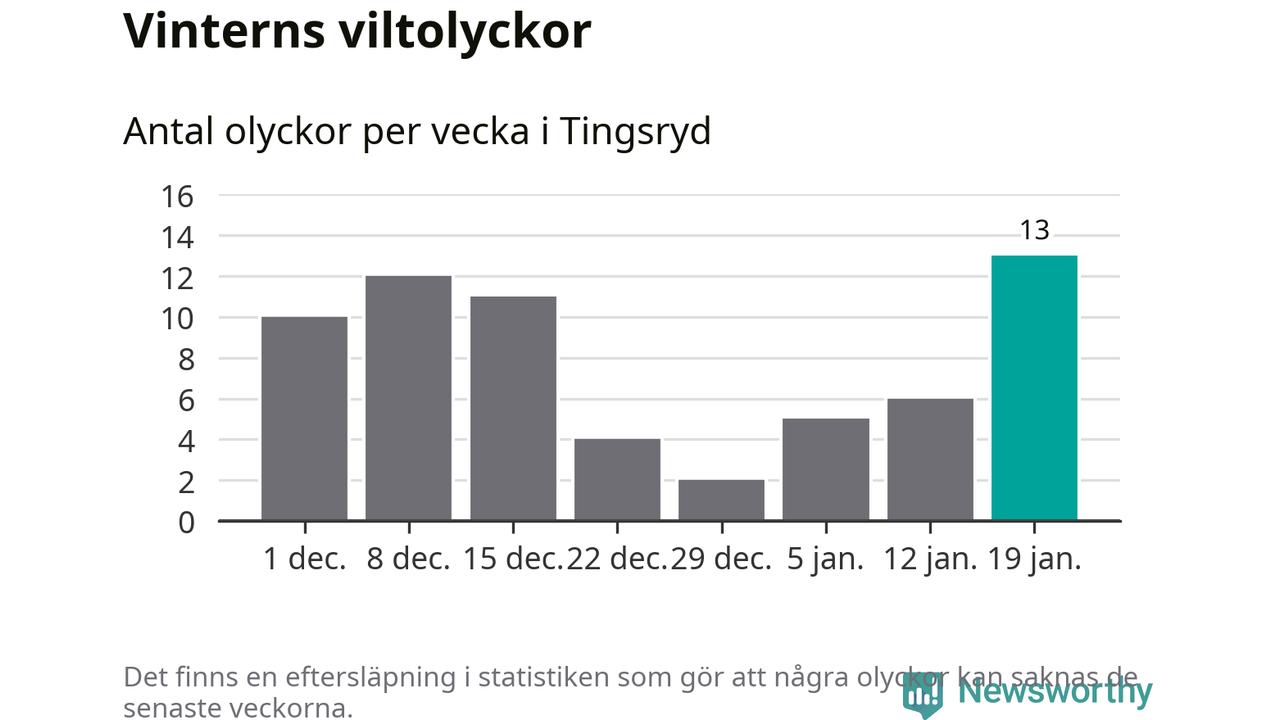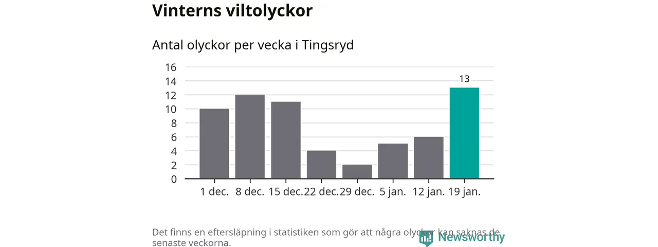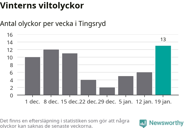 Under vecka 4 rapporterades 13 viltolyckor in i Tingsryds kommun. Det är det största antalet på en vecka den här vintern.