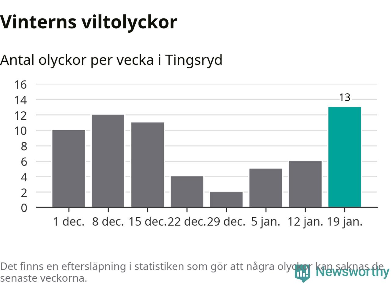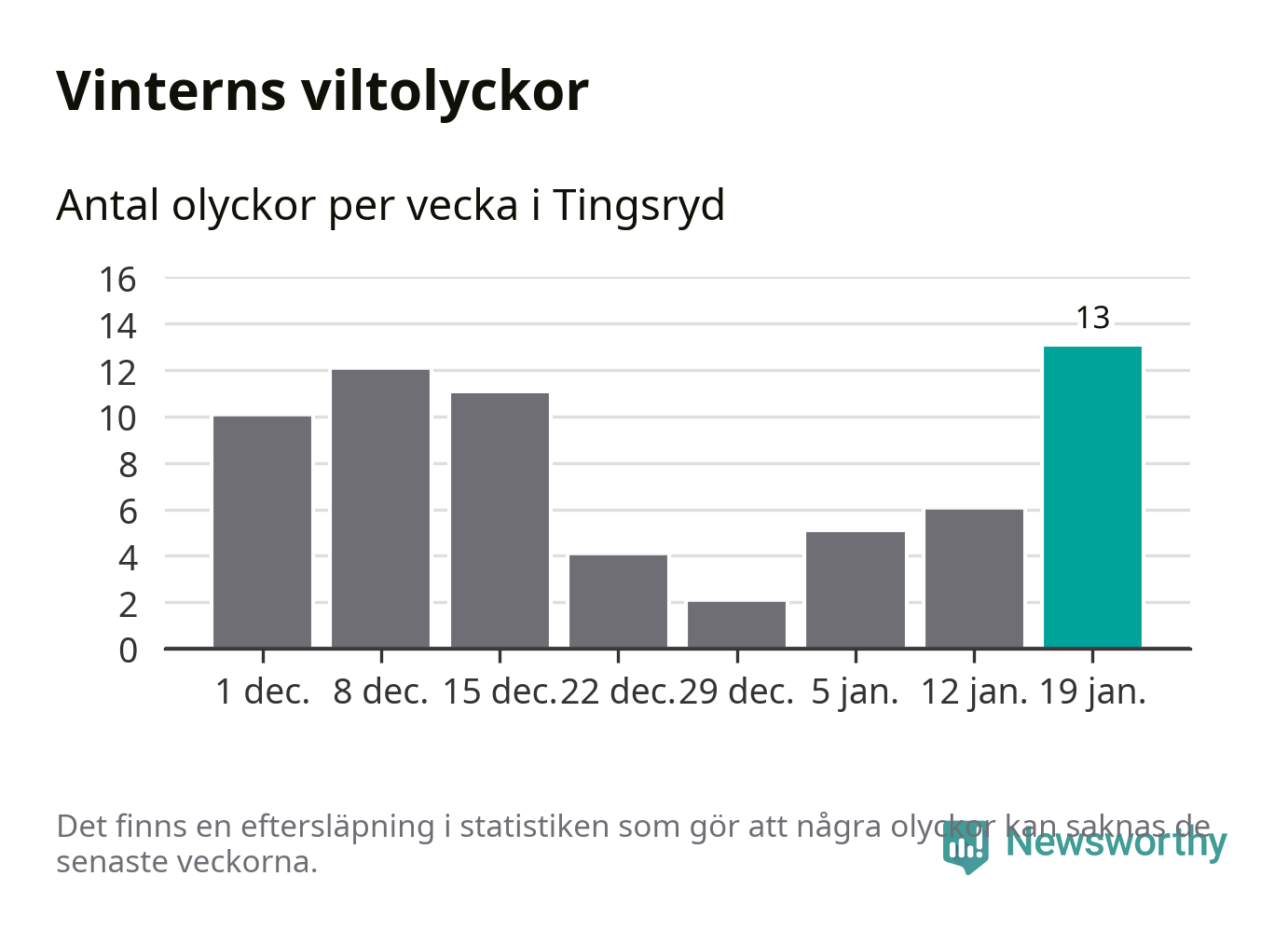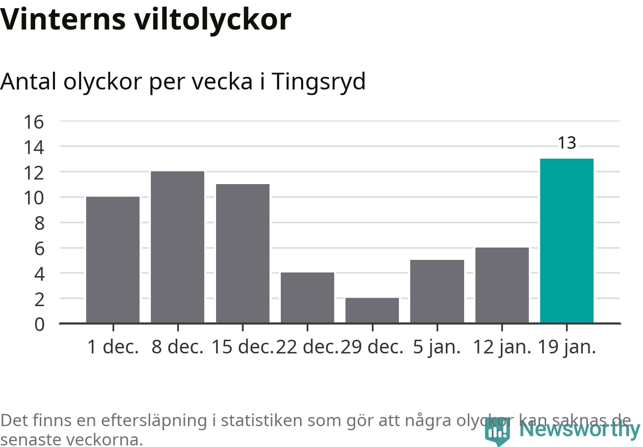 Under vecka 4 rapporterades 13 viltolyckor in i Tingsryds kommun. Det är det största antalet på en vecka den här vintern.