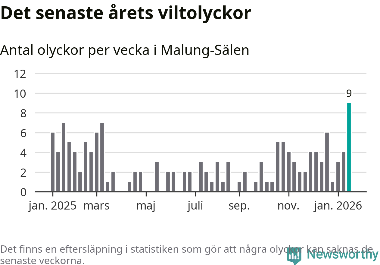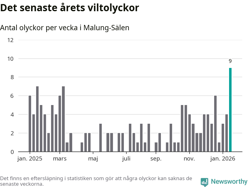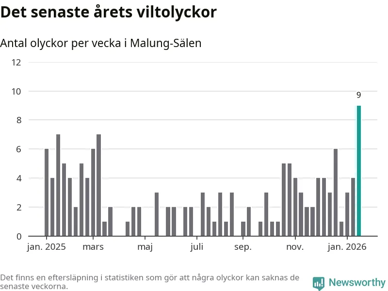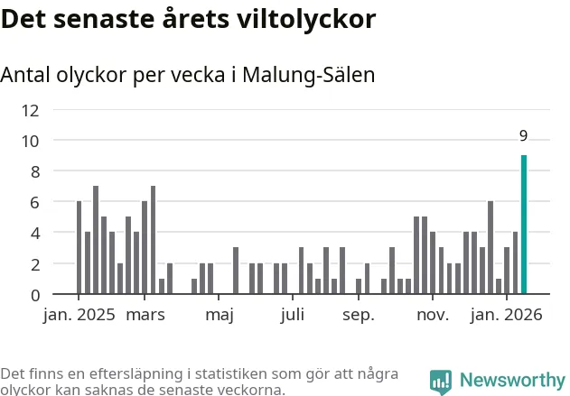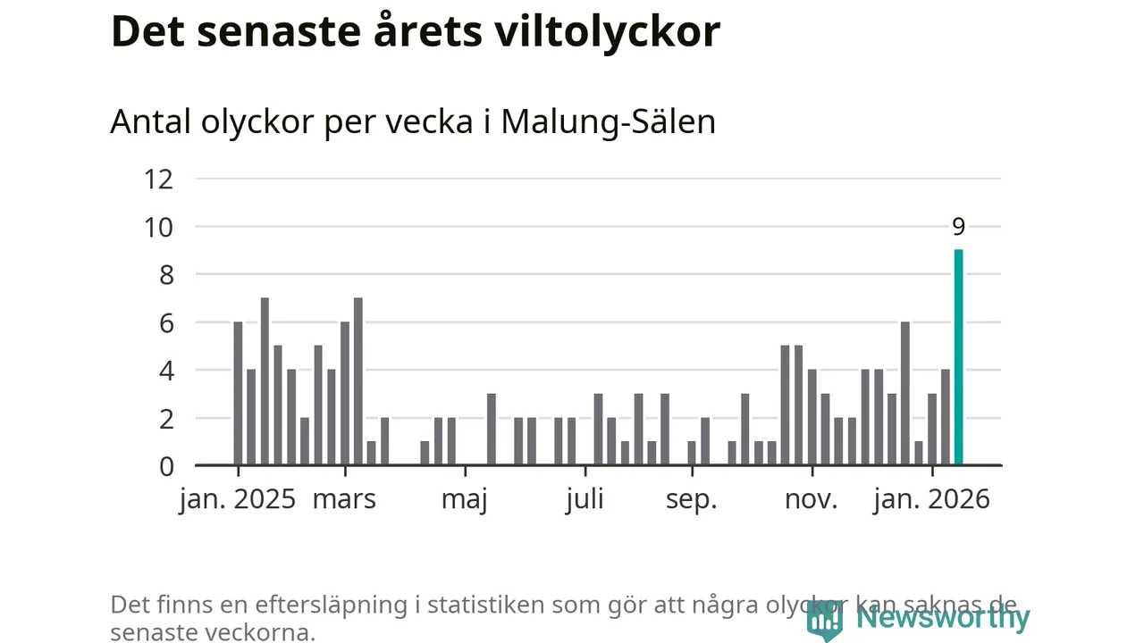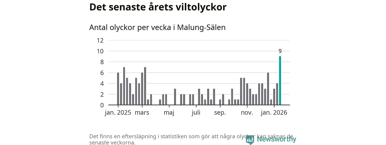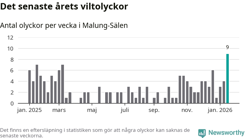 Hittills har nio viltolyckor rapporterats in i Malung-Sälens kommun från vecka 4. Det är en av de högsta siffrorna för en enskild vecka på över tio år.