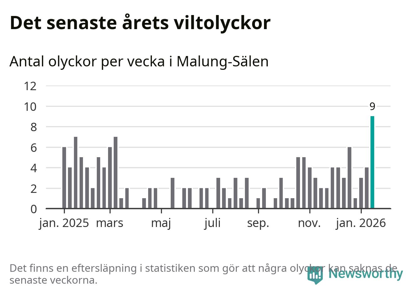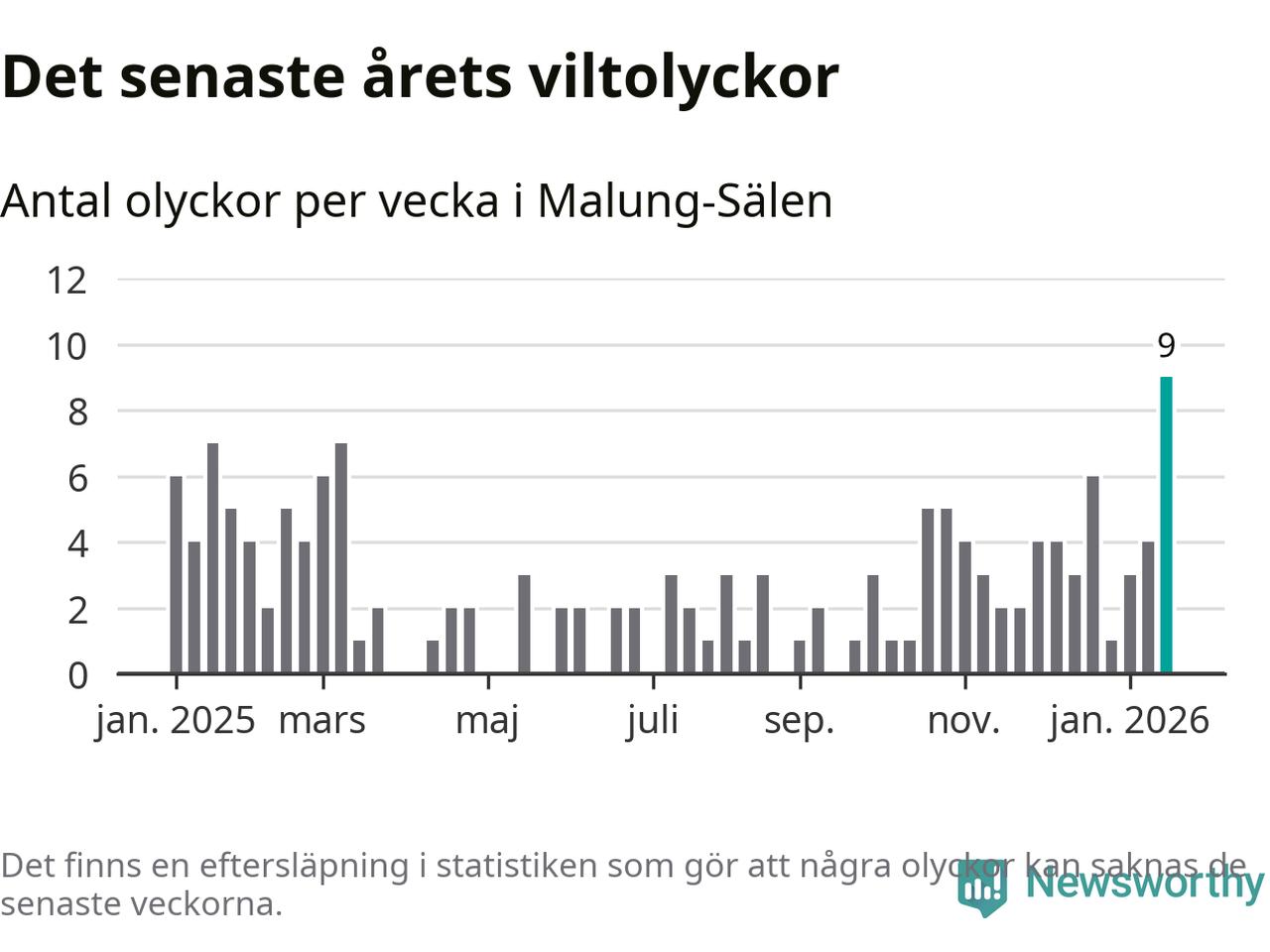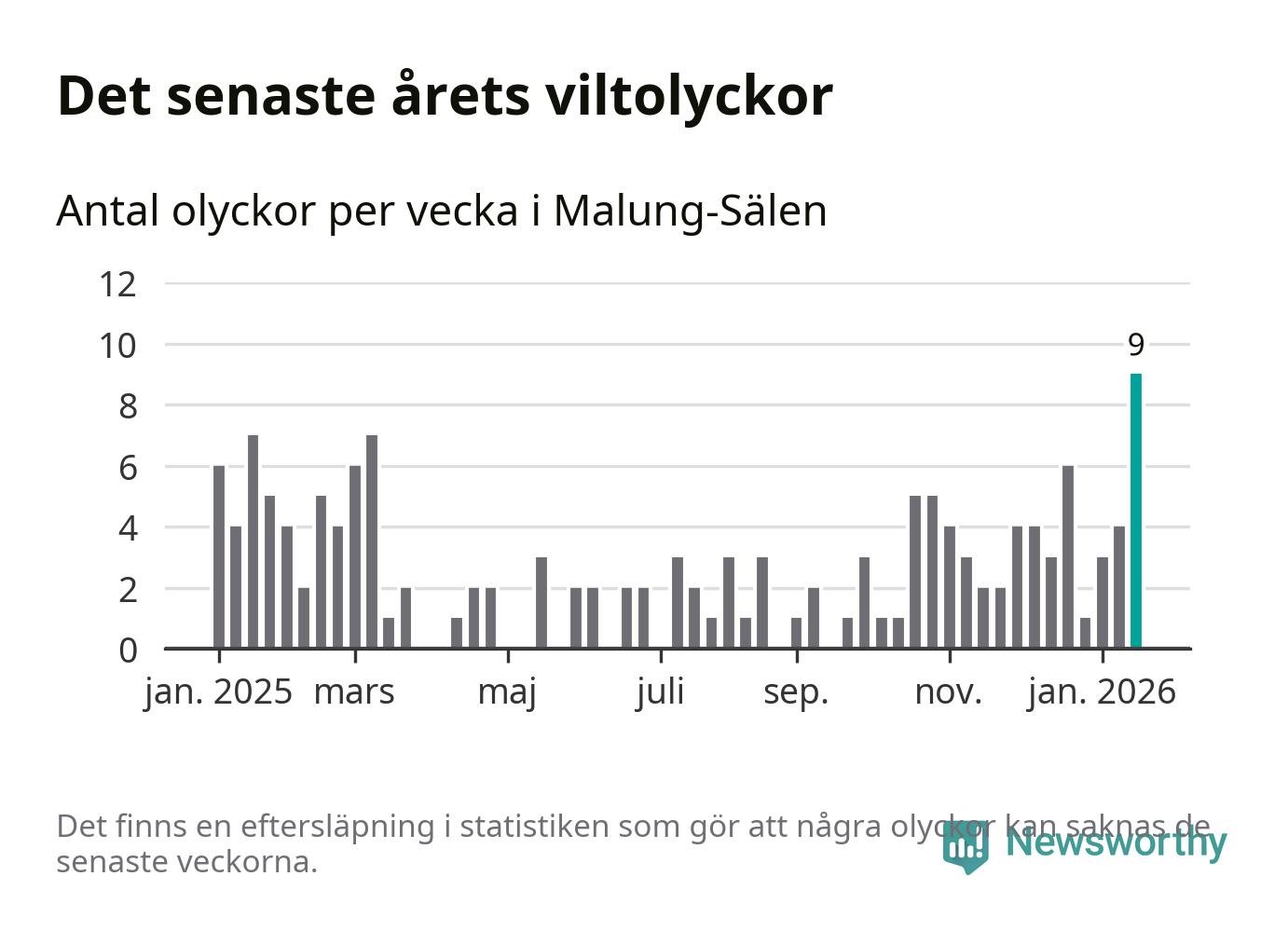 Hittills har nio viltolyckor rapporterats in i Malung-Sälens kommun från vecka 4. Det är en av de högsta siffrorna för en enskild vecka på över tio år.