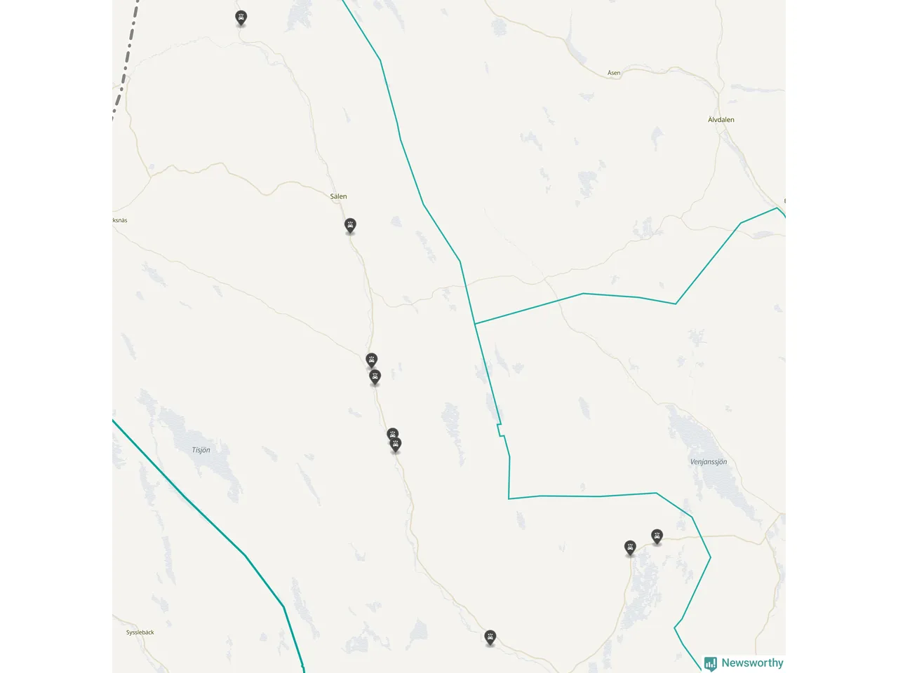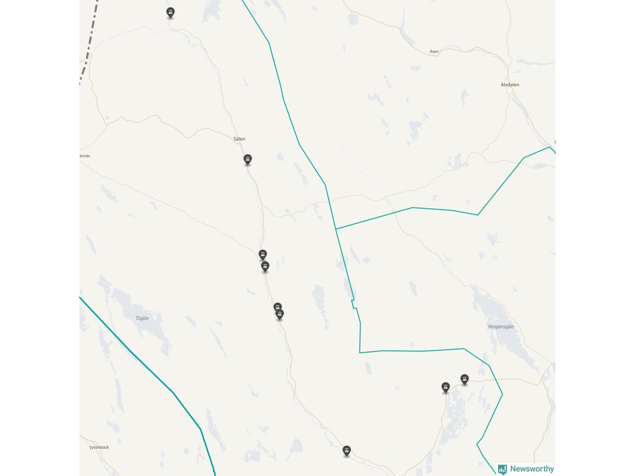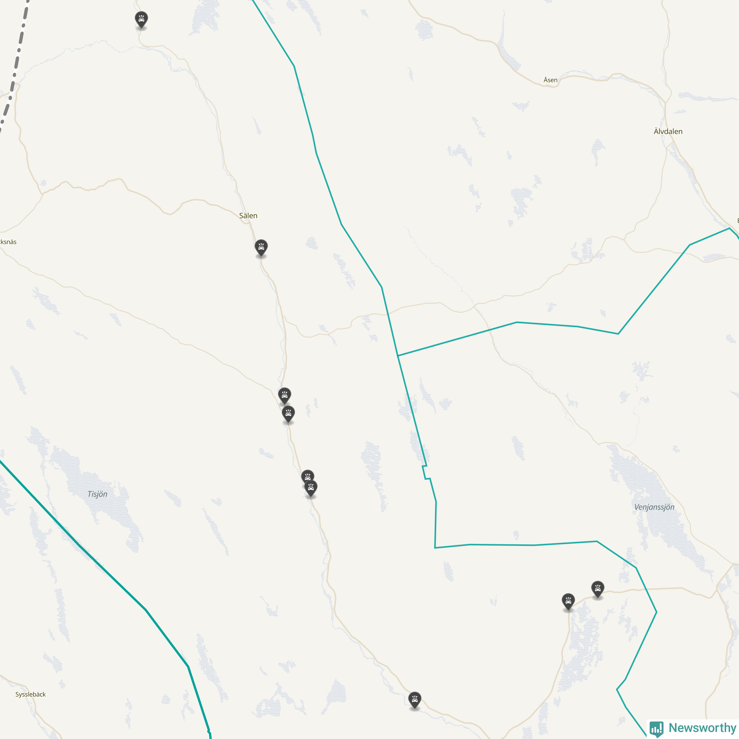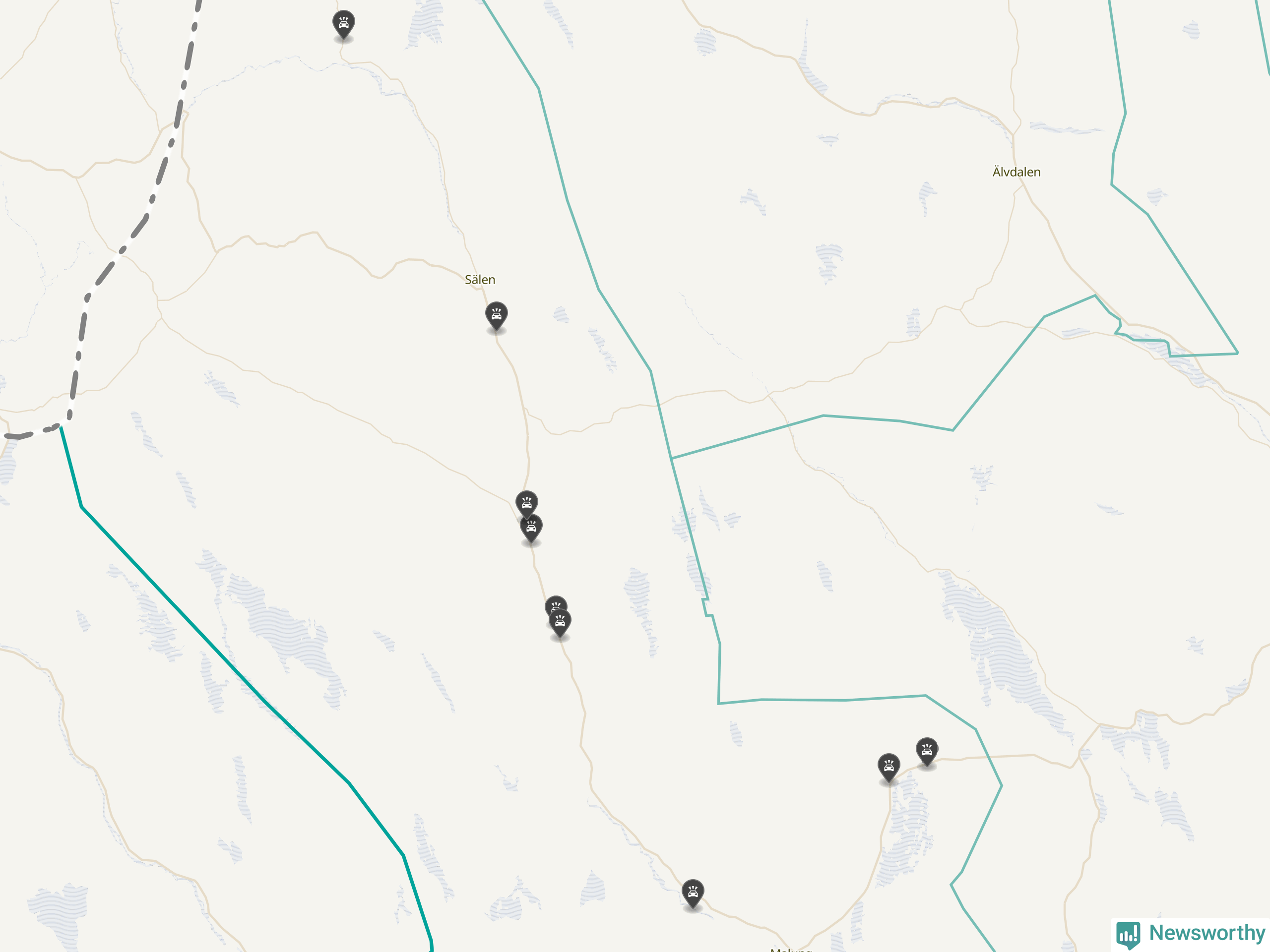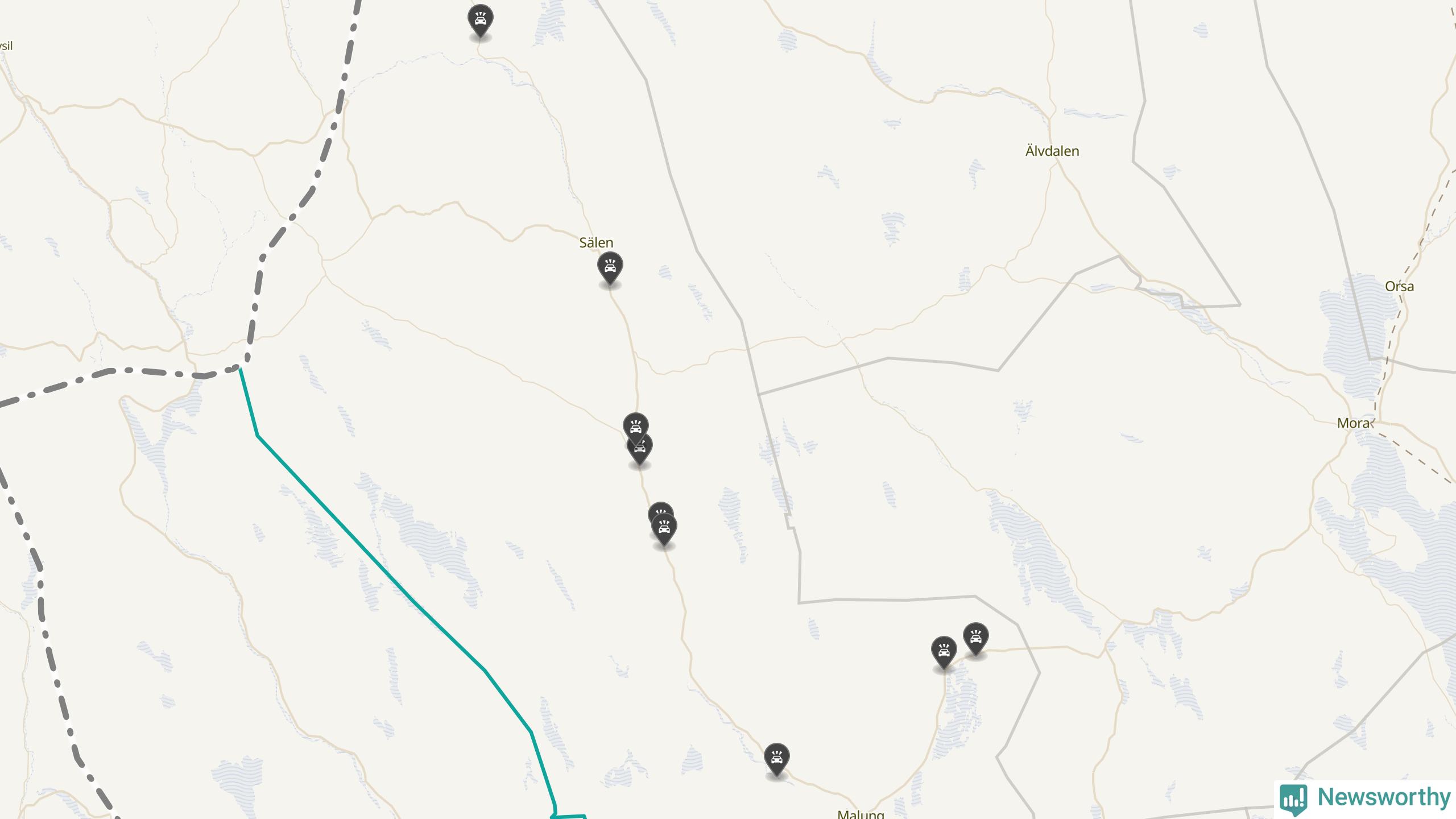 Karta över viltolyckor i Malung-Sälens kommun