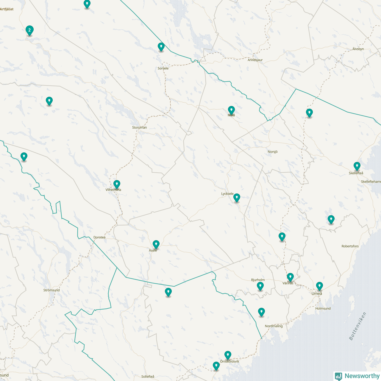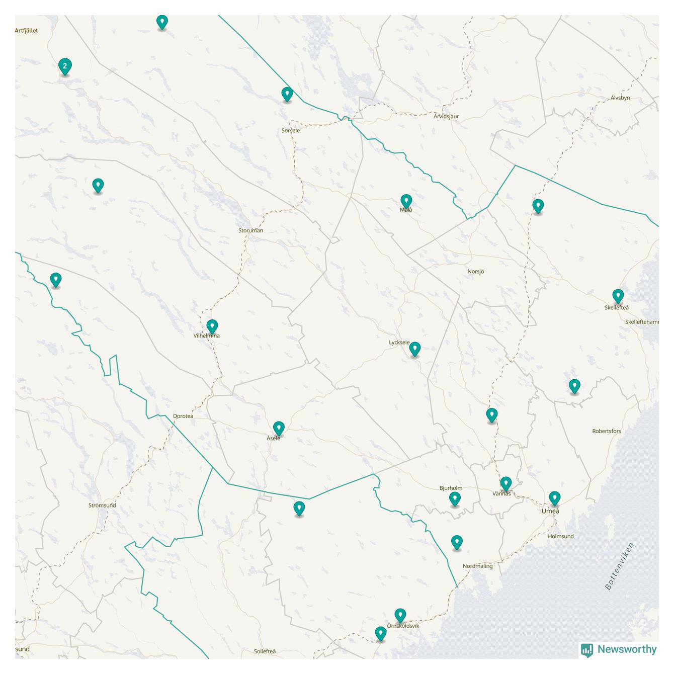 Karta över Nordmalings kommun
