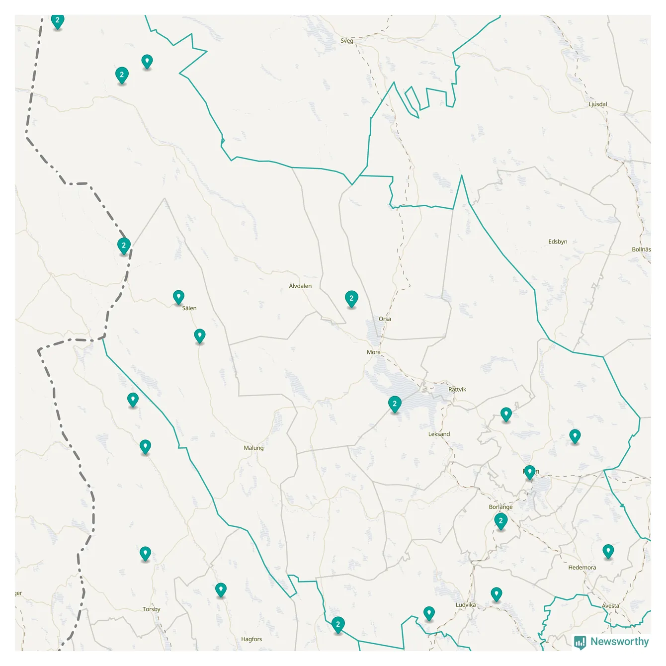 Karta över Malung-Sälens kommun
