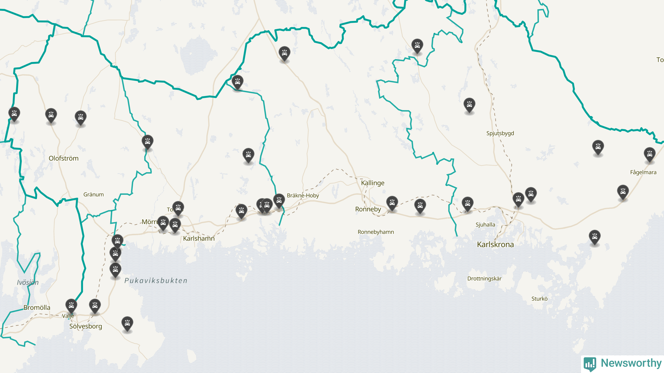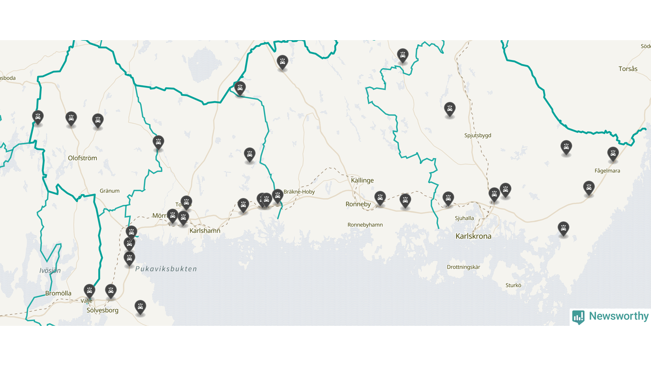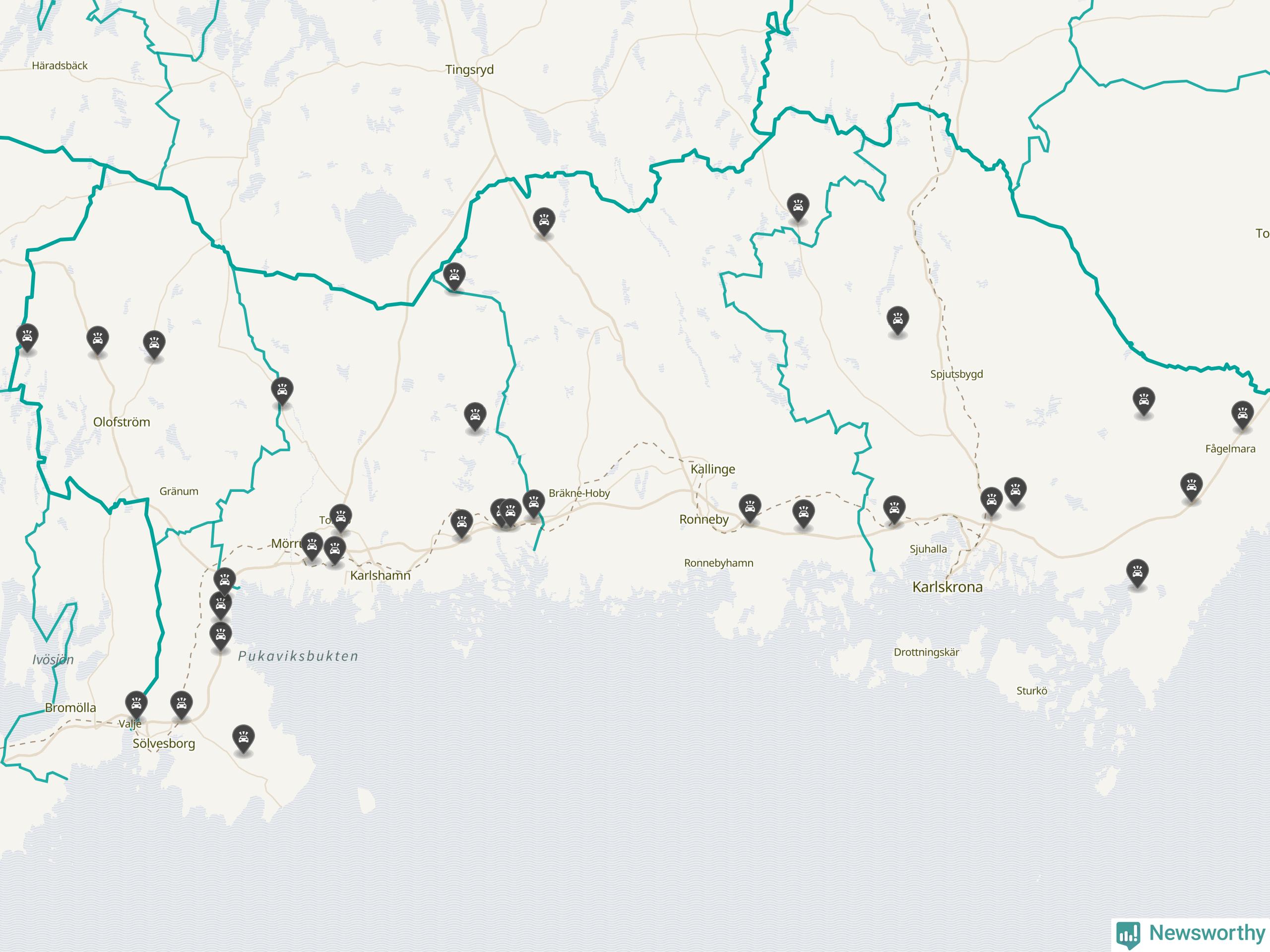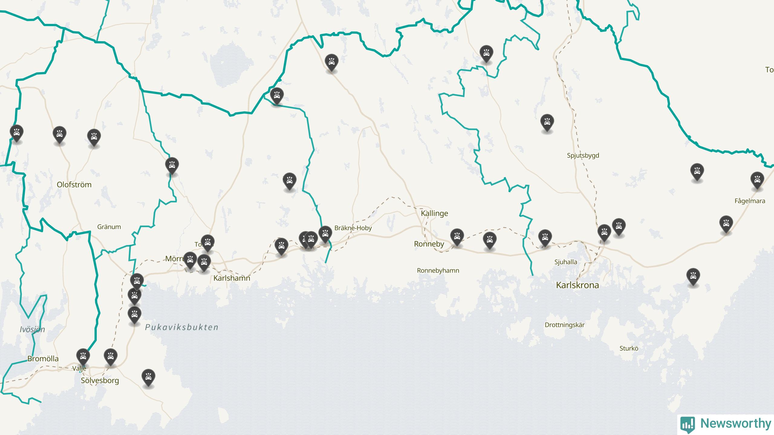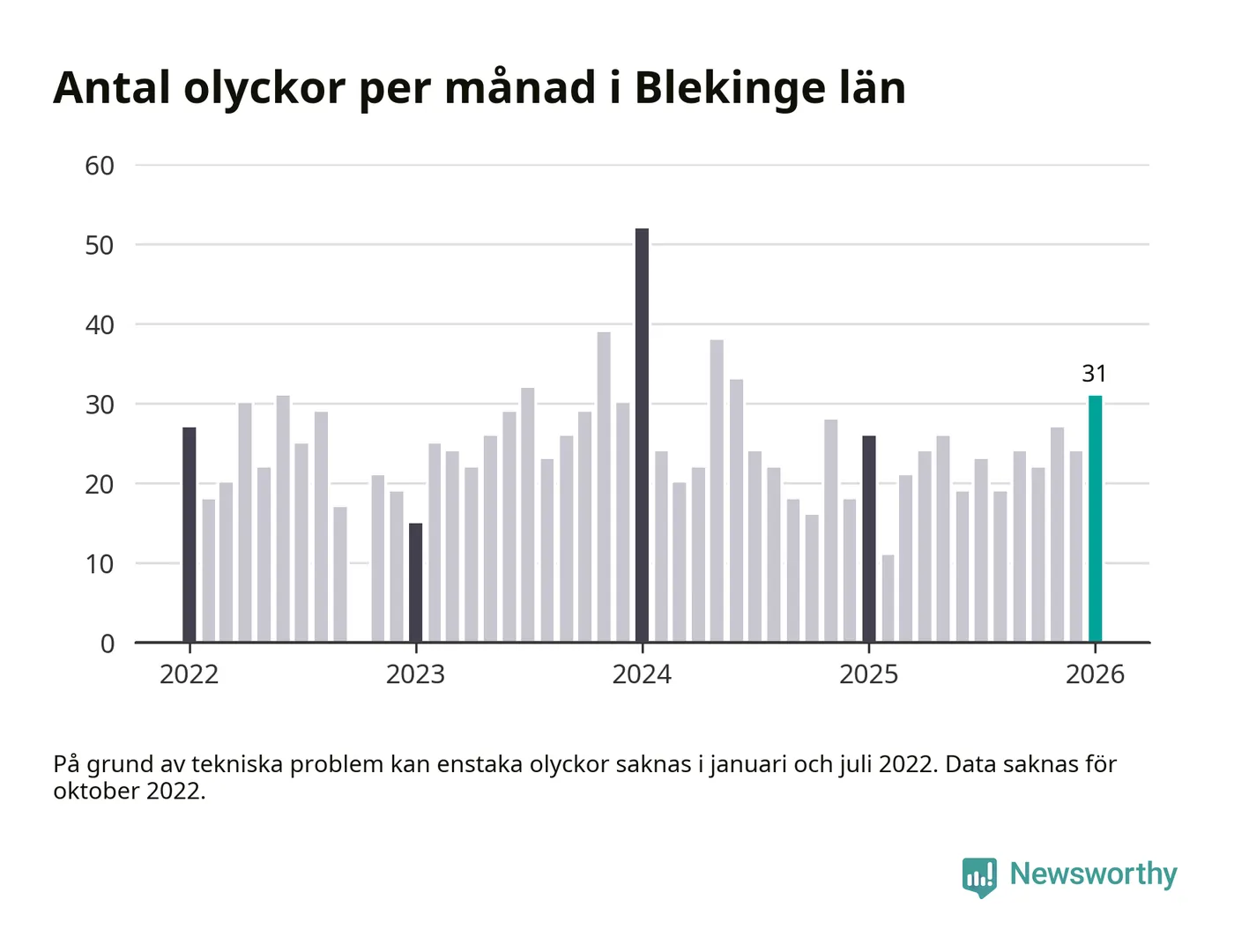 I Blekinge län var trafikolyckorna fler än under samma månad i fjol: 31 olyckor längs de stora vägarna i länet. Det visar data från Trafikverket som Newsworthy sammanställt.