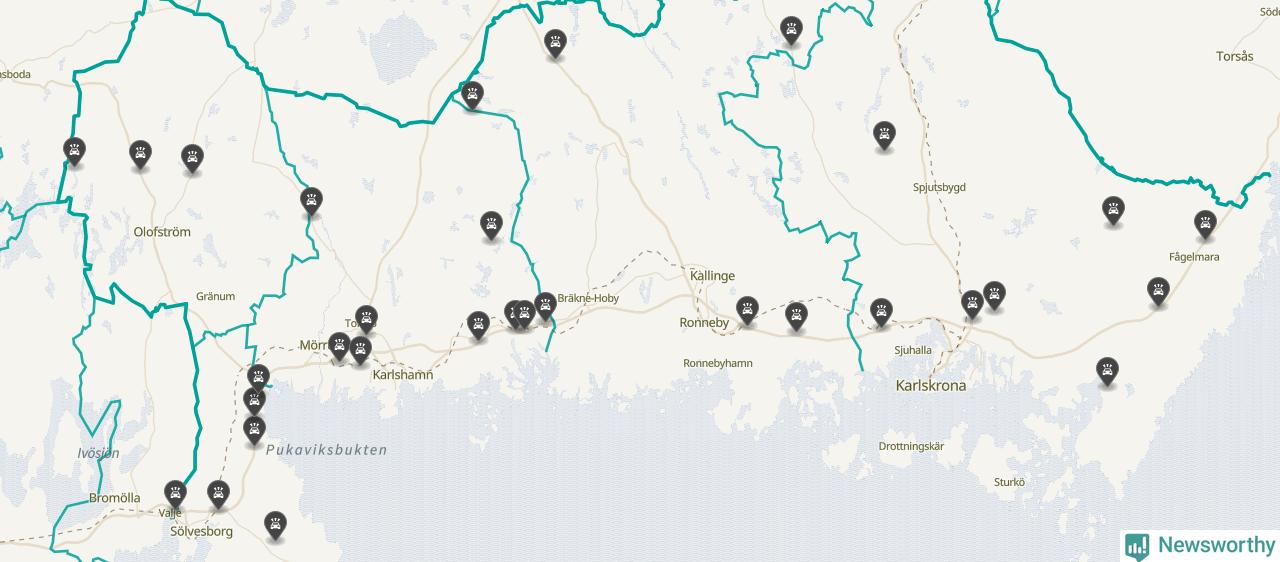 Karta över Blekinge län