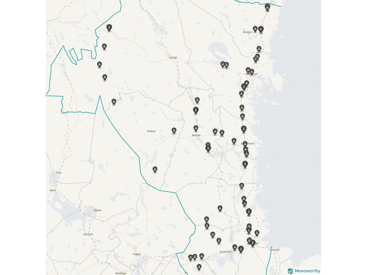 Karta över Gävleborgs län
