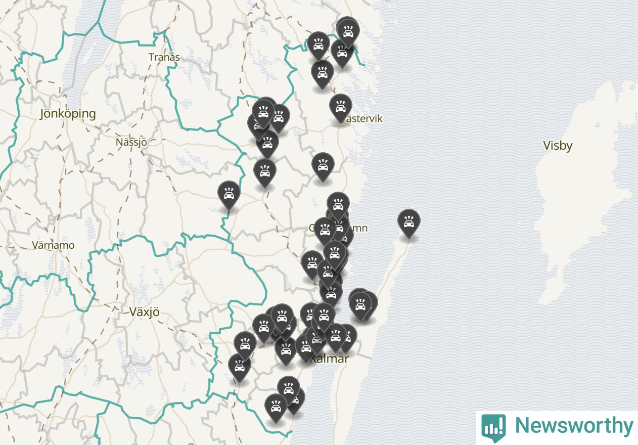 I Kalmar län rapporterades 55 längs de stora vägarna i länet under januari, visar data från Trafikverket som Newsworthy sammanställt.