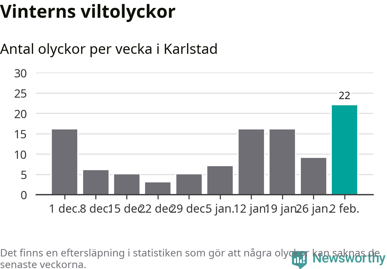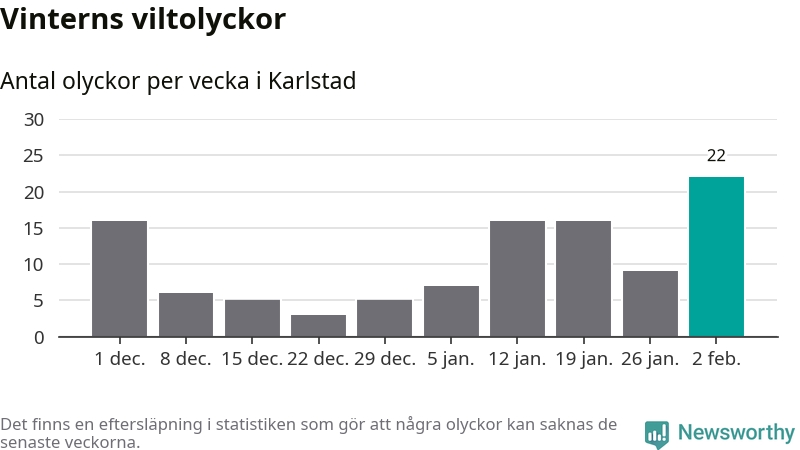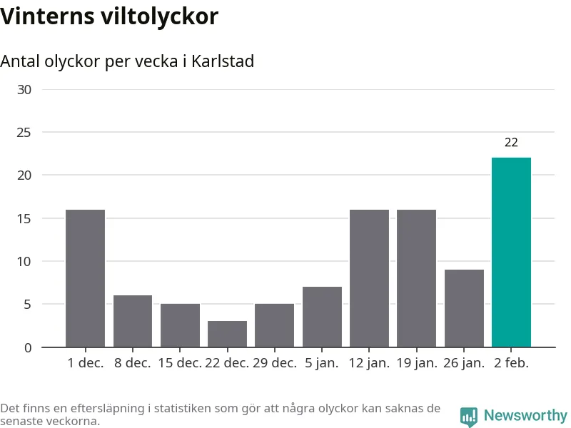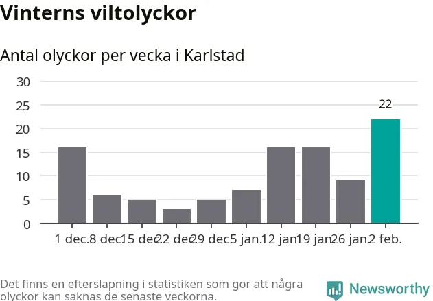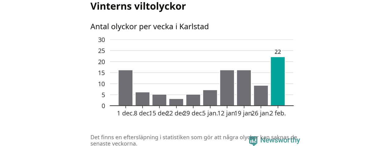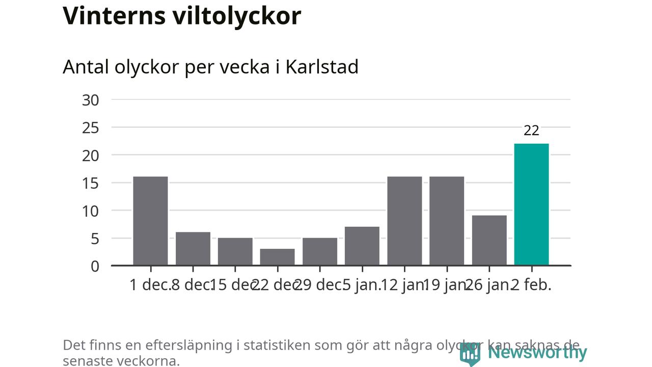Under vecka 6 rapporterades 22 viltolyckor in i Karlstads kommun. Det är det största antalet på en vecka den här vintern.