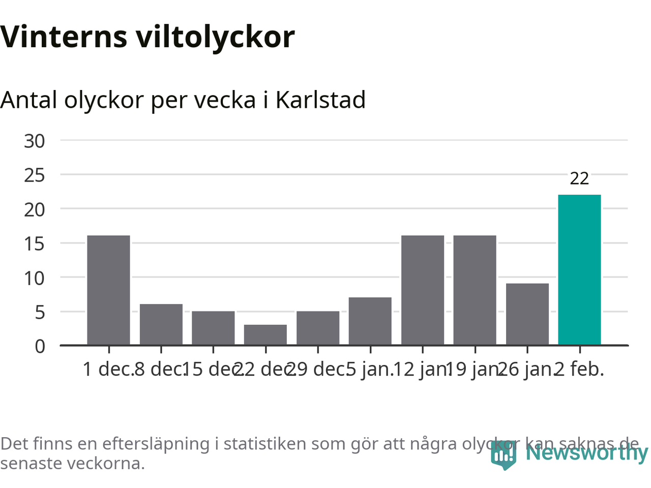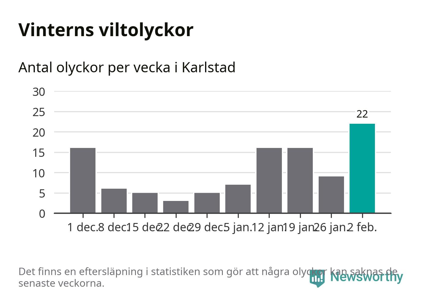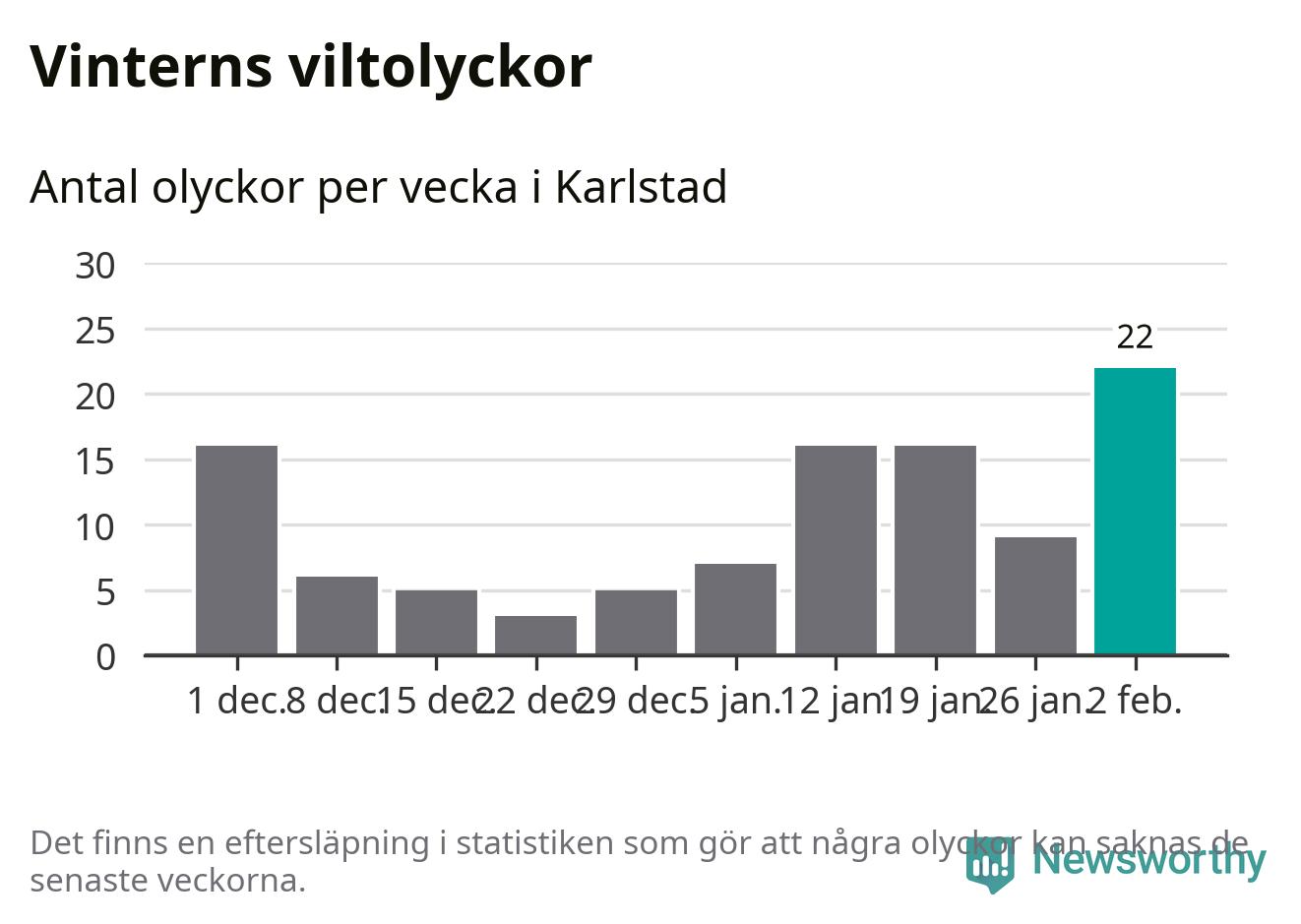 Under vecka 6 rapporterades 22 viltolyckor in i Karlstads kommun. Det är det största antalet på en vecka den här vintern.