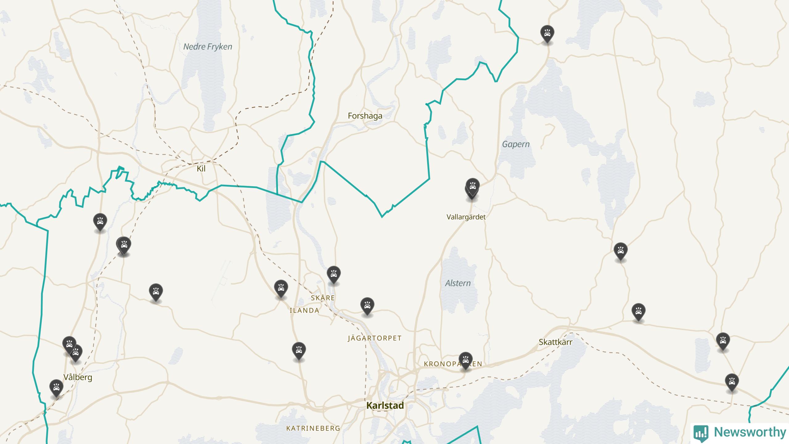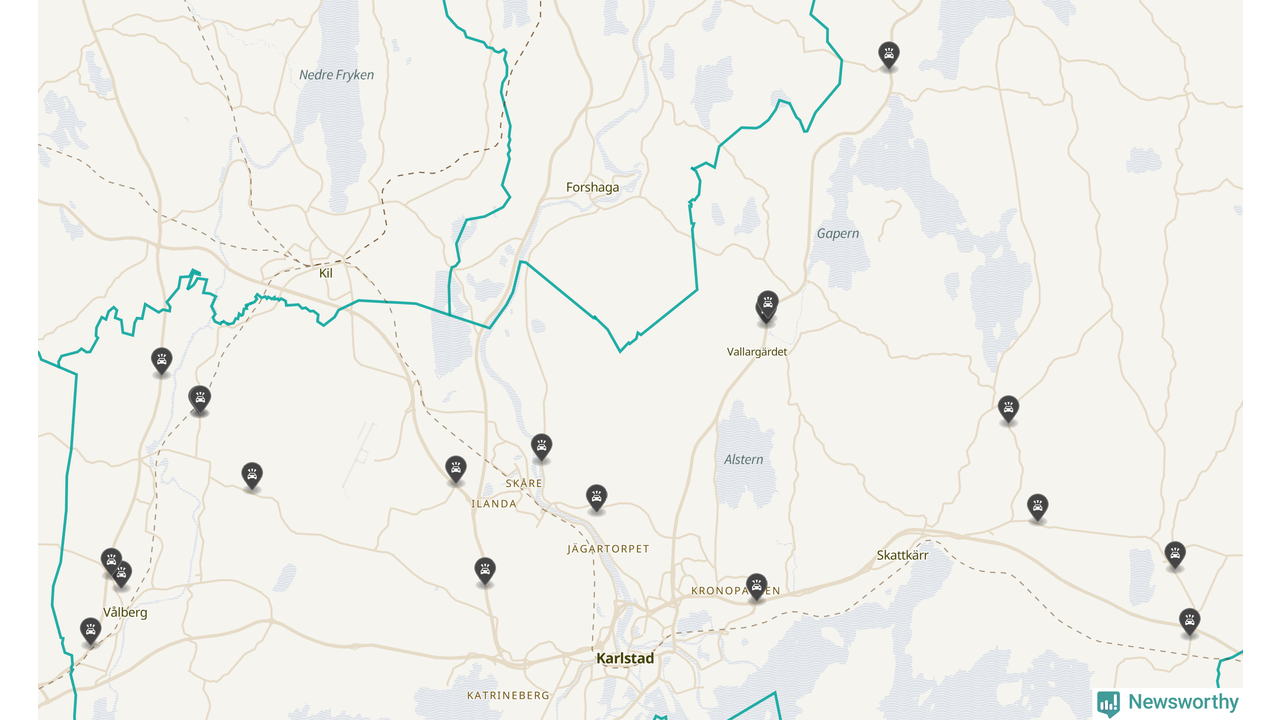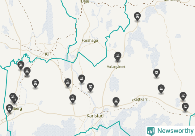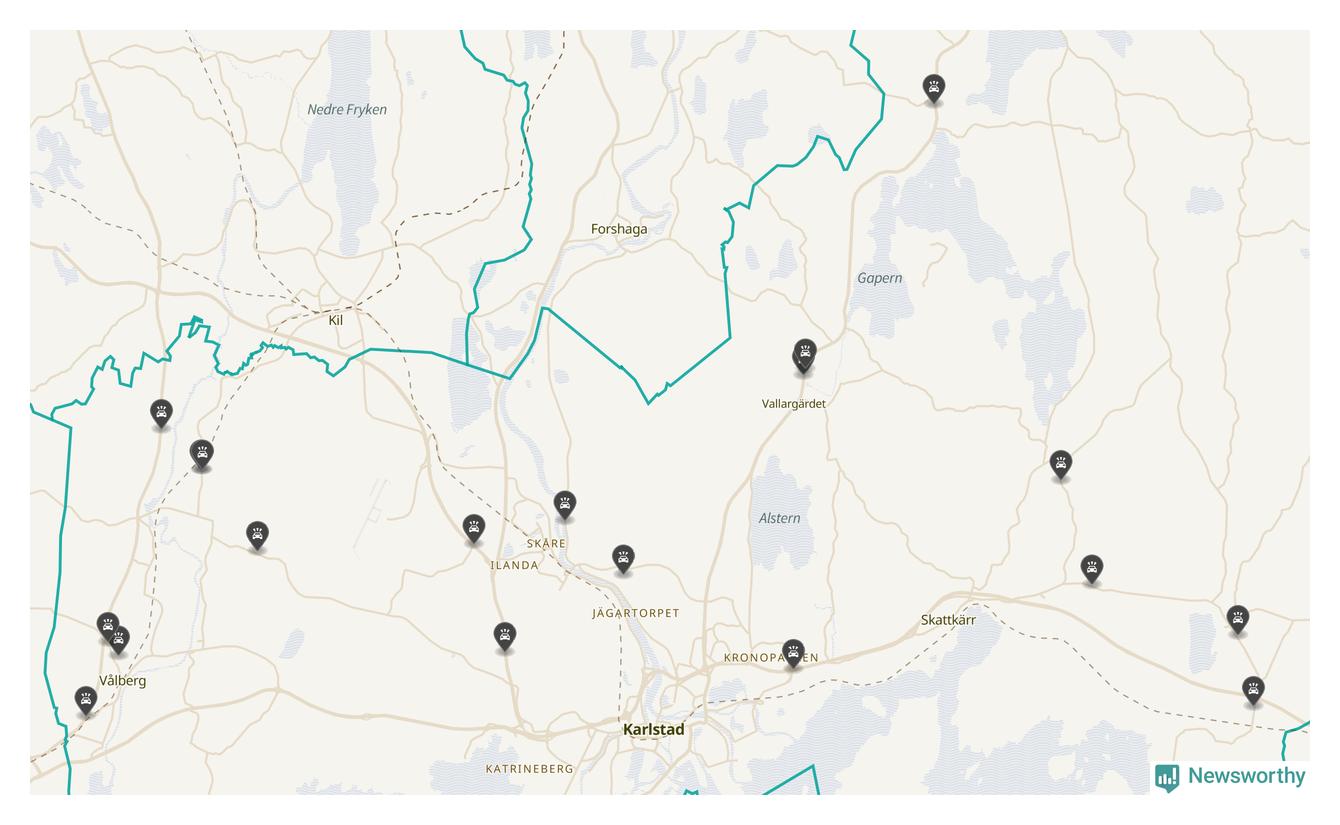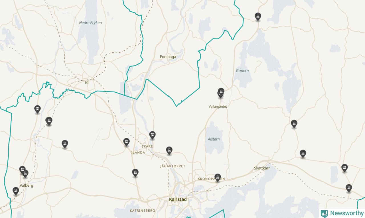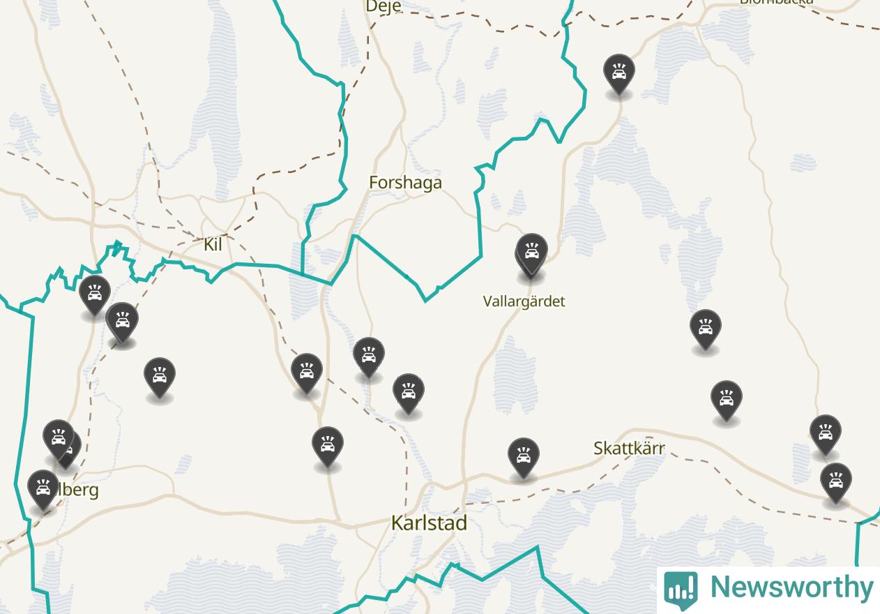 Karta över viltolyckor i Karlstads kommun