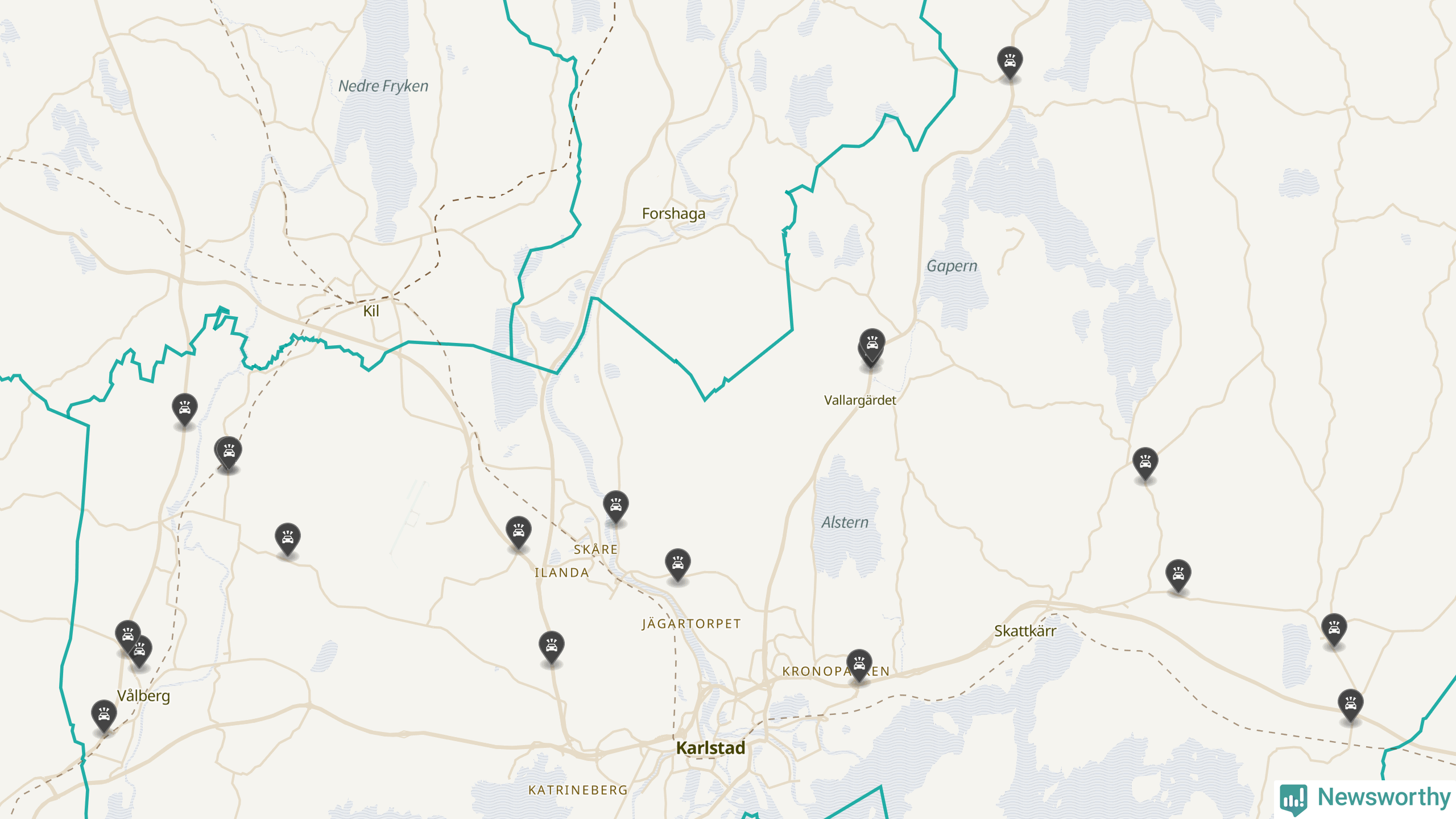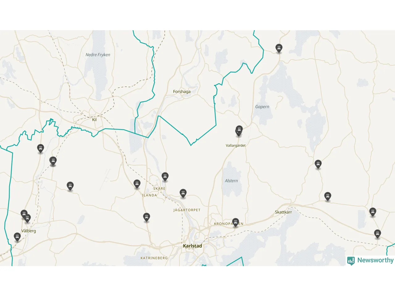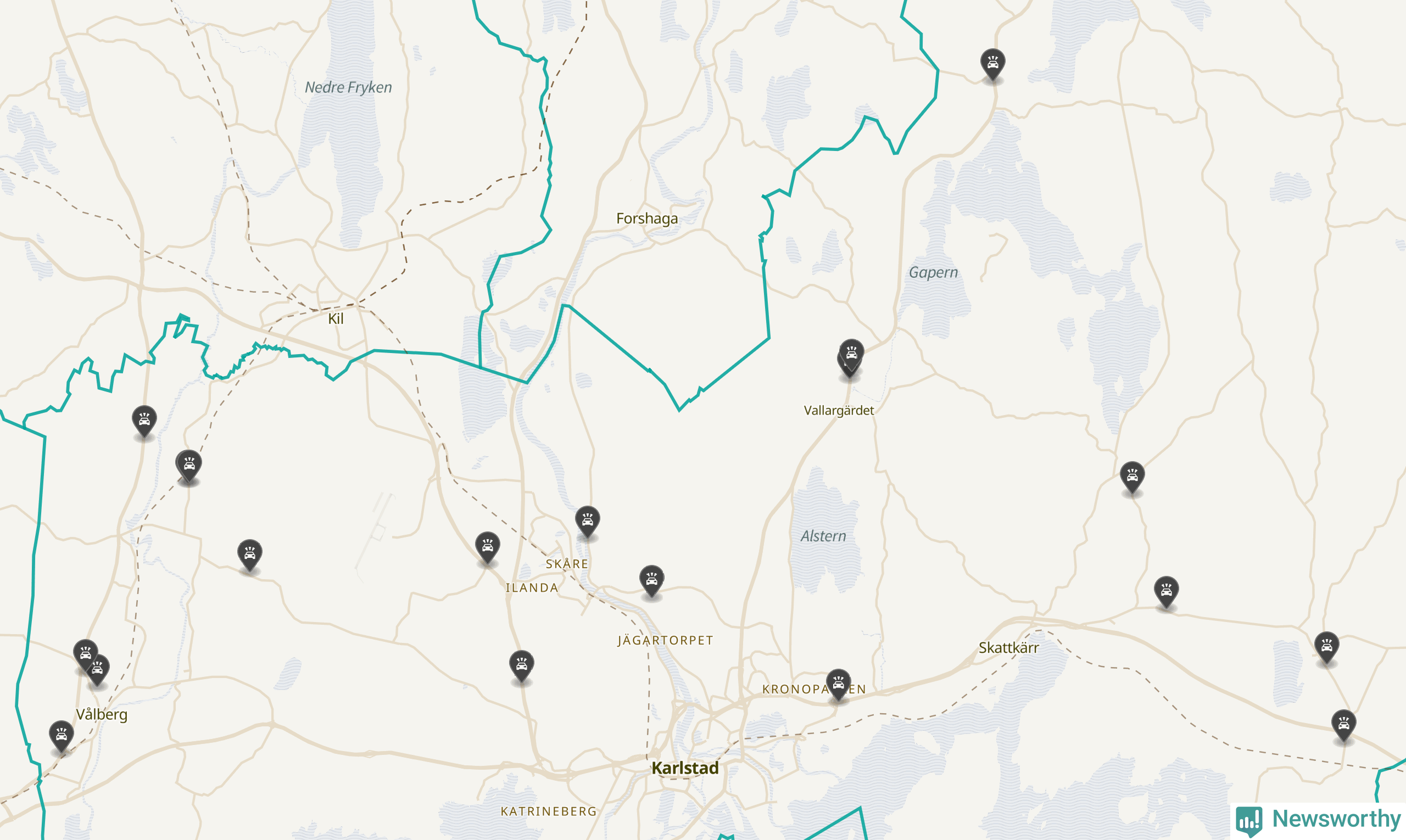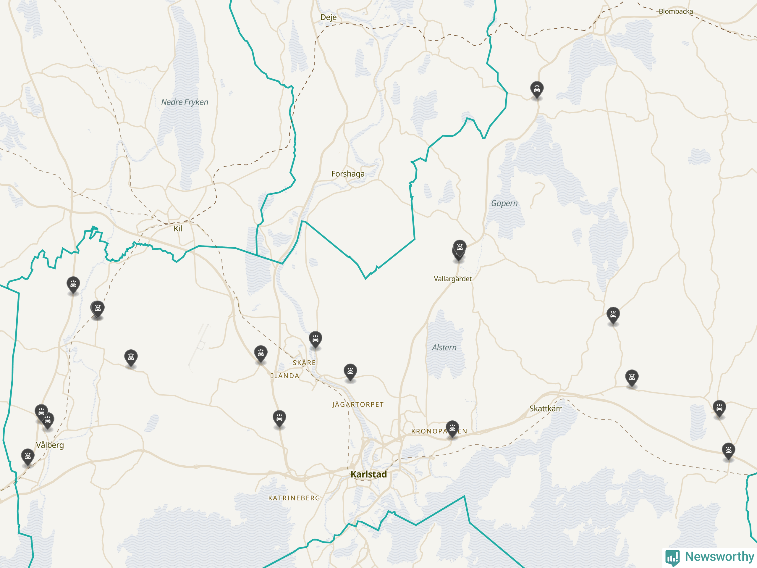 Karta över viltolyckor i Karlstads kommun