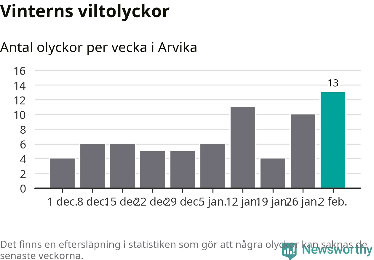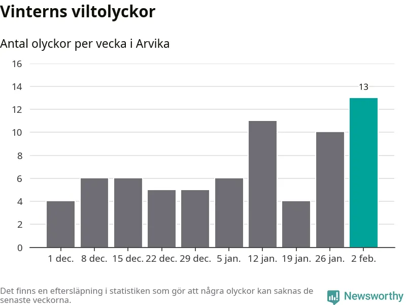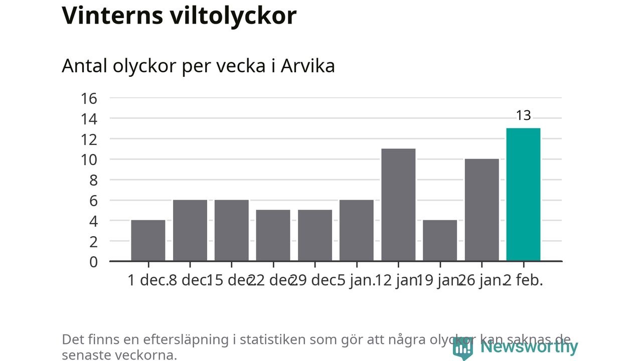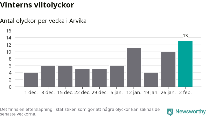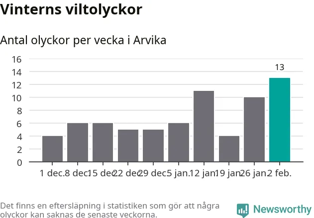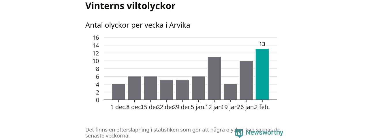 Under vecka 6 rapporterades 13 viltolyckor in i Arvika kommun. Det är det största antalet på en vecka den här vintern.